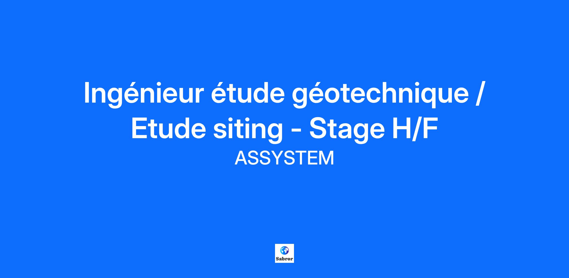 Description de l'entreprise Trouver des solutions au dérèglement climatique est la priorité du 21ème siècle, et implique de passer à l'énergie bas-carbone. Chez Assystem, on s'est donc donné pour mission d'accélérer la transition énergétique partout dans le monde. Et pour y parvenir, nos 8 000 Switchers couplent leur expertise historique en ingénierie et en gestion de projet aux technologies numériques. Présents dans 12 pays (Europe, Moyen-Orient, Asie), nous travaillons sur la production et la distribution d'électricité bas-carbone, à travers le développement des énergies nucléaires et renouvelables. Nous participons également à la modernisation des réseaux électriques et à l'électrification des usages, à travers l'hydrogène pour décarboner les secteurs des transports et de l'industrie. Description du poste Dans le cadre de projets d'implantation de futures infrastructures nucléaires, nous proposons un stage d'études géotechniques et notamment d'étude de siting. En tant que stagiaire ingénieur(e), vous serez intégré(e) à une équipe projet et participerez aux différentes phases d'études quant à la recevabilité de l'implantation d'un ouvrage nucléaire. Missions : Encadré(e) par un Ingénieur Géotechnicien confirmé, vous serez amené(e) à : Participer à l’analyse des données géologiques, hydrogéologiques et géotechniques Découvrir ou monter en compétences sur les contraintes techniques et réglementaires d'ouvrages nucléaires Aider à la rédaction des livrables : rapports d’études, notes de calcul, synthèses techniques en Français (et/ou en Anglais possible). Effectuer des recherches techniques ou normatives pour appuyer les projets en cours. Utiliser des outils de modélisation ou de calcul géotechnique sous la supervision de l’équipe (QGIS ou équivalent interne groupe). Découvrir et échanger avec les autres métiers en lien avec les études de siting (La sûreté, les contraintes environnementales...) Pourquoi réaliser votre stage chez Assystem ? On a 3 bonnes raisons pour vous convaincre ! 🥐 Travailler au sein d’une équipe engagée qui ramène expertise et croissants le matin ! 😎 Découvrir pourquoi 92% de nos stagiaires apprécient l’ambiance et leur environnement de travail 🏆 Remporter le 1er prix lors du challenge annuel destiné à tous nos stagiaires ! 🌍 Point bonus : si vous êtes formé(e) à animer des fresques (climat, biodiversité, eau, diversité…), nous vous accompagnons pour le déploiement auprès de notre communauté de Switchers ! Qualifications Étudiant(e) en dernière année d’école d’ingénieurs (Bac+4/5) avec une spécialisation en géotechnique, géologie appliquée ou génie civil. Connaissances en mécanique des sols et des roches, ainsi qu’en conception géotechnique. Rigueur scientifique, curiosité technique et esprit d’analyse. Bonnes compétences rédactionnelles et goût du travail en équipe. La connaissance d’outils tels que QGIS, PLAXIS, TALREN, ALIZE, AutoCAD ou équivalents est un plus. Bon niveau d'anglais : B2 à minima Informations complémentaires Nous nous engageons au respect de l’égalité de traitement entre les candidats, et célébrons toutes les formes de diversité. Chez Assystem, seules les compétences comptent ! Si vous souhaitez porter à la connaissance d’Assystem une quelconque situation ou des besoins spécifiques, n’hésitez pas vous serez accompagné(e) ! Nous nous engageons au respect de l’égalité de traitement entre les candidats, et célébrons toutes les formes de diversité. Chez Assystem, seules les compétences comptent ! Si vous souhaitez porter à la connaissance d’Assystem une quelconque situation ou des besoins spécifiques, n’hésitez pas vous serez accompagné(e) ! Nous nous engageons au respect de l’égalité de traitement entre les candidats, et célébrons toutes les formes de diversité. Chez Assystem, seules les compétences comptent ! Si vous souhaitez porter à la connaissance d’Assystem une quelconque situation ou des besoins spécifiques, n’hésitez pas vous serez accompagné(e) !
