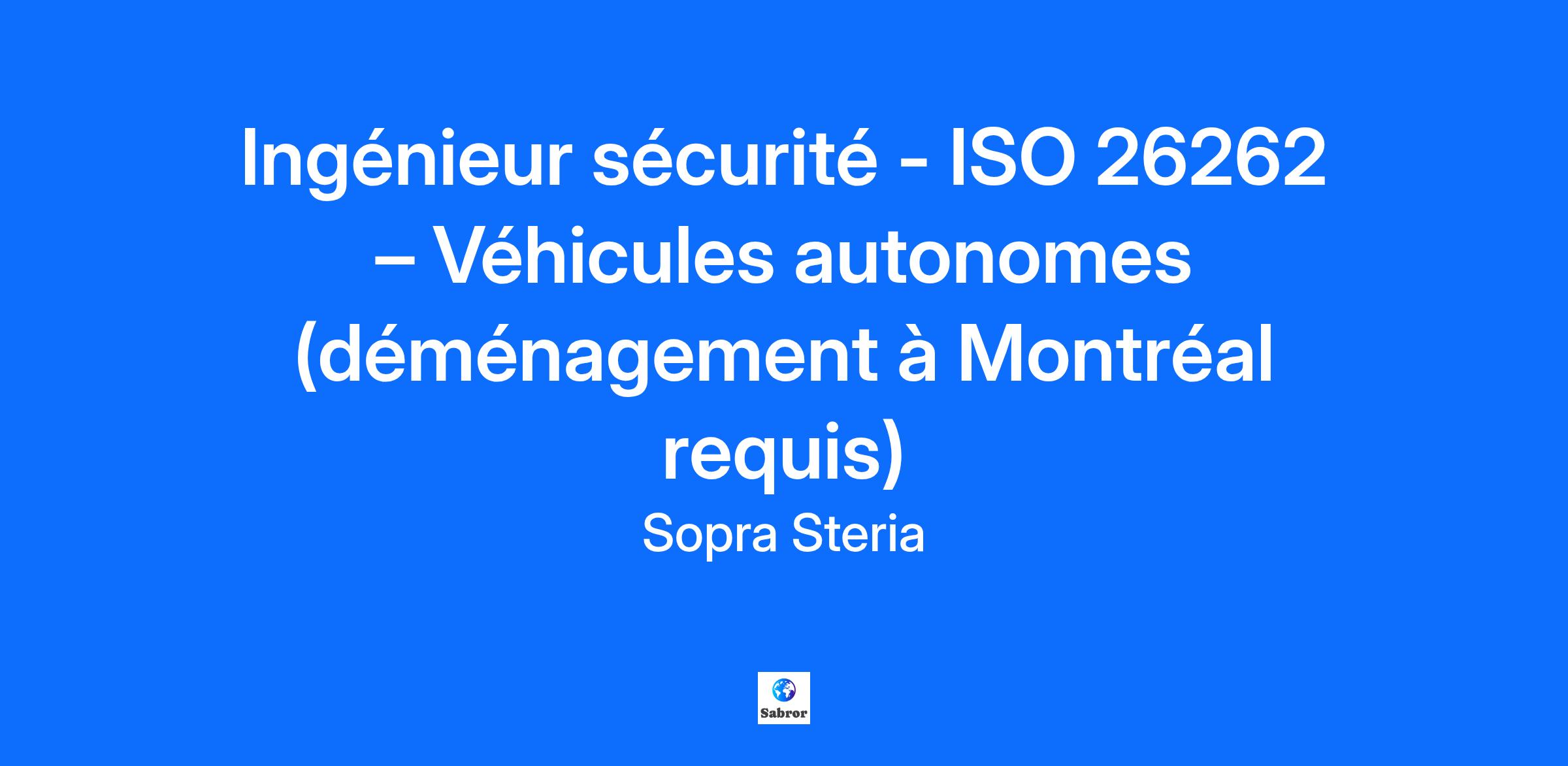 Description de l'entreprise CS Group Canada, filiale de CS Group et membre du groupe Sopra Steria, est un acteur clé en sûreté de fonctionnement et en cybersécurité pour les entreprises développant des technologies embarquées critiques (avionique, conduite autonome, électrification des transports). Nos clients incluent des équipementiers (OEM) et des fournisseurs de rang 1 dans les secteurs de l’aérospatiale, de l’automobile, de la défense et du ferroviaire, qui recherchent des certifications en sûreté de fonctionnement (ISO 26262, DO-178C, DO-254, ARP-4761, ARP-4754, EN50128) et en cybersécurité (DO-326A, ISO 21434, UN-R155) afin de commercialiser leurs technologies. Description du poste Ce poste est basé à 100 % à Montréal. Nous recherchons activement des candidats actuellement situés en Europe et ouverts à déménager au Canada. Nous recherchons un ingénieur sécurité pour les systèmes de véhicules avancés afin de soutenir la conception, l’analyse et la validation de fonctionnalités automobiles critiques pour la sécurité. Le rôle se concentre sur la sécurité fonctionnelle et la robustesse des systèmes pour les sous-systèmes avancés des véhicules (ADAS, architecture E/E, actionneurs, capteurs). Responsabilités : Réaliser des analyses de sécurité fonctionnelle (FMEA, STPA, SOTIF) pour les systèmes avancés de véhicules ; Soutenir les activités de vérification et validation de la conception système afin d’assurer la conformité aux exigences de sécurité ; Collaborer avec les équipes logiciel, électrique et sous-systèmes du véhicule pour intégrer les exigences de sécurité ; Développer et maintenir la documentation sécurité : exigences, analyses de risques, preuves de vérification ; Identifier et atténuer les modes de défaillance potentiels dans les composants avancés des véhicules. Qualifications Baccalauréat ou maîtrise en génie électrique, génie informatique, génie mécanique ou dans un domaine connexe ; Expérience avec la sécurité fonctionnelle dans les systèmes automobiles (ISO 26262, ISO 21448) ; Familiarité avec ADAS ou les sous-systèmes avancés de véhicules ; Connaissance pratique des méthodes FMEA, STPA ou SOTIF ; Solides compétences en communication et collaboration avec des équipes multidisciplinaires. Informations complémentaires Dans cette annonce, l’emploi du masculin pour désigner des personnes n’a d’autres fins que celle d’alléger le texte. Veuillez noter que seuls les candidats sélectionnés seront contactés. Type d'emploi : Temps plein, Permanent CS Group Canada valorise la diversité sur le lieu de travail et encourage les femmes, les minorités visibles, les minorités ethniques, les autochtones et les personnes handicapées à postuler. Avantages : Travail hybride Assurance médicale, dentaire et visuelle avancée. Accès à un service de télémédecine. Programme de REER. Congés personnels et congés de maladie. Salle de loisirs avec billard et baby-foot. Accès à une salle de sport sur site. Toutes vos informations resteront confidentielles conformément aux directives de l'EEO.