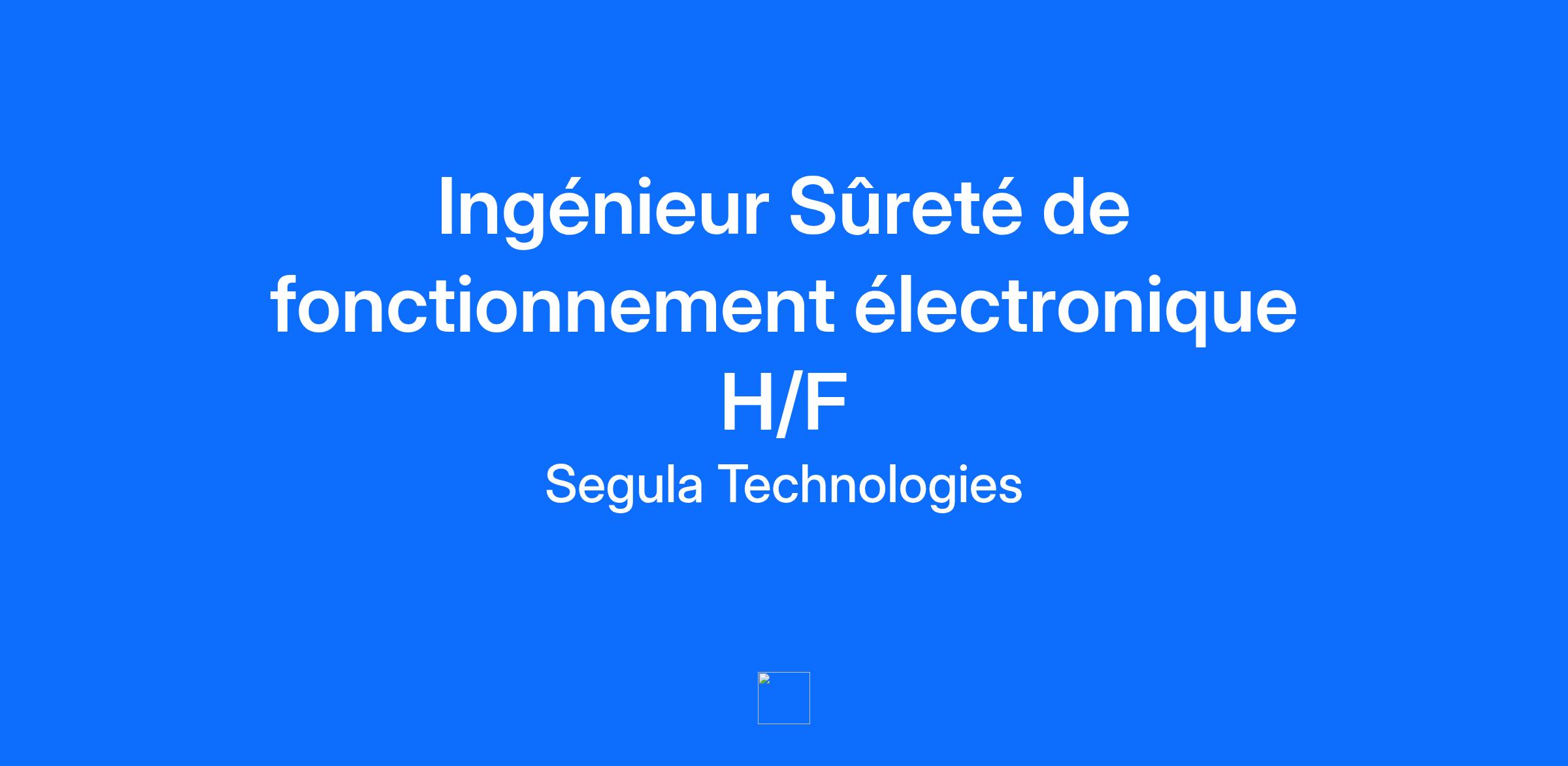 Description de l'entrepriseAccélérez votre carrière au sein d’un groupe d’ingénierie mondial à forte croissance. Chez SEGULA Technologies, vous travaillerez sur des projets passionnants et contribuerez à façonner l’avenir au sein d’une entreprise pour qui l’innovation est indissociable de l’ingénierie.Impression 3D, réalité augmentée, véhicule autonome, usine du futur… rythment le quotidien de nos 15 000 ingénieux collaborateurs, pourquoi pas le vôtre ?À côté de chez vous ou à l’autre bout de la planète, vous trouverez chez SEGULA Technologies l’opportunité qui donnera un sens nouveau à votre carrière !Description du posteDans le cadre d'un nouveau projet dans le secteur du véhicule industriel, vous pilotez le déploiement de la stratégie sûreté de fonctionnement au sein du périmètre électronique de notre client (hadrware et software).Vous êtes le garant de l'intégration de la «culture SdF».Vous pilotez le déploiement en accord avec les standards SdF: Functional & Technical safety concept, SCRB, ISO 26262, Arbres de défaillance.Vous procédez à l'intégration des études SdF des différents fournisseurs et sous-traitants.Vous mettez à jour les études avec l'évolution des phases du projet et assistez aux revues de conception.Vous vérifiez l'allocution correcte des exigences SdF à tous les niveaux et surtout vers les fournisseurs.Vous êtes force de proposition et aide à la décision.QualificationsDe Formation INGENIEUR ELECTRONIQUE avec une option SURETE DE FONCTIONNEMENT, vous justifiez d'une expérience d'au moins 3 ans en SURETE de FONCTIONNEMENT dans le domaine automobile, notamment en électronique embarquée. Vous avez de bonnes connaissances générales en mécanique et parlez anglais couramment. Rigoureux, dynamique, vous êtes reconnu pour votre pertinence, votre créativité ainsi que votre capacité à vous adapter et à communiquer sur vos projets.. Vous souhaitez valoriser vos compétences et évoluer à nos côtés ? Rejoignez-nous !Informations complémentairesSEGULA TECHNOLOGIES est une entreprise attachée à la mixité et à la diversité, nous reconnaissons et recrutons tous les talents.#SegulaRecrute#LI-LSTFT