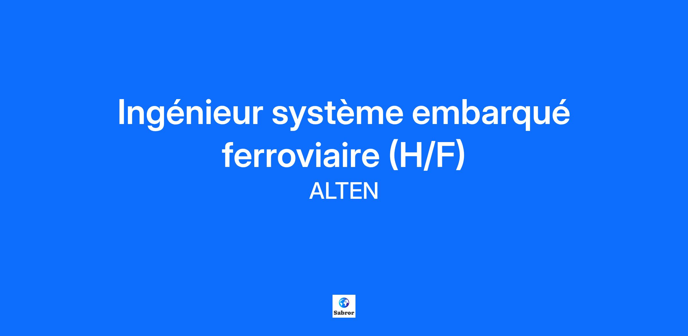 Description de l'entreprise Leader de l’Ingénierie et des IT Services, présent dans plus de 30 pays, le groupe ALTEN accompagne la stratégie de développement de ses clients dans les domaines de l’innovation, de la R&D et des systèmes d'information technologiques. Plus qu’un poste, découvrez l’aventure qui vous attend au sein d’une entreprise engagée. Description du poste Dans le cadre du développement de l’agence ALTEN Nord, nous recrutons en CDI un ingénieur système embarqué ferroviaire (H/F). Vous agirez sur le développement et la programmation du système embarqué du matériel roulant ferroviaire, vos missions seront de : Développer la programmation et le code ; Concevoir et exécuter les plans de test et analyser les résultats, le cas échéant, réviser les procédures de test ; Gérer les tests sur les bancs d’essai et sur trains ; Rédiger et mettre à jour les documents de conception en lien avec le développement du logiciel embarqué ; Réaliser le lien entre les différents services et gérer les interfaces clients et fournisseurs. Qualifications Ingénieur(e) ou universitaire Bac +5, vous témoignez d’une expérience significative et similaire idéalement dans le secteur des transports (automobile, ferroviaire ou aéronautique) Vous justifiez d’une bonne maîtrise des systèmes embarqués (control command, information systems). Vous disposez d’un excellent relationnel, d’un esprit poussé d’analyse et de synthèse et d’une forte capacité à mener des projets de fond. Vous êtes animé par la culture du résultat. Enfin, vous avez un bon niveau d’anglais vous permettant d’échanger quotidiennement avec des interlocuteurs étrangers. Informations complémentaires ALTEN place le développement de carrière de ses Ingénieurs au cœur de son modèle et vous permet de prendre rapidement des responsabilités et d’évoluer en accord avec votre objectif professionnel. Si la perspective d’intégrer une entreprise porteuse des projets les plus innovants en France comme à l’international vous motive, n’attendez plus et envoyez-nous dès maintenant votre CV !