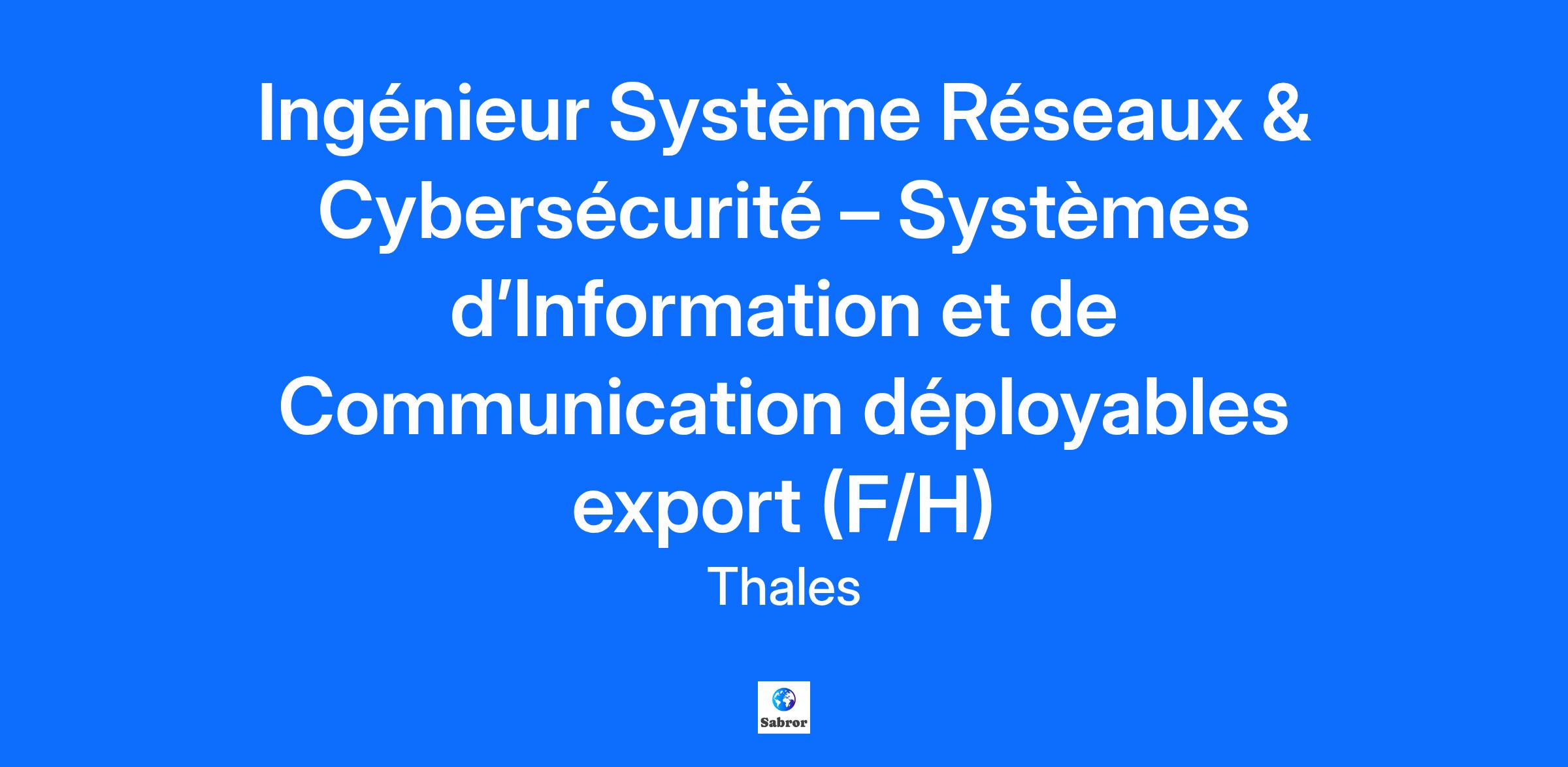 Lieu : Gennevilliers, France Construisons ensemble un avenir de confiance Thales est un leader mondial des hautes technologies spécialisé dans trois secteurs d’activité : Défense & Sécurité, Aéronautique & Spatial, et Cyber & Digital. Il développe des produits et solutions qui contribuent à un monde plus sûr, plus respectueux de l’environnement et plus inclusif. Le Groupe investit près de 4 milliards d’euros par an en Recherche & Développement, notamment dans des domaines clés de l’innovation tels que l’IA, la cybersécurité, le quantique, les technologies du cloud et la 6G. Thales compte près de 81 000 collaborateurs dans 68 pays. Nos engagements, vos avantages Une réussite portée par notre excellence technologique, votre expérience et notre ambition partagée Un package de rémunération attractif Un développement des compétences en continu : parcours de formation, académies et communautés internes Un environnement inclusif, bienveillant et respectant l’équilibre des collaborateurs Un engagement sociétal et environnemental reconnu Votre quotidien Le Campus de Gennevilliers est le cœur des activités de conception, de développement et de soutien des grands systèmes de défense : radiocommunications, réseaux et systèmes d’infrastructure résilients, communications par satellite, combat collaboratif et cybersécurité. Situé au nord de Paris, il est rapidement accessible en transports en commun. VOS MISSIONS : Le domaine réseaux mobiles développe des solutions réseaux de communications par satellite (SATCOM), Tactiques et Cloud pour des clients internationaux basées sur les meilleures technologies civiles et des produits innovants développés par Thales. Pour accompagner nos activités en forte croissance, nous recherchons un Ingénieur Système disposant d’une sensibilité réseau et cybersécurité, capable à la fois de participer à la phase offre et la réalisation des projets à l’export du domaine. Nos systèmes hautement sécurisés font intervenir de nombreux domaines d’ingénierie d’expertise comme le réseau, la RF, l’IT, la cybersécurité, la gestion de réseau ou encore l’ingénierie stations. En tant qu’Ingénieur Système, vous êtes un acteur clé des équipes offre et projet. A ce titre, Vous travaillez en équipe et participez à la définition du système, en prenant en compte les impératifs performances, coûts et délais Vous rédigez les documents de design (HLD/LLD) Vous prenez parti aux revues internes et clients Vous analysez et instruisez les nouvelles demandes clients, contribuez aux activités de business development et de réponse aux appels d’offres. Des déplacements ponctuels sont à prévoir pour les réunions techniques, revues et acceptations du système chez nos clients VOTRE PROFIL : De formation ingénieur, vous avez au moins 7 ans d’expérience dans les métiers de l’ingénierie système et vous disposez de solides compétences en réseaux IP, services de collaboration unifiés et cybersécurité. Alors lisez la suite, cette offre est sûrement faite pour vous ! En intégrant notre équipe vous aurez la chance de faire évoluer vos compétences dans un environnement dynamique, motivant et avec de nombreuses perspectives d’évolutions. Les maîtres mots sont la curiosité et l’envie de découvrir de nouvelles technologies au service de nos clients internationaux. Notre environnement de travail est pluridisciplinaire et mise sur la cohésion d’équipe et l’épanouissement professionnel de chacun. Ce que vous savez faire : Vous disposez d’une solide expérience en réseaux IP (routage, switching, VLAN, QoS, …) Vous maîtrisez des technologies de téléphonie et de visioconférence IP (SIP, Cisco Call Manager, Cisco Meeting Server ou équivalents) Vous avez de bonnes connaissances en pare-feu (Cisco ASA, Palo Alto Network, Checkpoint…). Vous êtes sensibilisés à la cybersécurité et savez mettre en œuvre les bonnes pratiques associées (audit, durcissement, protocoles sécurisés, PKI, authentification forte). Vous avez des notions de systèmes d’exploitation (Linux, Windows Server) et virtualisation (VMware, Hyper-V, Docker/Kubernetes apprécié). Vous maîtrisez les processus d’ingénierie et les outils associés (intégration multidisciplinaire, approche système) Votre maîtrise de l’anglais vous permet de travailler de façon fluide en milieu international Ce que l’on reconnait chez vous : Votre capacité d’analyse et de résolution de problèmes complexes. Vos qualités rédactionnelles et de communication Votre capacité à travailler en équipe pluridisciplinaire et dans un environnement multiculturel Votre capacité à s'adapter à des exigences changeantes Votre compréhension et prise en compte des besoins clients Votre autonomie et votre rigueur Et comme la technique ne fait pas tout, ce qui nous intéresse, c'est avant tout votre potentiel, votre engagement, votre énergie et votre soif d’apprendre ; si votre profil ne correspond pas à 100 %, pas d’inquiétude, les parcours atypiques sont également les bienvenus ! Dites-nous simplement pourquoi vous êtes le candidat idéal pour ce poste. Enfin, nous sommes convaincus que l’équilibre entre vie professionnelle et personnelle est un gage d’efficacité. Vous intégrerez une équipe engagée et solidaire dont l’organisation du travail se base sur la confiance et la flexibilité, avec en particulier la possibilité de télé-travailler jusqu’à 10 jours par mois. Vous ne serez pas déçus par notre CSE, notre mutuelle ou les nombreux avantages sociaux qui nous offrons à nos salariés ! Thales, entreprise Handi-Engagée, reconnait tous les talents. La diversité est notre meilleur atout. Postulez et rejoignez nous ! Le poste pouvant nécessiter d'accéder à des informations relevant du secret de la défense nationale, la personne retenue fera l'objet d'une procédure d’habilitation