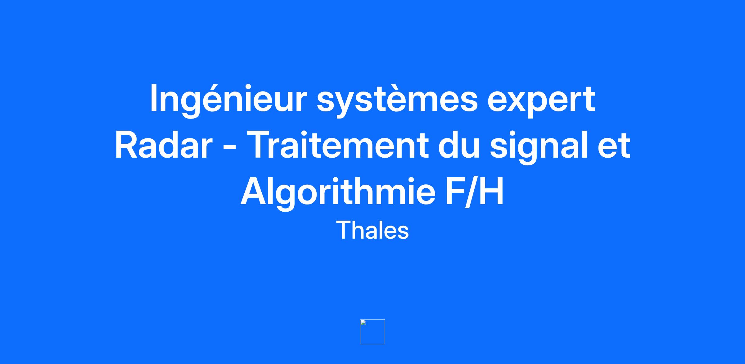 Lieu : Limours, France Construisons ensemble un avenir de confiance Thales est un leader mondial des hautes technologies spécialisé dans trois secteurs d’activité : Défense & Sécurité, Aéronautique & Spatial, et Cyber & Digital. Il développe des produits et solutions qui contribuent à un monde plus sûr, plus respectueux de l’environnement et plus inclusif. Le Groupe investit près de 4 milliards d’euros par an en Recherche & Développement, notamment dans des domaines clés de l’innovation tels que l’IA, la cybersécurité, le quantique, les technologies du cloud et la 6G. Thales compte près de 81 000 collaborateurs dans 68 pays. Nos engagements, vos avantages Une réussite portée par notre excellence technologique, votre expérience et notre ambition partagée Un package de rémunération attractif Un développement des compétences en continu : parcours de formation, académies et communautés internes Un environnement inclusif, bienveillant et respectant l’équilibre des collaborateurs Un engagement sociétal et environnemental reconnu Votre quotidien Situé à 20mn du Pôle technologique de Paris-Saclay, le site est l’un des plus grands centres d’excellence radars de surface. Nous contribuons à développer, concevoir, intégrer et tester des radars de surveillance aériennes dédiés à la détection et l’identification de cibles. En tant qu'Ingénieur système Expert Radar chez Thales, vous serez impliqué(e) dans un environnement très dynamique dans le cadre du développement des radars Ground Master, des projets complexes à haute valeur technique au sein d'une équipe motivée et accueillante. Techniquement, vous devrez apporter votre expertise de radariste dans les différentes étapes du développement (phase amont de conception et spécification et phase aval de validation) en contribuant à l'analyse fonctionnelle détaillée du système Radar notamment en tenant compte des besoins client et des autres parties prenantes. De plus, vous devrez démontrer votre capacité à communiquer dans ce type de contexte (diplomatie, capacité à convaincre, management transverse, …). A ce titre, en phase de spécification, vous serez en charge des aspects suivants : Définir les caractéristiques fonctionnelles du radar (bilan énergétique, séquencements, définition algorithmique de traitement) répondant aux exigences de performances opérationnelles souhaitée pour optimiser la détection, la portée, et la précision des Radars, Réaliser des analyses et des évaluations en support de la justification de la conception, au moyen de calculs analytiques ou de simulations au moyen de modèles du comportement fonctionnel, Proposer des évolutions du système, réaliser les traitements algorithmiques ad-hoc, participer à l'innovation comme par exemple préparer l'arrivée des nouveaux traitements d'intelligence artificielle qui font progressivement leur apparition dans les chaînes de traitement radar, Participer à la définition des architectures système et garantir l'intégration harmonieuse avec les autres sous-systèmes, Encadrer techniquement et accompagner / former les équipes d'ingénierie Radar en phase de spécification et de test des fonctionnalités Radar. En phase de validation du système vous devrez : Apporter votre expertise aux équipes d'intégration en identifiant et résolvant les problèmes remontés par celles-ci, Apporter votre expertise à l'équipe d'ingénierie en contribuant aux analyses fonctionnelles sur des données radar simulées ou enregistrées suite à des essais terrain (éventuellement par la réexécution informatique des algorithmes de traitement), en développant au besoin vos propres outils d'analyse; e validant les algorithmes et évaluer les performances face à divers scénarios de test, Etre un support aux projets, lors de présentations clients, revues, démonstrations. Plus globalement, en nous rejoignant, vous participerez à favoriser l'émergence de modèles, algorithmes et éléments de simulation standardisés et réutilisables au sein de la discipline. Votre profil De formation supérieure Bac+5 (école d'ingénieur ou université) vous avez acquis de très solides compétences en traitement du signal, probabilité, modèles mathématiques et en algorithmie ainsi que des connaissances en électronique et logiciel. Vous avez de plus une forte connaissance de l'ingénierie système pour les systèmes complexes. Vous avez le goût pour les investigations et mener les enquêtes pour comprendre et remonter à l'origine des problèmes. Vous appréciez et savez transmettre votre savoir à des juniors pour les aider à monter en compétences et devenir autonomes. Vous savez et appréciez travailler en équipe, vous faites preuve d'aisance relationnelle et d'autonomie et êtes capable de poser un avis technique. Vous êtes rigoureux(se), sérieux(se), vous avez une bonne capacité de synthèse et vous êtes proactif(ve). Vous justifiez d'une forte expérience dans le domaine de l'ingénierie des systèmes complexes, de préférence dans le monde du radar. Thales, entreprise Handi-Engagée, reconnait tous les talents. La diversité est notre meilleur atout. Postulez et rejoignez nous ! Le poste pouvant nécessiter d'accéder à des informations relevant du secret de la défense nationale, la personne retenue fera l'objet d'une procédure d’habilitation, conformément aux dispositions des articles R.2311-1 et suivants du Code de la défense et de l’IGI 1300 SGDSN/PSE du 09 août 2021.