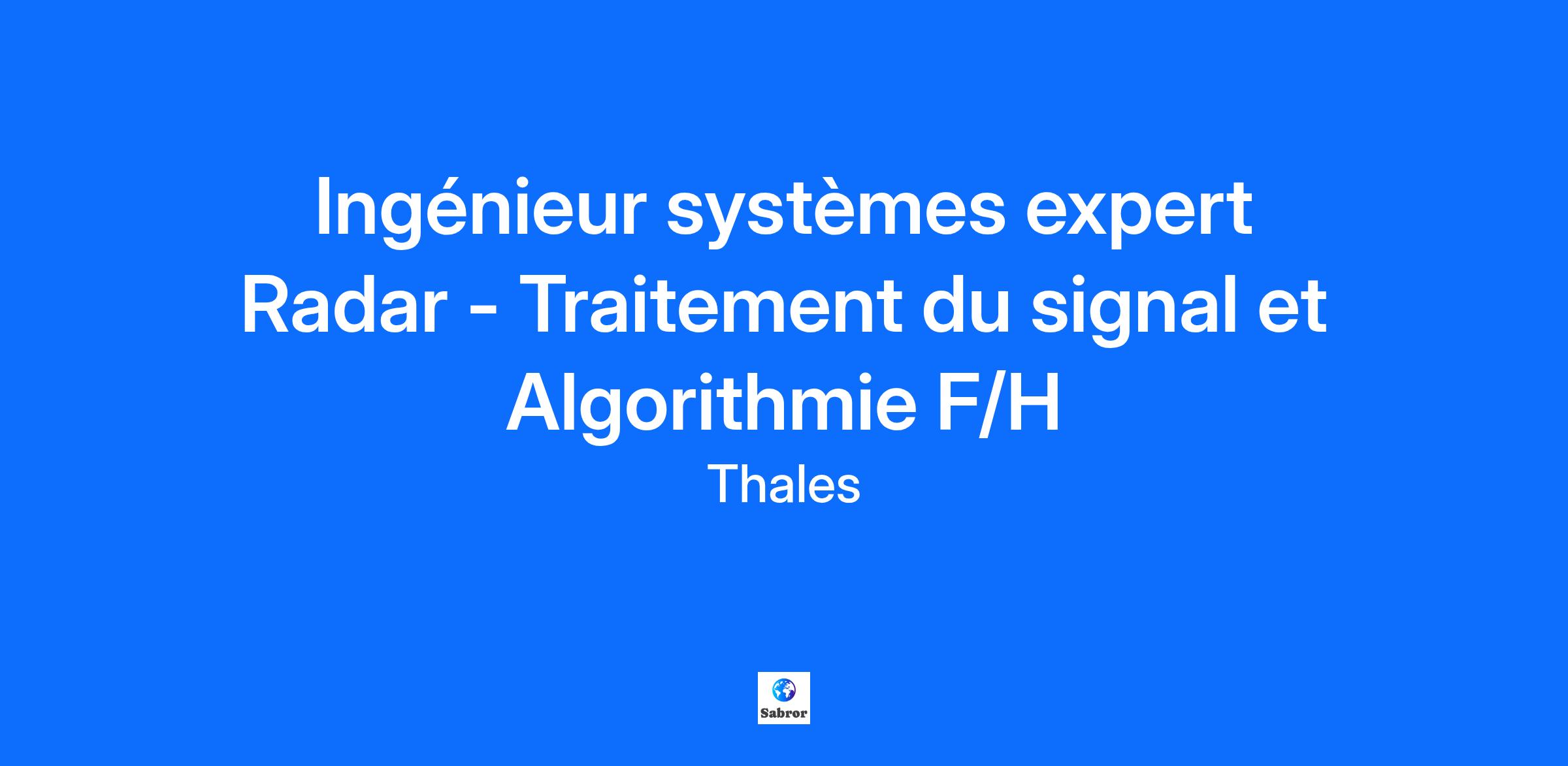 Lieu : Limours, France Construisons ensemble un avenir de confiance Thales est un leader mondial des hautes technologies spécialisé dans trois secteurs d’activité : Défense & Sécurité, Aéronautique & Spatial, et Cyber & Digital. Il développe des produits et solutions qui contribuent à un monde plus sûr, plus respectueux de l’environnement et plus inclusif. Le Groupe investit près de 4 milliards d’euros par an en Recherche & Développement, notamment dans des domaines clés de l’innovation tels que l’IA, la cybersécurité, le quantique, les technologies du cloud et la 6G. Thales compte près de 81 000 collaborateurs dans 68 pays. Nos engagements, vos avantages Une réussite portée par notre excellence technologique, votre expérience et notre ambition partagée Un package de rémunération attractif Un développement des compétences en continu : parcours de formation, académies et communautés internes Un environnement inclusif, bienveillant et respectant l’équilibre des collaborateurs Un engagement sociétal et environnemental reconnu Votre quotidien Situé à 20mn du Pôle technologique de Paris-Saclay, le site est l’un des plus grands centres d’excellence radars de surface. Nous contribuons à développer, concevoir, intégrer et tester des radars de surveillance aériennes dédiés à la détection et l’identification de cibles. En tant qu'Ingénieur système Expert Radar chez Thales, vous serez impliqué(e) dans un environnement très dynamique dans le cadre du développement des radars Ground Master, des projets complexes à haute valeur technique au sein d'une équipe motivée et accueillante. Techniquement, vous devrez apporter votre expertise de radariste dans les différentes étapes du développement (phase amont de conception et spécification et phase aval de validation) en contribuant à l'analyse fonctionnelle détaillée du système Radar notamment en tenant compte des besoins client et des autres parties prenantes. De plus, vous devrez démontrer votre capacité à communiquer dans ce type de contexte (diplomatie, capacité à convaincre, management transverse, …). A ce titre, en phase de spécification, vous serez en charge des aspects suivants : Définir les caractéristiques fonctionnelles du radar (bilan énergétique, séquencements, définition algorithmique de traitement) répondant aux exigences de performances opérationnelles souhaitée pour optimiser la détection, la portée, et la précision des Radars, Réaliser des analyses et des évaluations en support de la justification de la conception, au moyen de calculs analytiques ou de simulations au moyen de modèles du comportement fonctionnel, Proposer des évolutions du système, réaliser les traitements algorithmiques ad-hoc, participer à l'innovation comme par exemple préparer l'arrivée des nouveaux traitements d'intelligence artificielle qui font progressivement leur apparition dans les chaînes de traitement radar, Participer à la définition des architectures système et garantir l'intégration harmonieuse avec les autres sous-systèmes, Encadrer techniquement et accompagner / former les équipes d'ingénierie Radar en phase de spécification et de test des fonctionnalités Radar. En phase de validation du système vous devrez : Apporter votre expertise aux équipes d'intégration en identifiant et résolvant les problèmes remontés par celles-ci, Apporter votre expertise à l'équipe d'ingénierie en contribuant aux analyses fonctionnelles sur des données radar simulées ou enregistrées suite à des essais terrain (éventuellement par la réexécution informatique des algorithmes de traitement), en développant au besoin vos propres outils d'analyse; e validant les algorithmes et évaluer les performances face à divers scénarios de test, Etre un support aux projets, lors de présentations clients, revues, démonstrations. Plus globalement, en nous rejoignant, vous participerez à favoriser l'émergence de modèles, algorithmes et éléments de simulation standardisés et réutilisables au sein de la discipline. Votre profil De formation supérieure Bac+5 (école d'ingénieur ou université) vous avez acquis de très solides compétences en traitement du signal, probabilité, modèles mathématiques et en algorithmie ainsi que des connaissances en électronique et logiciel. Vous avez de plus une forte connaissance de l'ingénierie système pour les systèmes complexes. Vous avez le goût pour les investigations et mener les enquêtes pour comprendre et remonter à l'origine des problèmes. Vous appréciez et savez transmettre votre savoir à des juniors pour les aider à monter en compétences et devenir autonomes. Vous savez et appréciez travailler en équipe, vous faites preuve d'aisance relationnelle et d'autonomie et êtes capable de poser un avis technique. Vous êtes rigoureux(se), sérieux(se), vous avez une bonne capacité de synthèse et vous êtes proactif(ve). Vous justifiez d'une forte expérience dans le domaine de l'ingénierie des systèmes complexes, de préférence dans le monde du radar. Thales, entreprise Handi-Engagée, reconnait tous les talents. La diversité est notre meilleur atout. Postulez et rejoignez nous ! Le poste pouvant nécessiter d'accéder à des informations relevant du secret de la défense nationale, la personne retenue fera l'objet d'une procédure d’habilitation, conformément aux dispositions des articles R.2311-1 et suivants du Code de la défense et de l’IGI 1300 SGDSN/PSE du 09 août 2021.