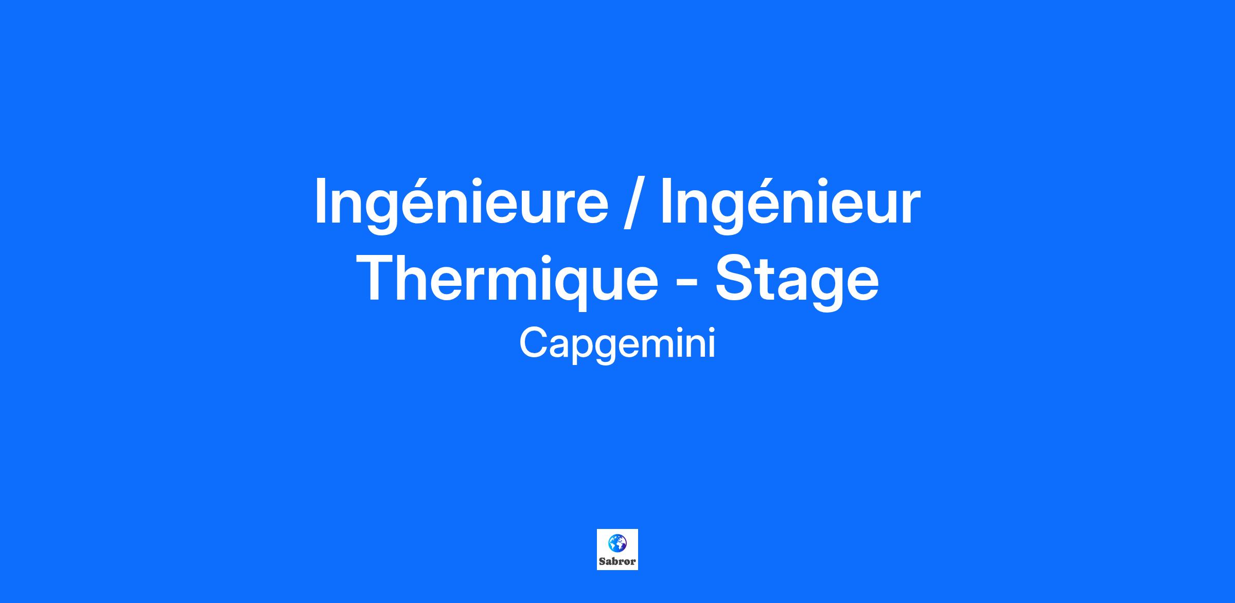 Capgemini Engineering, leader mondial des services d'ingénierie , rassemble des équipes d'ingénieurs , de scientifiques et d'architectes pour aider les entreprises les plus innovantes dans le monde à libérer leur potentiel . Des voitures autonomes aux robots qui sauvent des vies, nos experts en technologies digitales et logicielles sortent des sentiers battus en fournissant des services uniques de R&D et d'ingénierie dans tous les secteurs d'activité . Rejoignez nous pour une carrière pleine d'opportunités , où vous pouvez faire la différence et où aucun jour ne se ressembleVos Missions Dans le cadre de nos activités et afin d’accompagner notre croissance, nous recrutons un(e) Stagiaire Ingénieur(e) en thermique pour travailler avec l’un de nos clients majeurs dans le secteur du spatial. Vous rejoindrez une équipe expérimentée afin de participer au développement d’un système/sous-système spatial et en réaliserez les analyses thermiques. Vous serez amené à discuter avec l’ensemble des services impliqués afin de collecter et d’analyser les données techniques adéquates dans le but de suivre et de mettre en place le design thermique d’un satellite ou l’un de ses sous-systèmes. Votre quotidien sera rythmé par : La formation sur toutes les thématiques techniques liée au développement de produits spatiaux (environnement et contraintes, processus de développement d’un satellite, les parties prenantes…) et vous focaliserez sur la partie thermique L’analyse des données d’un programme d’application en cours de réalisation au sein de notre bureau d’étude (satellite CO2M, mécanisme SADM) La manipulation des logiciels de modélisation thermique utilisés par les industriels du secteur (ESATAN-TMS, E-Therm) pour la justification du design La participation à la campagne d’analyses thermiques d’un satellite : études des entrées et des spécifications, modélisation du système, lancement des simulations, exploitation des résultats, itérations et amélioration du design si nécessaire La participation aux réunions de travail avec l’équipe en place et les clients, présentation des conclusions des analyses Si l’opportunité se présente, visite des salles blanches dédiées à l’intégration et au test des satellite de notre client. Votre Profil De formation BAC+5 en ingénierie, vous justifiez idéalement d’une expérience ou d’une familiarisation dans le domaine aéronautique/spatial. Vous justifiez d’un bon niveau d’anglais (dont vocabulaire technique). Bonne maîtrise de l’environnement Office (excel/VBA) Connaissance en thermique/énergétique Autonomie et esprit d’analyse. Nous vous offrons la possibilité d’intégrer un environnement de travail stimulant et valorisant qui vous permettra d’acquérir une première expérience à forte valeur ajoutée, au sein d’une équipe dynamique. Nos stagiaires d’aujourd’hui sont nos jeunes ingénieurs de demain, des possibilités d’embauche en CDI à l’issue du stage seront étudiées, rejoignez-nous !Capgemini, partenaire de la transformation business et technologique de ses clients, les accompagne dans leur transition vers un monde plus digital et durable, tout en créant un impact positif pour la société. Le Groupe, responsable et multiculturel, rassemble 340 000 collaborateurs dans plus de 50 pays. Depuis plus de 55 ans, ses clients lui font confiance pour répondre à l'ensemble de leurs besoins grâce à la technologie. Capgemini propose des services et solutions de bout en bout, allant de la stratégie et du design jusqu'à l'ingénierie, en tirant parti de ses compétences de pointe en intelligence artificielle et IA générative, en cloud, et en data, ainsi que de son expertise sectorielle et de son écosystème de partenaires.