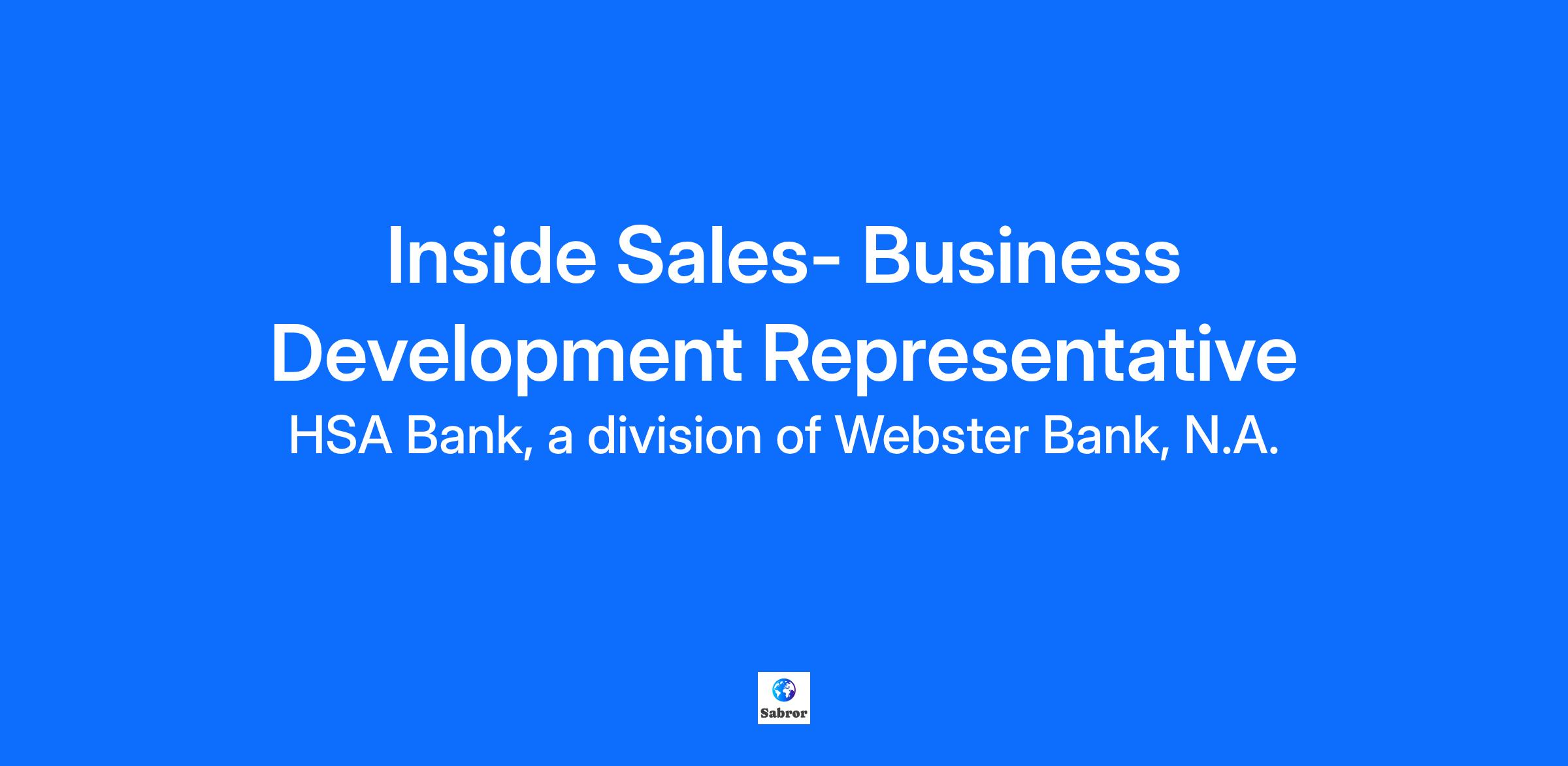 At HSA Bank, we’re working toward a world where everyone is empowered to save for a healthy future. Our offerings in the healthcare savings space drive down healthcare costs, increase access, and assist with decision-making for consumers, health plans, partners, and advisors. Are you ready to join us? The Business Development Representative employs a consultative based sales approach to identify and pursue direct to employer sales opportunities throughout the United States in our large group space. The Sales Development Representative will leverage the internal assets of HSA Bank to sell health-based accounts including Health Savings Accounts (HSAs), Flexible Spending Accounts (FSAs), Health Reimbursement Arrangements (HRAs) and Commuter Benefits (Mass Transit & Parking), Tuition Reimbursment, and Lifestyle Spendign Accounts directly to employers. The Sales Development Representative will manage the beginning sales process while selling to HR/Benefit Directors, VP and C-level Executives as well as key influencers within each account. Sales Development Representative is a position supported by an HSA Bank team that includes, Marketing, Account/Relationship Management along with Regional Vice Presidents and Vice Presidents of National Accounts. Job Summary: The Business Development Representative employs a consultative based sales approach to identify and pursue direct to employer sales opportunities throughout the United States in our large group space. The Sales Development Representative will leverage the internal assets of HSA Bank to sell health-based accounts including Health Savings Accounts (HSAs), Flexible Spending Accounts (FSAs), Health Reimbursement Arrangements (HRAs) and Commuter Benefits (Mass Transit & Parking), Tuition Reimbursement, and Lifestyle Spending Accounts directly to employers. The Sales Development Representative will manage the beginning sales process while selling to HR/Benefit Directors, VP and C-level Executives as well as key influencers within each account. Sales Development Representative is a position supported by an HSA Bank team that includes, Marketing, Account/Relationship Management along with Regional Vice Presidents and Vice Presidents of National Accounts. Job Responsibilities: Consistent track record in meeting and exceeding sales quotas. Proven experience in proactively identifying new account opportunities in an assigned territory via prospecting. Ability to collaborate with multiple internal partners such as marketing and outside sales representatives Ability to prospect through email, LinkedIn, cold calling, ZoomInfo and direct campaigns through sales tools to drive a robust sales pipeline Knowledge of Health Savings Accounts, Consumer Driven Health Care, Group/Individual Health Insurance sales, Managed Healthcare and the Agent/Broker distribution system. Exceptional verbal and written skills. Ability to identify and engage key decision makers in organizations Ability to assist with implementation team during busy times. Requirements: Bachelor's Degree preferred. Desired two (2) years of sales experience. Ideally in Employee Benefits, Asset Management or Benefits Consulting Excellent presentation and communication skills Experience with Salesforce CRM and Microsoft software a plus The estimated salary range for this position is $60,000USD to $70,000USD. Actual salary may vary up or down depending on job-related factors which may include knowledge, skills, experience, and location. In addition, this position is eligible for incentive compensation. #LI-BY1 #LI-REMOTE Webster Financial Corporation and its subsidiaries (“Webster”) are equal opportunity employers that are committed to sustaining an inclusive environment. All qualified applicants will receive consideration for employment without regard to race, color, religion, age, marital status, national origin, ancestry, citizenship, sex, sexual orientation, gender identity and/or expression, physical or mental disability, protected veteran status, or any other characteristic protected by law. We partner with our clients to help them achieve meaningful health and wealth outcomes through and beyond lifecycle with personalized, data-rich digital experiences. We help over 3 million individuals and 30,000 employers of all-sized companies, nationwide, maximize their employee benefits. And we work with approximately 6,500 agents, brokers and consultants who serve employers. We continue to challenge the status quo and harness innovation to create value for our customers and clients. We constantly develop new products and services to ensure we meet and exceed evolving health and wealth needs. Not finding the right fit? Let us know you're interested in a future opportunity by clicking Get Started below or create an account by clicking 'Sign In' at the top of the page to set up email alerts as new job postings become available that meet your interest!