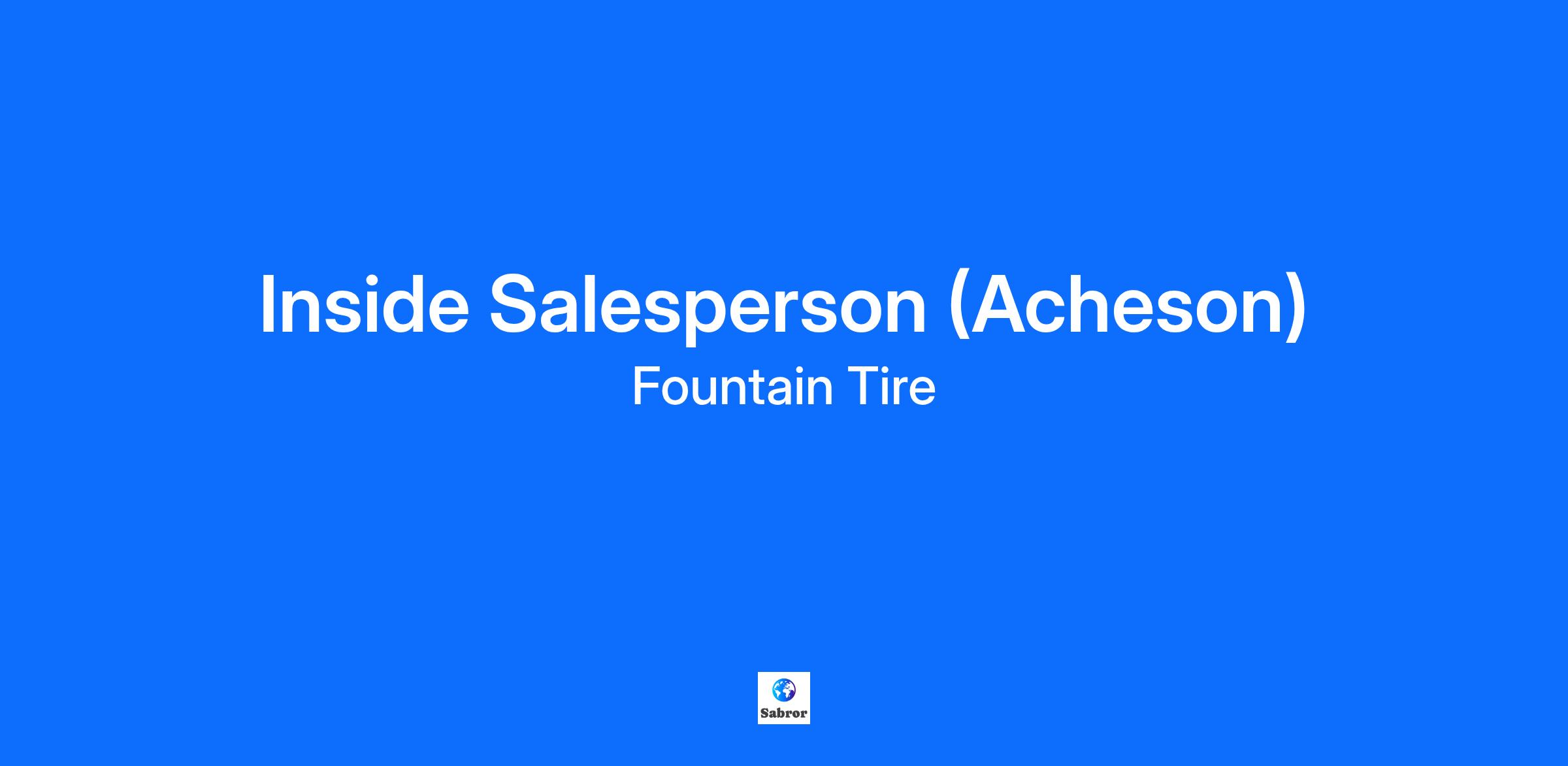 Overview Fountain Tire Mine Service (Distribution Centre at Acheson) (9633 266 Street, Acheson, AB) is currently looking for a Mine Service Distribution - Inside Salesperson to join our team!Salary: $68,000 - $74,000 (Based on experience)At Fountain Tire, our associates are our number one asset. As a member of our team you will get to enjoy some of our great benefits:What does Fountain Tire offer? Competitive compensation Regular hours – Monday to Friday Continual on-the-job training Safe work environment Comprehensive health, dental, and vision benefits for you and your family RRSP program with company matching Discounts for you and your family at all Fountain Tire locations As an Inside Salesperson, each day will bring new opportunities, but you will always be involved in: Leading the Distribution Center team to ensure daily tasks are completed accurately and on time. Collaborate with Mine Services Management to ensure planning, execution, and opportunities are maximized. Procure and process paperwork required to order, verify, and receive stock, ship hardware, tooling, and parts, working collaboratively with the Mine Services and Supply teams. Ensure that all products are billed accurately and on time by coding payables and completing sales quotes, ensuring profit margins are maintained. Assist in inventory management through documentation processes and annual inventory counts, ensuring an accurate and timely flow of information to the FTMS management and supply chain teams. Participate in safety initiatives and develop/maintain an excellent knowledge base for products and services. What does it take to get on track? 2+ years of experience in Commercial and Mining tires Applicants with existing automotive mining product knowledge will be given preference Strong attention to detail is required A Strong focus on Customer Service and proven leadership ability is an asset Strong computer skills with intermediate proficiency in all facets of MS Office and Dynamics AX Excellent verbal and written communication skills Must have drivers license and reliable transportation Applicants are encouraged to apply online.