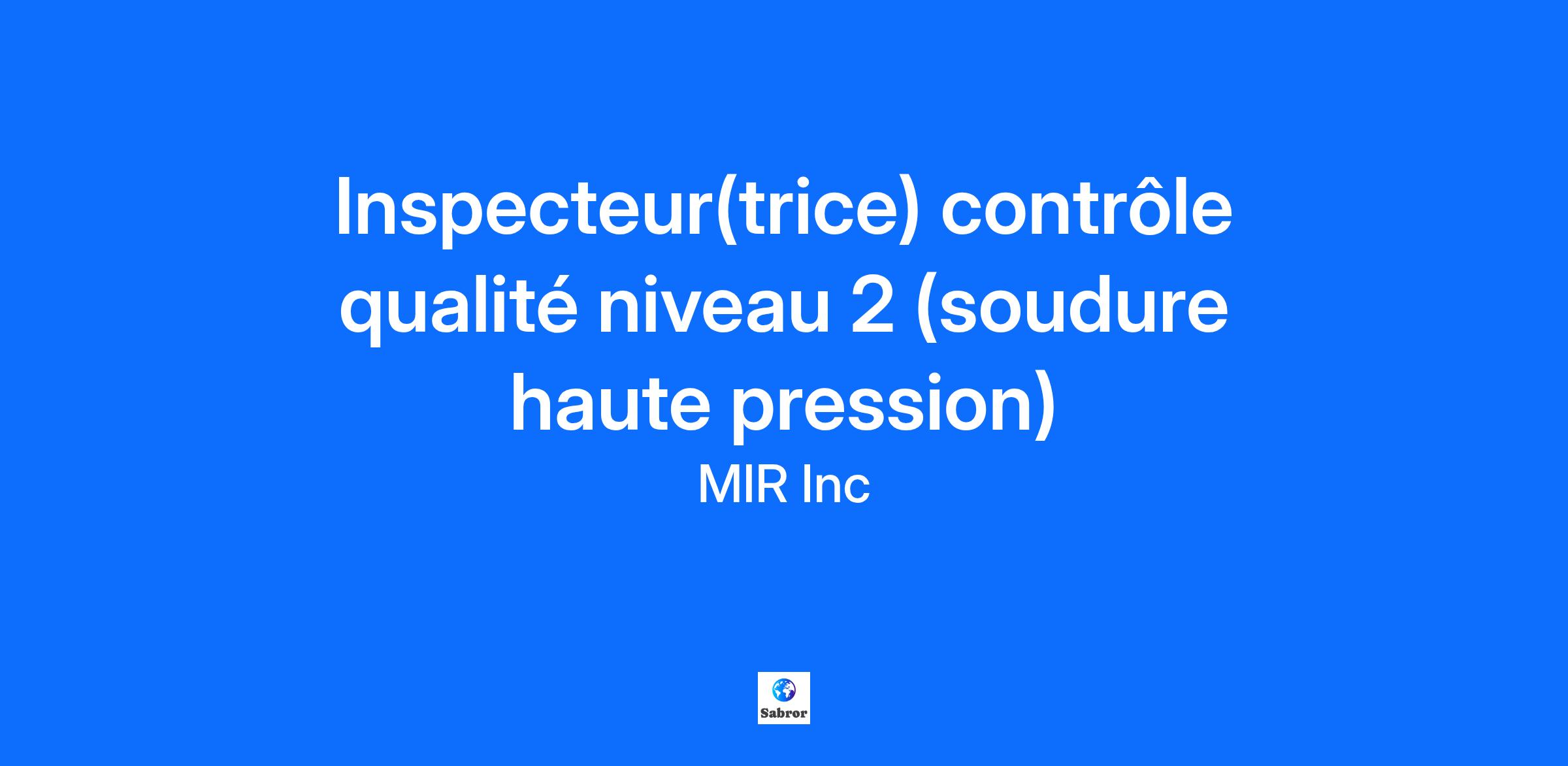 Notre partenaire industriel situé à Blainville, est présentement à la recherche d'un(e) Inspecteur contrôle qualité niveau 2 (soudure haute pression), pour joindre leur équipe. Les avantages : Assurance Dentaire; Assurance Maladie Complémentaire; Assurance Vie; Assurance Vision; Congés de Vacances et Compensatoires; Événements d'Entreprise; Programme d'Aide aux Employés; REER Collectif; Stationnement sur place. Résumé du poste : Effectuer les inspections en contrôle de qualité durant tout le processus de fabrication, allant de l’inspection à la réception des matériaux jusqu’au produits finaux. Il/elle aura comme responsabilité le suivi de tous les documents servant à la fabrication d'assécheurs de gaz naturel (selon le code ASME) et autres produits fabriqués par l’entreprise. Responsabilités : S’assurer que tout produit fabriqué soit conforme aux codes et aux normes lesquelles la compagnie est certifiée; Points d’arrêt en cours de production (inspection d’assemblage et visuel des soudures); Inspection de Mill Test Report et plaques signalétiques; Inspection des matériaux avant fabrication; Inspections internes et externes selon les normes applicables (ASME et autres); Vérification des tests hydrostatiques et pneumatiques des réservoirs et de la tuyauterie; Création des rapports de non-conformité; Inspections dimensionnelles; Inspections et suivis avec la Régie du Bâtiment du Québec; Rédaction des data reports Forms U-1A et U-3A (U et UM); Préparation des tests de soudeur et suivi des qualifications de soudeurs; Création des documents servant au suivi des travaux (feuille de route, etc.); National Board (suivi dans log book et envoi des data reports); Suivi de la calibration d'instruments de mesure; Réservation des essais non destructifs (NDE) chez les fournisseurs; Préparation de la documentation pour les clients (Historial Docket). Exigences : Minimum 5 années d'expérience en contrôle de la qualité dans le domaine de la soudure; Posséder Certificat d’inspecteur visuel niveau 2 ou 3 du bureau Canadien de soudage (CWB) / SNT-TC-1A; Expérience en inspection de réservoirs sous pression et tuyauterie (atout considérable) ASME Section VIII div.1, Section V, Section II, Section IX; Connaissance du code ASME Section VIII div.1, Section V, Section II, Section IX; DEP en soudage - montage (atout); Connaissance des normes européennes PED (atout); Bilingue (autant à l’écrit que verbal) (atout). Qualités recherchées : Être apte à travailler en équipe; Autonomie, ponctualité et fiabilité. Conditions de travail : Poste permanent à temps plein; Horaire de jour, du lundi au vendredi; Offre salariale : de30 à 40$/h, selon expérience. Veuillez noter que seuls les candidat(e)s retenu(e)s seront contacté(e)s. Site Internet : http://www.mirinc.ca #mi1234