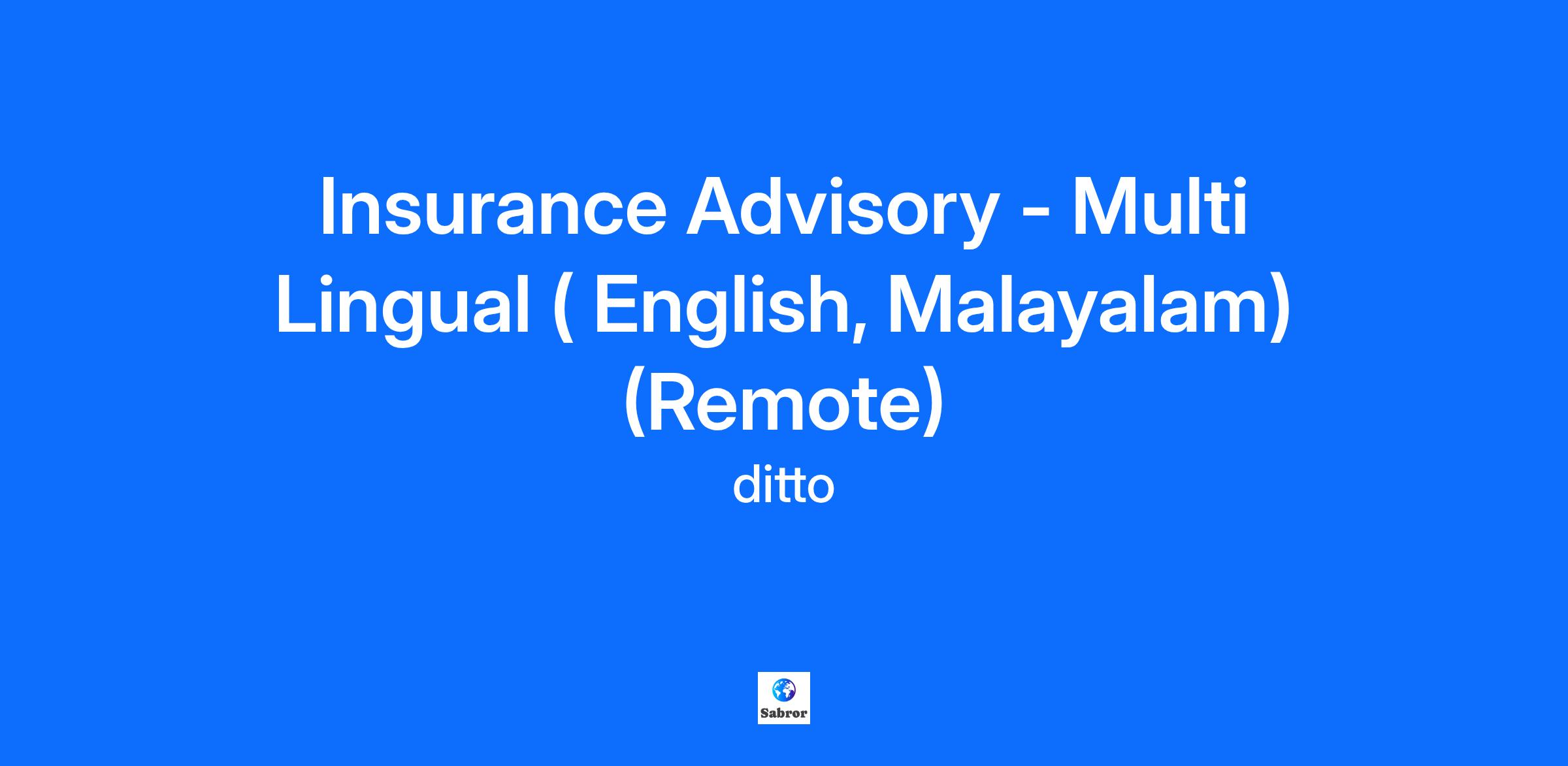 Insurance Advisor - Malayalam and English