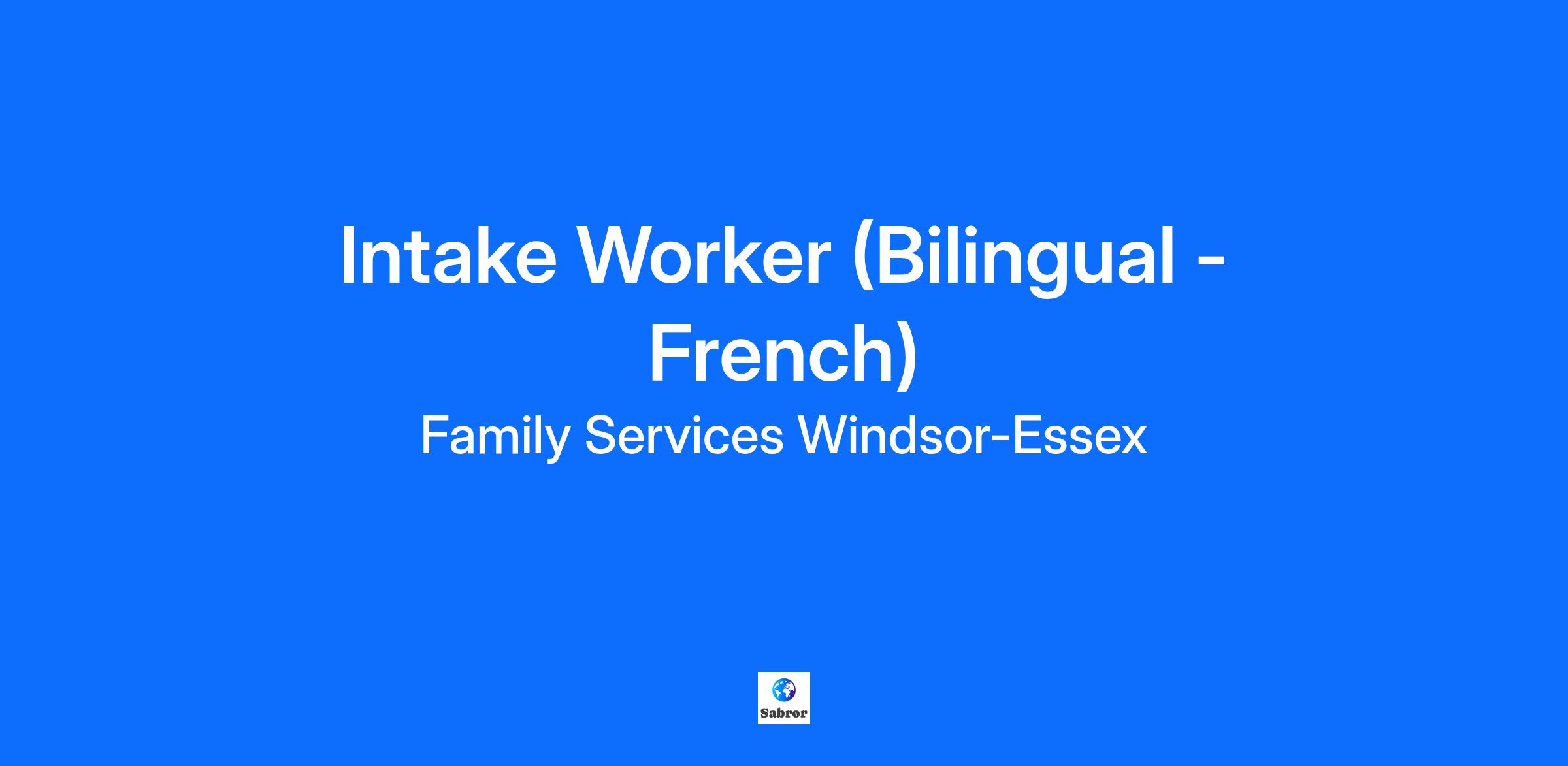 INTAKE WORKER (BILINGUAL - FRENCH/ENGLISH)