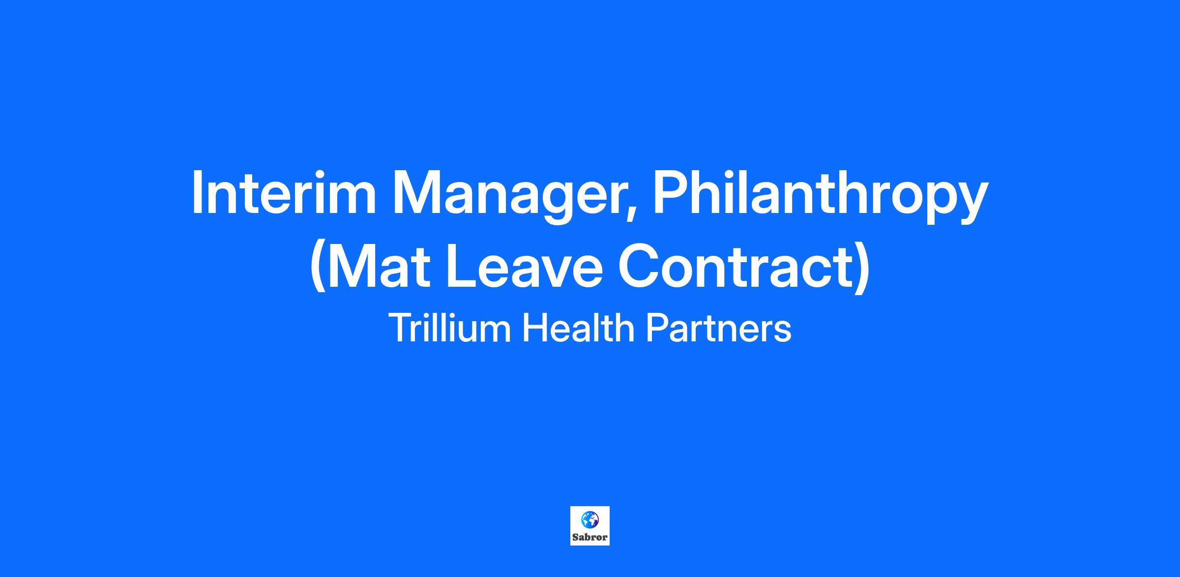 Position Title: Interim Manager, Philanthropy (Mat Leave Contract)
