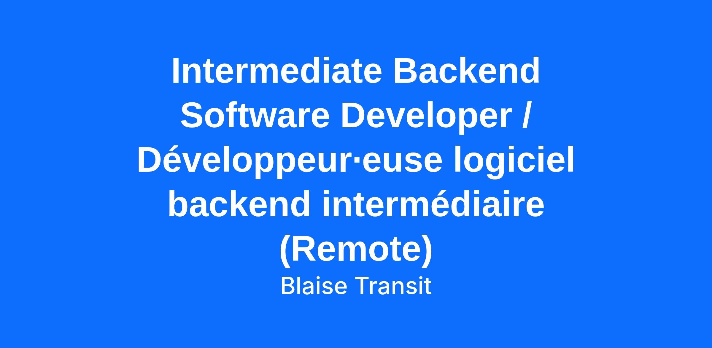 Job Title: Intermediate Backend Software Developer