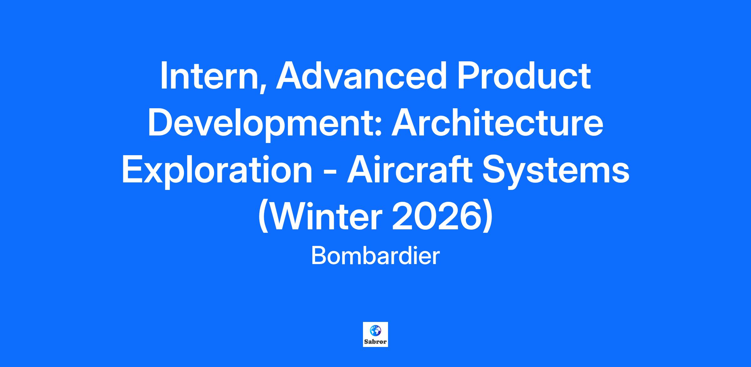 Innovation is in our DNA… is it in yours?Bombardier is a global leader in aviation, creating innovative and game-changing planes. Our products and services provide world-class experiences that set new standards in passenger comfort, energy efficiency, reliability and safety. We are a global organization focused on working together with a team spirit. Your boarding pass will include… Several conferences, including: Meet An Executive Women Taking Flight Learning more about Bombardier, including: Bombardier Products conference Visits of the Bombardier sites Bombardier Academy of Learning Many social/networking opportunities, including: Volunteering Networking for Success 5 à 7, Potluck, and much more! What are your contributions to the team? Participate in architecture exploration workshops Help drive the architecture exploration effort Collect technical findings, open questions, and actions from workshops Follow-up with specialists and support their trade studies and analyses Contribute to writing trade studies and summary memos How to thrive in this role? You are an engineering student with an interest in aerospace You like to think about the bigger picture You are able to work with unknowns, uncertainty, and abstract concepts You are organized, structured, and independent You have good communication skills Boarding Information: Location: Administrative Centre (CA) Duration: 8 months Flexible workplace-Hybrid It is important to note that our internship opportunities are open to students only, not new graduates. All our interns may be required to occasionally travel outside of Canada for training/work purpose.