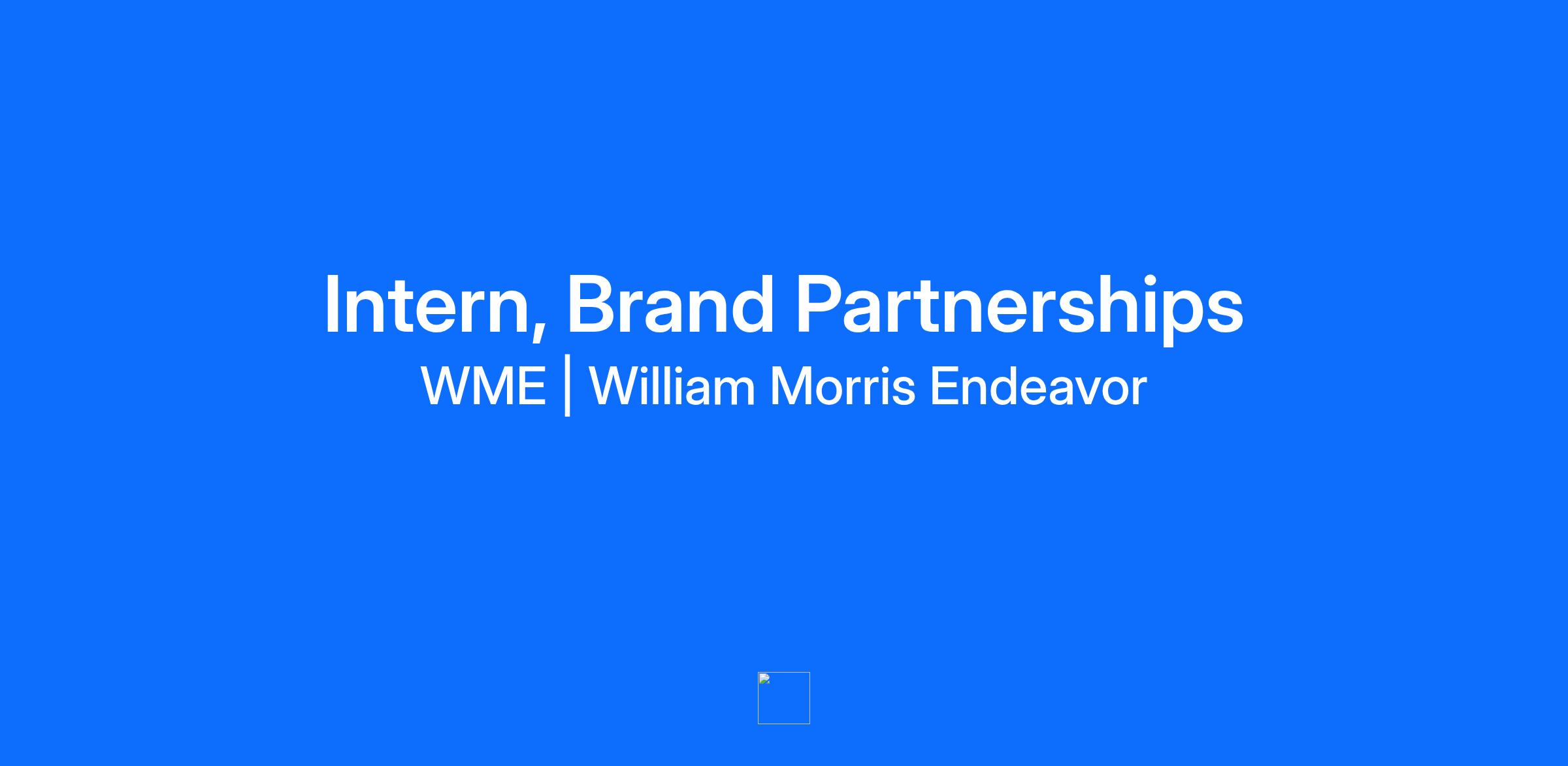 Who We Are: We oversee endorsement and voiceover opportunities for clients of all verticals. Brand Partnership deals take a variety of forms – from global ambassadorships and Super Bowl commercials to paid social posts and integrations. We work closely with colleagues across every department to ensure proper representation and work in tandem with our talent ventures group to help clients build their own brands. Program Details: We offer internship opportunities within our global sports and entertainment businesses, including global cultural marketing agency 160/90; global licensing business IMG Licensing; and entertainment agency WME (including WME Sports and Fashion). All internships are in the office and in person. In addition to hands-on experience and exposure to the global sports and entertainment industry, interns participate in events such as welcome/farewell sessions, a speaker series featuring company leaders, and career training workshops addressing everything from LinkedIn profile enhancement to resume building, interviewing skills, and networking. Internships are 40 hours per week, Monday through Friday, or standard local working hours in the internship location. Important Dates: December: Positions begin to post, on https://wmeimg.wd1.myworkdayjobs.com/ENDEAVOREARLYCAREERS/. January: Remaining positions posted. Recruiters begin to review applications and contact candidates. Mid-March: Roles will be filled on a rolling basis, with the goal of extending most offers by middle of March. June 8 – August 14: US internship program dates June 29 – September 4: EMEA internship program dates Recruitment Process: Our process consists of four steps. Online Application: In addition to your application and resume, tell us your story! Please attach a Word document that answers the following questions (300 total words max): Why are you interested in the role? What are the unique perspectives, abilities, and qualities you would bring to the role? What do you hope to learn? You will submit this document instead of a cover letter and it can be uploaded where the cover letter would have been in the online application. Video Interview with a Recruiter: If selected for next steps, you will be contacted by the recruiting team to schedule a video interview via Microsoft Teams. Video Interview with the Hiring Manager: If selected to move forward, you will meet with the hiring manager and potentially 1-2 additional team members. Offer or Decline: If selected for the position, a recruiter will call to extend an offer. If you have not been selected, a recruiter will reach out to let you know. Eligibility: Our program is designed for rising seniors and those within six months of graduation from an undergraduate program, unless otherwise noted. Pay: We offer paid internships; rates vary based on location. Pay rates typically align with local required minimums and vary by country. What We Do: WME Group is a global network of businesses that represent the world’s leading talent, intellectual property and brands. WME Group comprises preeminent talent agency WME, global marketing agency 160over90, brand licensing agency IMG Licensing, and nonscripted content business Pantheon Media Group. WME is an equal opportunity employer and encourages applications from qualified and eligible candidates regardless of sex, race, disability, age, sexual orientation, or religion or belief. WME is the world’s preeminent talent agency. With over 125 years of experience, WME enables artists, athletes and brands to grow their businesses, leverage the full potential of their intellectual property, and bring projects to life that define the cultural landscape. WME’s expertise spans books, comedy, digital media, fashion, film, food, licensing, music, sports, television, theater, and more. Headquartered in Beverly Hills, WME’s office locations include Australia, Chicago, China, London, Miami, Nashville, and New York. WME is part of WME Group, a global network of businesses that represent the world’s leading talent, intellectual property and brands. For more information, please visit www.wmeagency.com.