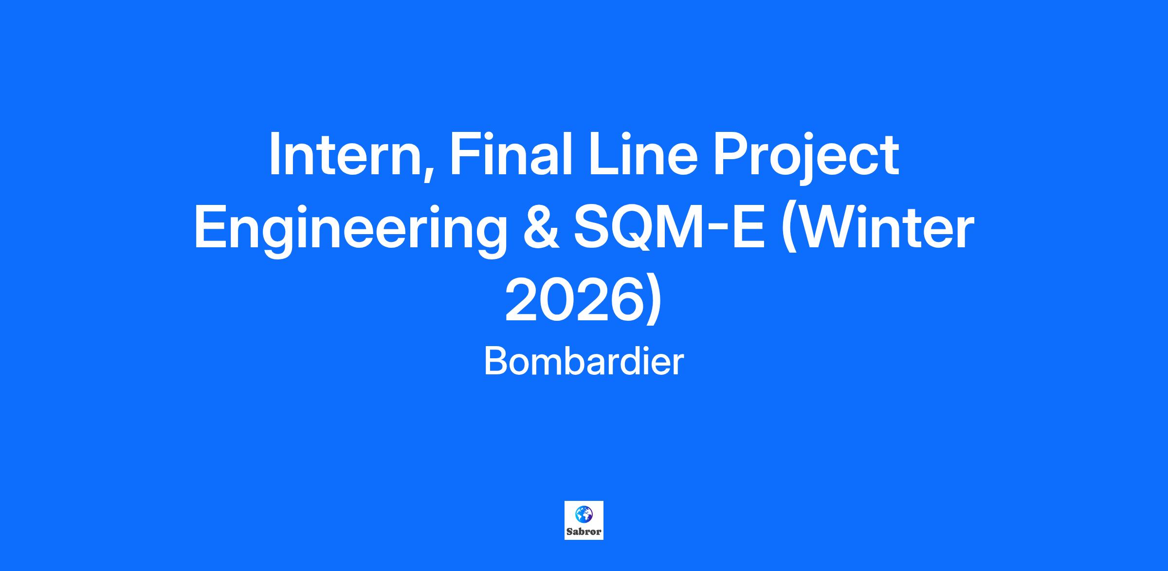 Intern, Final Line Project Engineering & SQM-E (Winter 2026)