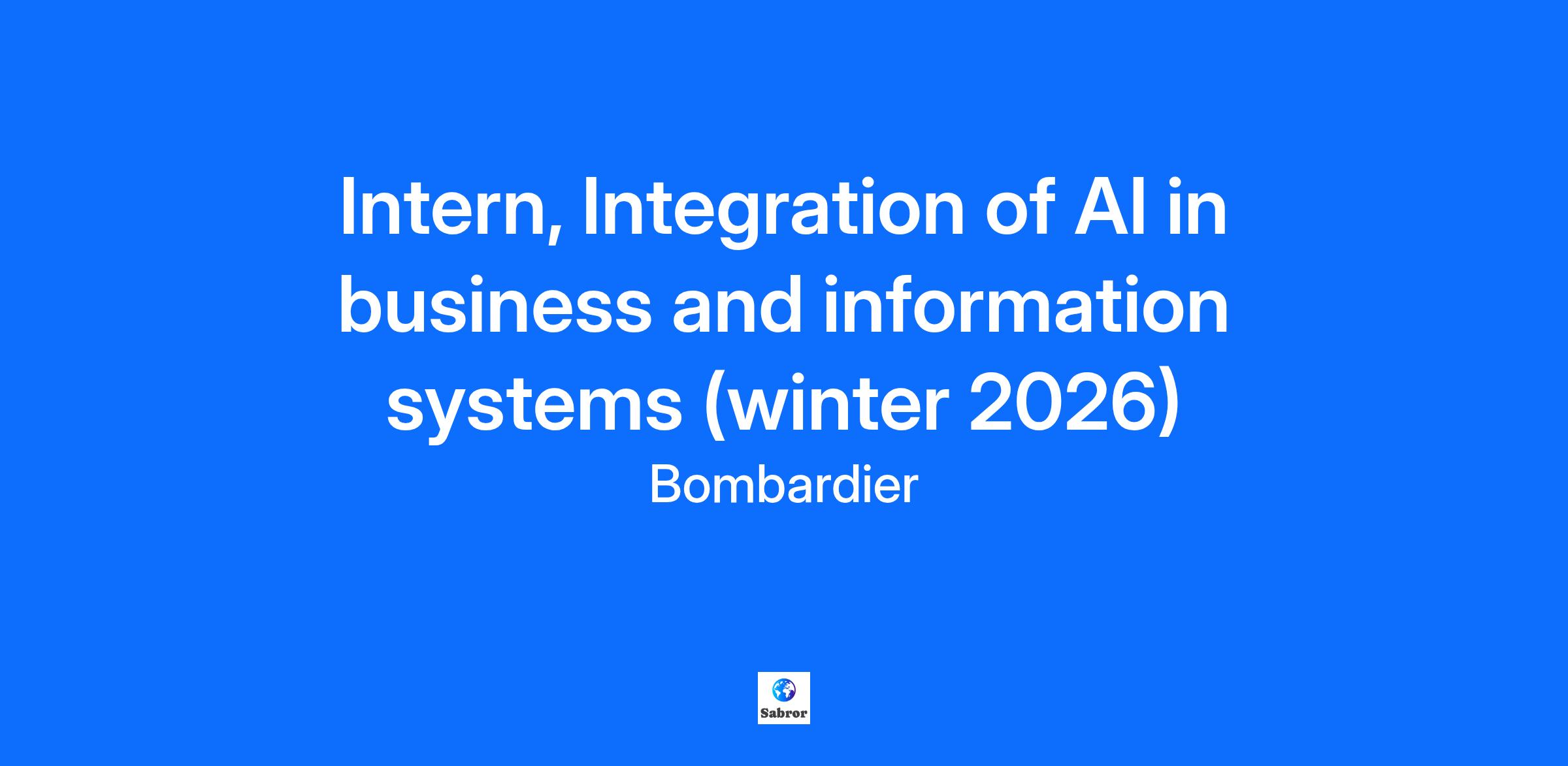 Innovation is in our DNA… is it in yours?Bombardier is a global leader in aviation, creating innovative and game-changing planes. Our products and services provide world-class experiences that set new standards in passenger comfort, energy efficiency, reliability and safety. We are a global organization focused on working together with a team spirit. Your boarding pass will include… Several conferences, including: Meet An Executive Women Taking Flight Learning more about Bombardier, including: Bombardier Products conference Visits of the Bombardier sites Bombardier Academy of Learning Many social/networking opportunities, including: Volunteering Networking for Success 5 à 7, Potluck, and much more! What are your contributions to the team? Identify, support, and collaborate on AI-driven initiatives under the sponsorship of a leader Identify and recommend potential use cases Demonstrate clear benefits of use cases selected Change management / mindset changes within the team demonstrating with use cases the power of AI How to thrive in this role? You have strong analytical thinking & communication skills You are currently enrolled in a university program studying Computer Science or related field You are passionate about AI and more specifically Generative AI (GenAI) technologies You have knowledge of prompt engineering and Microsoft Copilot Studio is a strong asset You are fluent in English with a good understanding of French Boarding Information: Location: Administrative Centre (CA) Duration: 8 months Flexible workplace-Hybrid It is important to note that our internship opportunities are open to students only, not new graduates. All our interns may be required to occasionally travel outside of Canada for training/work purpose.