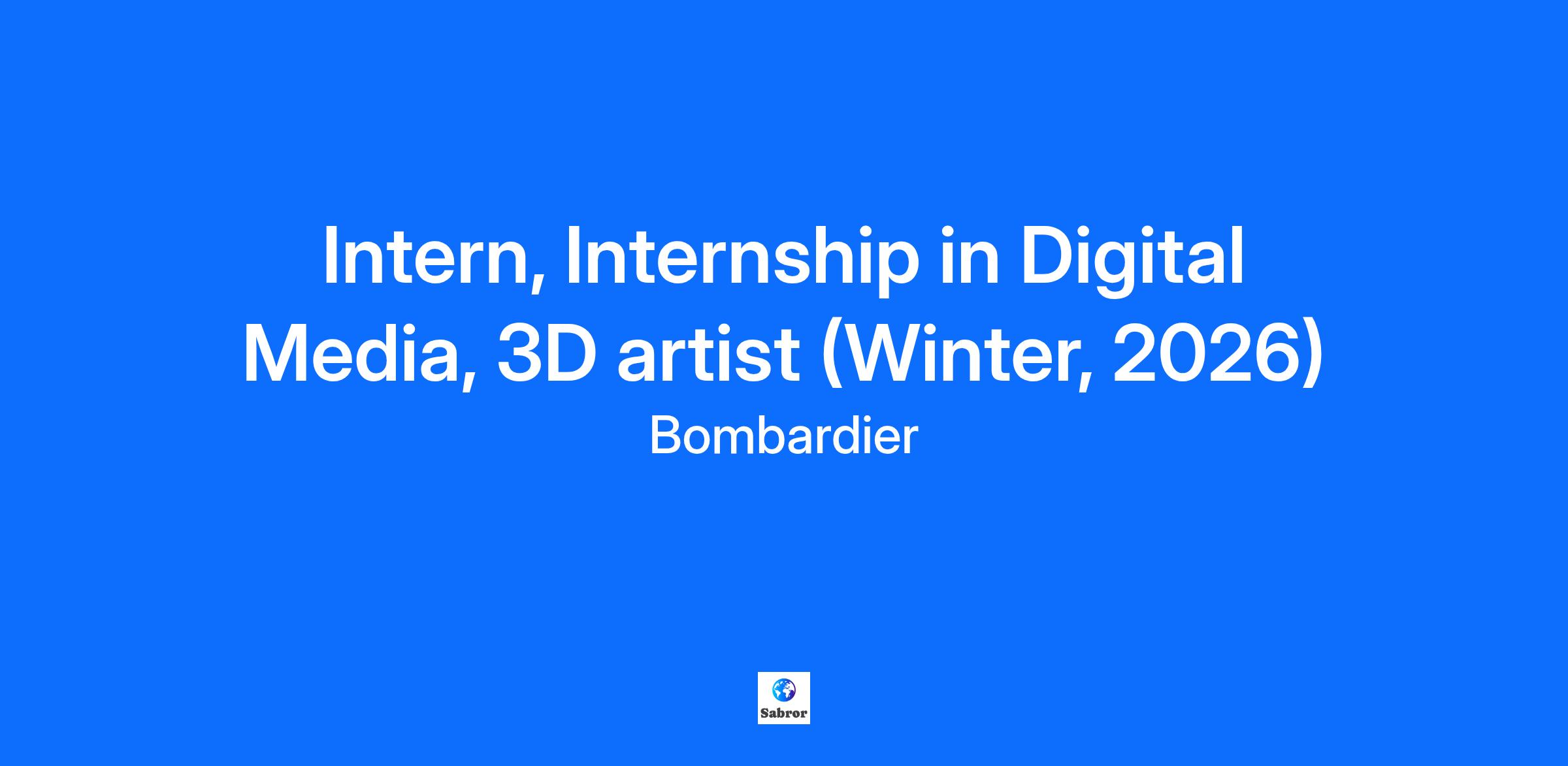 Innovation is in our DNA… is it in yours?Bombardier is a global leader in aviation, creating innovative and game-changing planes. Our products and services provide world-class experiences that set new standards in passenger comfort, energy efficiency, reliability and safety. We are a global organization focused on working together with a team spirit. Your boarding pass will include… Several conferences, including: Meet An Executive Women Taking Flight Learning more about Bombardier, including: Bombardier Products conference Visits of the Bombardier sites Bombardier Academy of Learning Many social/networking opportunities, including: Volunteering Networking for Success 5 à 7, Potluck, and much more! What are your contributions to the team? Work with the Digital Media team and help with activities related to 3D imagery Plan your daily schedule based on assigned duties respecting deadlines Organize your work respecting established norms (i.e.: nomenclature etc…) How to thrive in this role? You are familiar with 3DS Max and 3D visualization workflow (Vray / UnReal Engine an asset) You are enrolled in a 3D rendering/modelling program or similar You have knowledge in Photoshop and Illustrator You have a passion for photo realistic 3D rendering You speak and write in French and/or English Boarding Information: Location: Completion Center Duration: 4 months Flexible workplace-Hybrid It is important to note that our internship opportunities are open to students only, not new graduates. All our interns may be required to occasionally travel outside of Canada for training/work purpose.