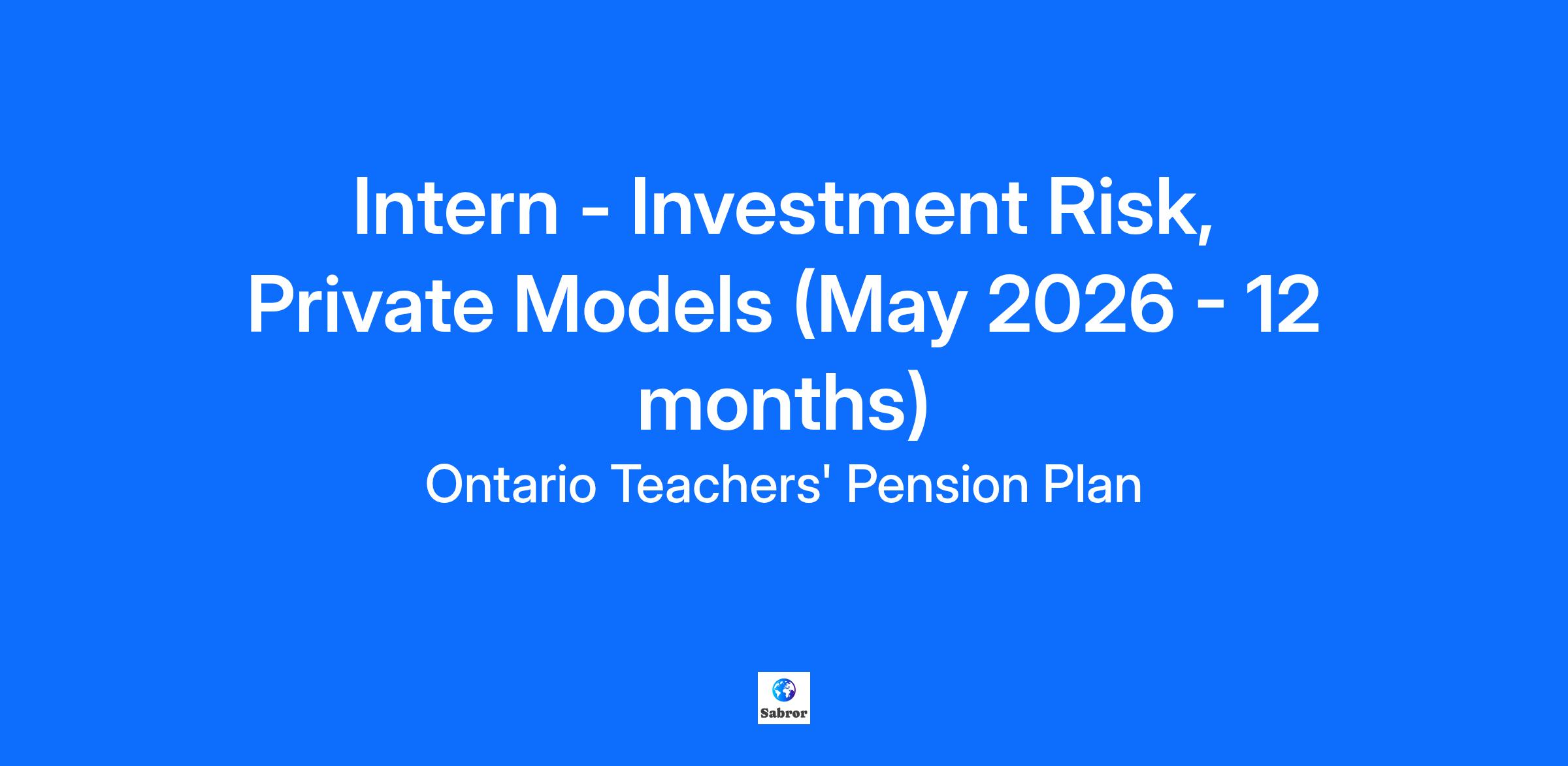 The deadline to apply for this role is: Until 11:59 PM of October 3, 2025 The opportunity May 2026 – April 2027 Are you curious to learn more about the risks taken by OTPP’s investment professionals in Private Equity, Venture Capital, Infrastructure, Real Estate, and Natural Resources? Join the Private Models Team within Investment Risk. We are a diverse group looking to add a creative and lateral thinker to supplement our activities and provide value-add to the private investment teams and the OTPP Board. As a Co-op student, you will be responsible for a variety of reporting and research activities that support the strategic objectives of the Private Models Team. You will help shape and define a risk agenda that impacts the way investment risk is modelled, monitored, and reported for over $150 billion of private investments. Who you’ll work with Reporting to the Director, you will work with dedicated team members to measure and report the market and credit risks of our private holdings in Private Equity, Venture Capital, Infrastructure, Real Estate, and Natural Resources. Our team consists of 5 risk professionals located in Toronto. We model, monitor, and report investment risks for private assets of over $150 billion. What you’ll do Develop a deep understanding of current and new investments Prepare and deliver timely and high quality reports to senior management Contribute to research initiatives supporting the risk modelling process Play a role in developing modelling frameworks to capture the risk characteristics of various asset classes and individual investments What you’ll need Proficiency in MS Office applications (with an emphasis on Excel) Working knowledge in VBA, C# (or other equivalent Object Oriented programming languages), MATLAB, and SQL is preferred Working knowledge in Corporate Finance, Financial Accounting, or equivalent is preferred FRM/CFA (Level 1 or 2) is a plus Quantitative and qualitative problem solver An ability to research and test out new ideas/concepts to bridge the gap between theory and practice Proven ability to work independently as well as to perform effectively in a team-oriented environment Excellent interpersonal, communication, and teamwork skills Self-motivated, flexible, and adaptable Working towards Masters degree is an asset Please note that although the deadline for this posting is October 3rd, 2025 at 11:59PM EST, we will be reviewing applications on a rolling basis. We recommend candidates apply as soon as possible. #LI-OTPP #LI-Hybrid What we’re offering Numerous opportunities for professional growth and development, including lunch and learns Student led team building events on a monthly basis Employee discount programs including Edvantage and Perkopolis At Ontario Teachers', diversity is one of our core strengths. We take pride in ensuring that the people we hire and the culture we create, reflect and embrace diversity of thought, background and experience. Through our Diversity, Equity and Inclusion strategy and our Employee Resource Groups (ERGs), we celebrate diversity and foster inclusion through events for colleagues to connect for professional development, networking & mentoring. We are building an inclusive and equitable workplace where our talent is respected, accepted and empowered to be themselves. To learn more about our commitment to Diversity, Equity and Inclusion, check out Life at Teachers'. How to apply Are you ready to pursue new challenges and take your career to the next level? Apply today! The following documents are required to be uploaded with your application: Resume Copy of your transcripts You will also be invited to complete a pre-recorded digital interview as part of your application. We thank you for applying, however, only those selected for a personal interview will be contacted. Note that candidates must be legally entitled to work in the country where this role is located. Accommodations are available upon request (peopleandculture@otpp.com) for candidates with a disability taking part in the recruitment process and once hired. Ontario Teachers’ may use AI-based tools to assist in screening and assessing applicants for this position. These tools may help us identify candidates whose skills and experience align with Ontario Teachers’ objectives by analyzing information provided in resumes and applications. Our use of AI does not replace human decision-making. To learn more about how Teachers’ uses AI with your personal information, please visit our Privacy Centre. Functional Areas: Administration Vacancy: Current Requisition ID: 6675 At Ontario Teachers, we know that our Talent are our greatest strength – every innovation, every idea and every win has been powered by our people. We offer a work experience that inspires, encourages talent development, celebrates diversity and rewards superior performance. The best and brightest not only come here – they stay. Help us continue to deliver outstanding service and retirement security to our members and be the world’s leading pension plan. Apply today! Your Talent. Your Experience. Our Future. www.otpp.com/careers