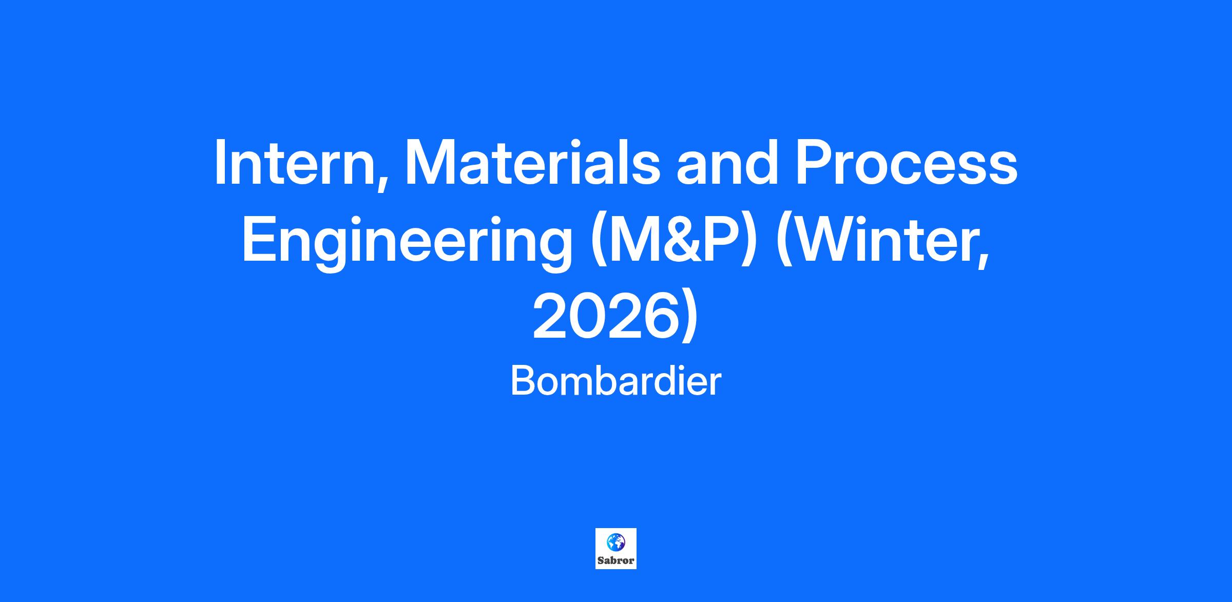 Innovation is in our DNA… is it in yours?Bombardier is a global leader in aviation, creating innovative and game-changing planes. Our products and services provide world-class experiences that set new standards in passenger comfort, energy efficiency, reliability and safety. We are a global organization focused on working together with a team spirit. Your boarding pass will include… Several conferences, including: Meet An Executive Women Taking Flight Learning more about Bombardier, including: Bombardier Products conference Visits of the Bombardier sites Bombardier Academy of Learning Many social/networking opportunities, including: Volunteering Networking for Success 5 à 7, Potluck, and much more! What are your contributions to the team? During your internship, you will contribute to: Analyze data gotten from testing and provide diagnostics Revise Engineering process specifications Draft some reports and suggest technical recommendations Help solving problems that are brought by many different production departments Support the M&P Engineering department daily activities During your internship, you will learn: Application/software Develop soft skills such as mutual aid and problem solving Participate to multidisciplinary meetings with other functions such as Quality, Methods, Logistics and production How to thrive in this role? What we are looking for: You are skilled with the Microsoft office suite (Word, Excel, Power Point). You know about Catia V5 (attractive feature) You easily communicate with many different people You are a team player You have minimum knowledge about metallic materials Boarding Information: Location: Marcel-Laurin Plant 1 Duration: 12 months Flexible workplace-Hybrid It is important to note that our internship opportunities are open to students only, not new graduates. All our interns may be required to occasionally travel outside of Canada for training/work purpose.