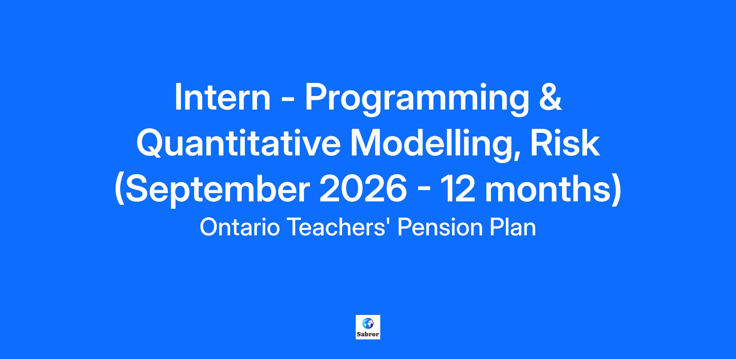 The deadline to apply for this role is: Until 11:59 PM of October 10, 2025 The Opportunity September 2026 - August 2027 You will be responsible for a variety of quantitative software development activities that will support the in-house cross asset class derivatives model library as well as related infrastructure. You will gain exposure to financial markets, more specifically, derivatives in different asset classes. Our team covers a vast range of products including Foreign Exchange markets, Interest Rates, Equity, Credit, Weather and Insurance derivatives. The Model Development team supports many different groups in the pension fund including Capital Markets, Risk Management, and Finance/Operations. Who you’ll work with You will mainly interact with financial engineers at Director and Principal level. There will be opportunities to collaborate with other colleagues across the fund – in Capital Markets or Public Markets Risk teams. What you’ll do Contribute to the development of required infrastructure for financial and derivative analytics Support the integration of new derivative products and valuation models into existing systems Provide quantitative support to front office model users Develop Excel models for front office users, including pricing templates What you’ll need Strong programming skills in one or more of: C++/C#/JAVA Knowledge of front-end development language is highly desired: JAVA SCRIPT, REACT, ANGULAR Strong analytical and quantitative skills and in-depth, innovative, critical analysis Curiosity about the financial markets Preferred knowledge of mathematical finance and numerical methods Knowledge of machine learning is an asset Preferred background in quantitative field and/or development software development Strong attention to detail and accuracy Excellent communication skills (oral and written) Ability to work independently as well as to perform effectively in a team-oriented environment Must be enrolled in 2nd or 3rd year You must be enrolled in a co-op program or returning back to your studies after the work term is completed What we’re offering Numerous opportunities for professional growth and development, including lunch and learns Student led team building events on a monthly basis Employee discount programs including Edvantage and Perkopolis At Ontario Teachers', diversity is one of our core strengths. We take pride in ensuring that the people we hire and the culture we create, reflect and embrace diversity of thought, background and experience. Through our Diversity, Equity and Inclusion strategy and our Employee Resource Groups (ERGs), we celebrate diversity and foster inclusion through events for colleagues to connect for professional development, networking & mentoring. We are building an inclusive and equitable workplace where our talent is respected, accepted and empowered to be themselves. To learn more about our commitment to Diversity, Equity and Inclusion, check out Life at Teachers'. How to apply Are you ready to pursue new challenges and take your career to the next level? Apply today! The following documents are required to be uploaded with your application: Resume Copy of your transcripts You will also be invited to complete a pre-recorded digital interview as part of your application. We thank you for applying, however, only those selected for a personal interview will be contacted. Note that candidates must be legally entitled to work in the country where this role is located. Accommodations are available upon request (peopleandculture@otpp.com) for candidates with a disability taking part in the recruitment process and once hired. Ontario Teachers’ may use AI-based tools to assist in screening and assessing applicants for this position. These tools may help us identify candidates whose skills and experience align with Ontario Teachers’ objectives by analyzing information provided in resumes and applications. Our use of AI does not replace human decision-making. To learn more about how Teachers’ uses AI with your personal information, please visit our Privacy Centre. Functional Areas: Administration Vacancy: Current Requisition ID: 6676 At Ontario Teachers, we know that our Talent are our greatest strength – every innovation, every idea and every win has been powered by our people. We offer a work experience that inspires, encourages talent development, celebrates diversity and rewards superior performance. The best and brightest not only come here – they stay. Help us continue to deliver outstanding service and retirement security to our members and be the world’s leading pension plan. Apply today! Your Talent. Your Experience. Our Future. www.otpp.com/careers