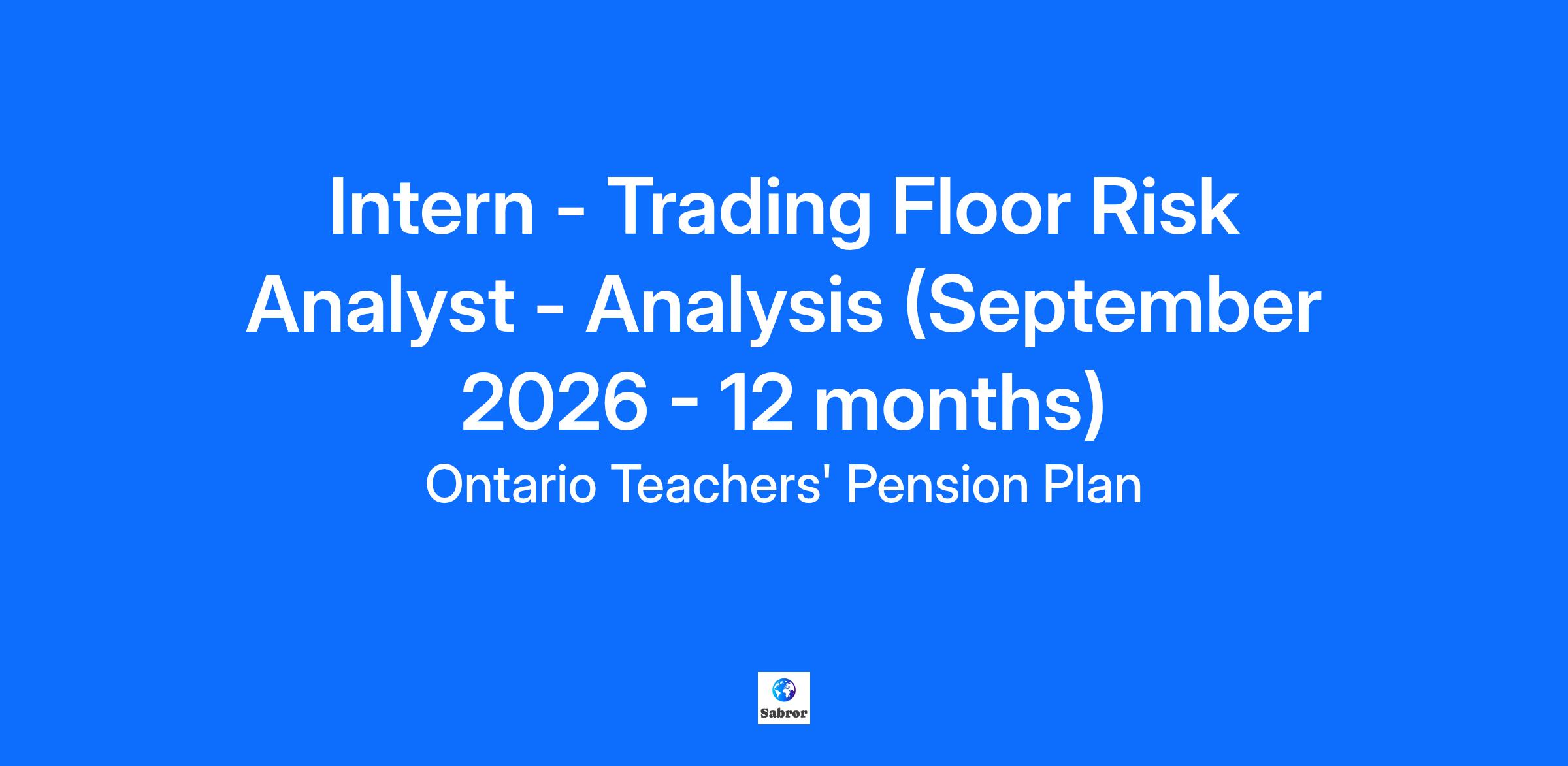 The deadline to apply for this role is: Until 11:59 PM of October 3, 2025 The Opportunity September 2026 - August 2027 Are you looking to apply your analytical skills with one of the largest pension funds in Canada? As an intern within Ontario Teachers’ Risk department, you will be involved in supporting the development and improvement of risk management frameworks for the pension fund. You will assist the team in assessing credit and capital markets risk including developing new tools and improving existing processes. As part of the Risk Department, the Credit & Capital Market Risk(CCMR) team is responsible for: Working closely with capital market on various risk analysis to support their portfolio management activities. Working closely with execution desk on counterparties analysis and provides recommendations for trading risk/exposure governance. Periodically support senior management in investment decision making by monitoring and assessing up-to-date capital market & credit risk both quantitatively and qualitatively. Recommending course of actions on regulatory developments regarding capital market trading activities. The design and support of the enterprise risk system which involves risk modelling initiatives, risk analytics for investment strategies, stress test etc. In-house quantitative risk system maintenance and enhancements including risk metrics design, implementation, and visualization. Who you’ll work with You will be a part of a specialized team of professionals with diverse backgrounds. Together, our primary mission is to craft and continuously enhance credit and capital markets risk frameworks. We are also responsible for evaluating our various counterparties. As a co-op, you will report to a Principal in the Risk department’s Credit & Capital Markets Risk team. The role will also provide several opportunities to interact with other teams within the Risk Department as well as the different Investment teams including Total Fund Management and Capital Markets. This is also a fantastic opportunity to: Learn about risk management both quantitatively and qualitatively in a leading investment institution. Get an in-depth exposure into how finance and technology interacts. Get valuable experience in understanding how large financial systems work. What you’ll do The responsibilities of this role will be balanced between supporting the capital markets risk and credit risk management teams within CCMR, which will include the following: Assisting with daily operations and reporting while furthering the automation of processes that support risk analysis. Supporting credit and counterparty risk assessments. Completing ad-hoc projects including the presentation of results to team members. Assisting with the design of risk dashboards in PowerBI. Assisting with the back-testing of models for various financial products. Collaborating with key individuals within Risk and other departments. What you’ll need Be pursuing undergraduate or graduate degree with a quantitative focus. Incorporate critical and analytical thinking and provide appropriate context to support decision making. General understanding of capital market instruments, including derivatives. Excellent learning ability and self-motivated in research. Proficient in Excel and Power Point. Programming skills are a plus (VBA, SQL, PowerBI or Python) Previous work experience in the financial industry is a plus Presentation skills are a plus Strong communication skills, both oral and written. You should be returning back to your studies after the work term is completed. Please note that although the deadline for this posting is October 3, 2025, we will be reviewing applications on a rolling basis. We recommend candidates apply as soon as possible. #LI-SS, #LI-Hybrid What we’re offering Numerous opportunities for professional growth and development, including lunch and learns Student led team building events on a monthly basis Employee discount programs including Edvantage and Perkopolis At Ontario Teachers', diversity is one of our core strengths. We take pride in ensuring that the people we hire and the culture we create, reflect and embrace diversity of thought, background and experience. Through our Diversity, Equity and Inclusion strategy and our Employee Resource Groups (ERGs), we celebrate diversity and foster inclusion through events for colleagues to connect for professional development, networking & mentoring. We are building an inclusive and equitable workplace where our talent is respected, accepted and empowered to be themselves. To learn more about our commitment to Diversity, Equity and Inclusion, check out Life at Teachers'. How to apply Are you ready to pursue new challenges and take your career to the next level? Apply today! The following documents are required to be uploaded with your application: Resume Copy of your transcripts You will also be invited to complete a pre-recorded digital interview as part of your application. We thank you for applying, however, only those selected for a personal interview will be contacted. Note that candidates must be legally entitled to work in the country where this role is located. Accommodations are available upon request (peopleandculture@otpp.com) for candidates with a disability taking part in the recruitment process and once hired. Ontario Teachers’ may use AI-based tools to assist in screening and assessing applicants for this position. These tools may help us identify candidates whose skills and experience align with Ontario Teachers’ objectives by analyzing information provided in resumes and applications. Our use of AI does not replace human decision-making. To learn more about how Teachers’ uses AI with your personal information, please visit our Privacy Centre. Functional Areas: Administration Vacancy: Current Requisition ID: 6667 At Ontario Teachers, we know that our Talent are our greatest strength – every innovation, every idea and every win