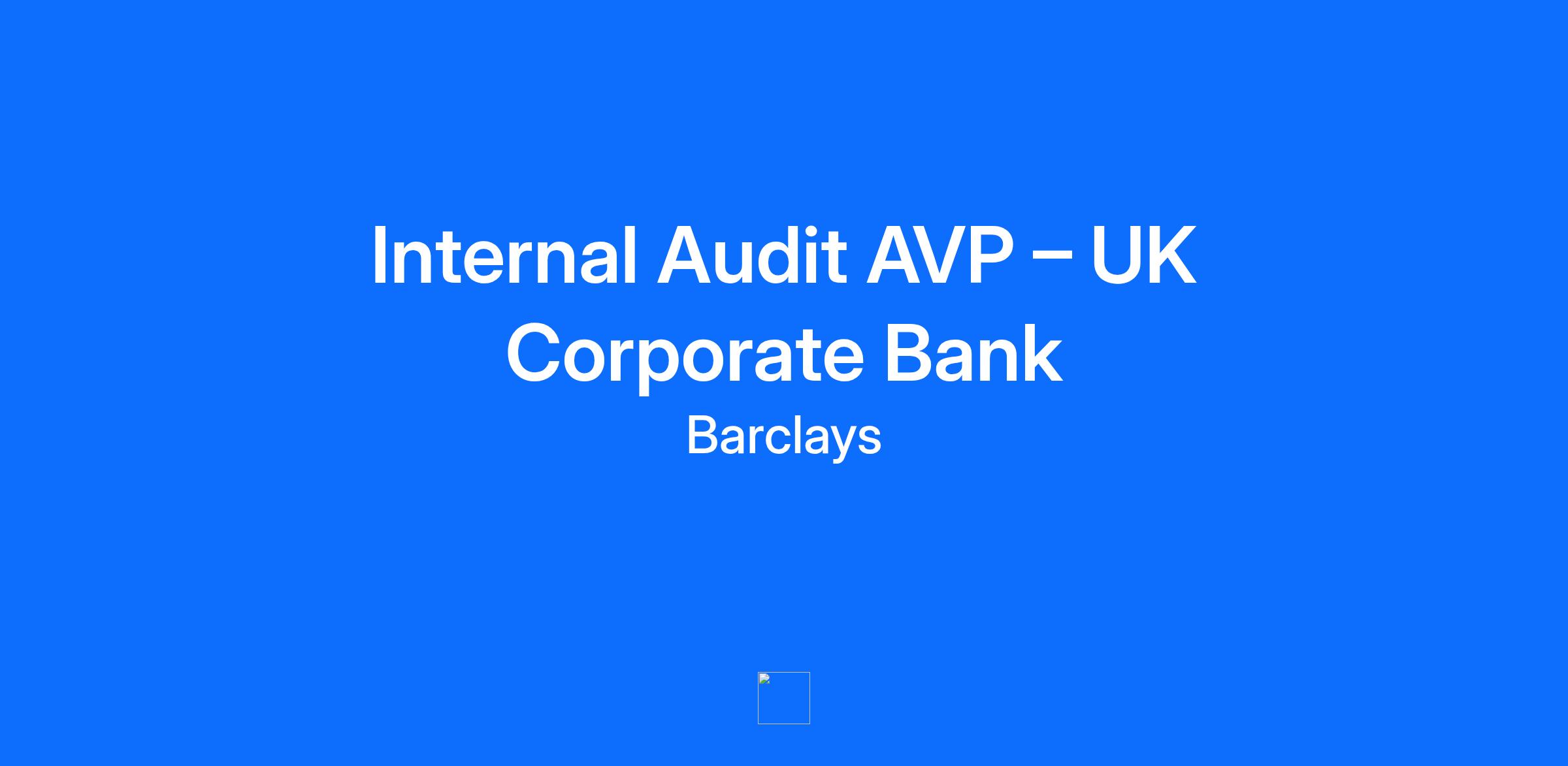 Internal Audit AVP – UK Corporate Bank