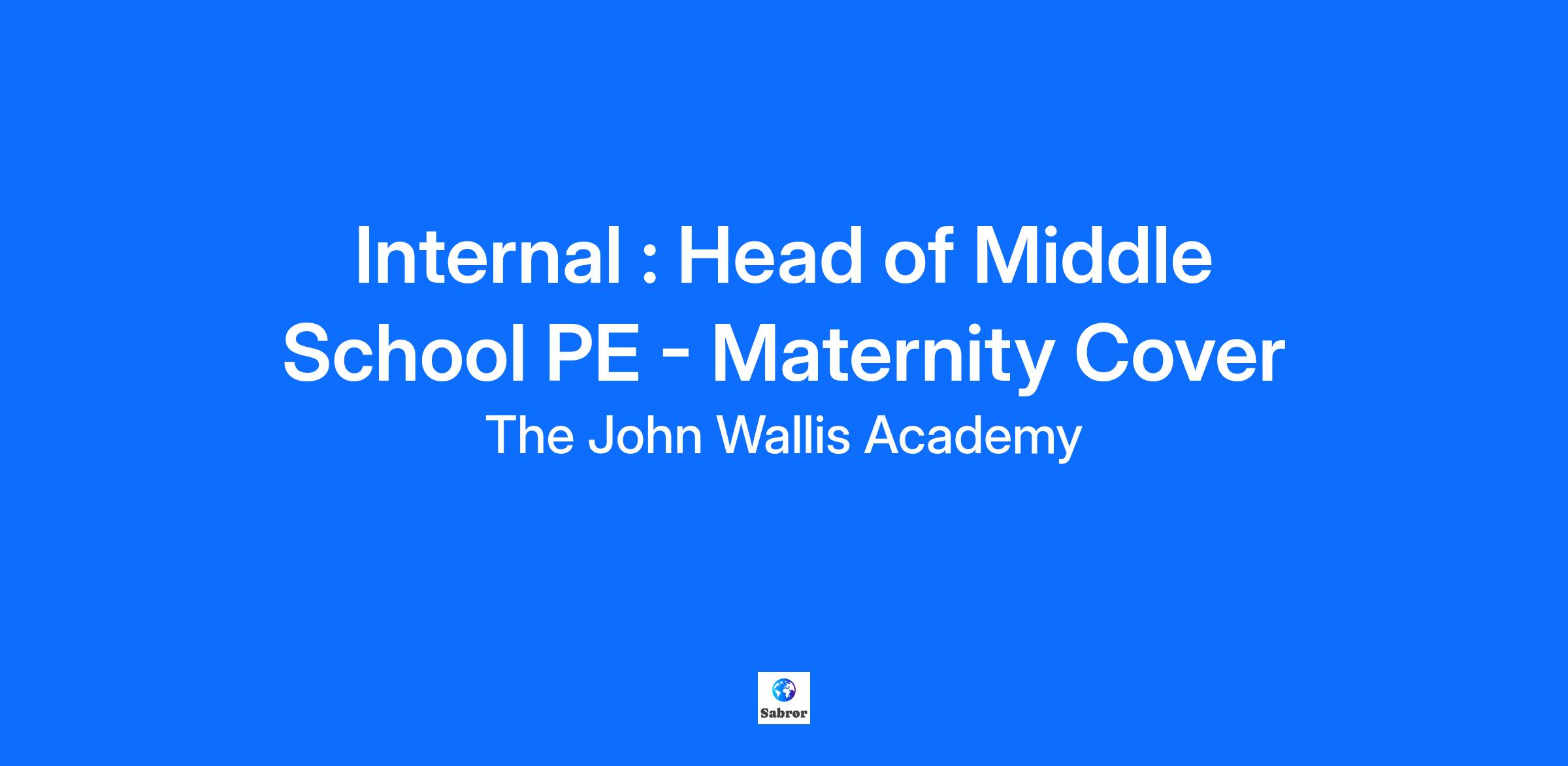 Head Of Middle School PE -Maternity Cover The Academy is seeking to appoint a Head of Middle School PE Maternity Cover, start date to be confirmed. This role is being advertised internally only in the first instance to allow colleagues the opportunity to apply. Please do speak to your line manager to discuss this opportunity before applying.