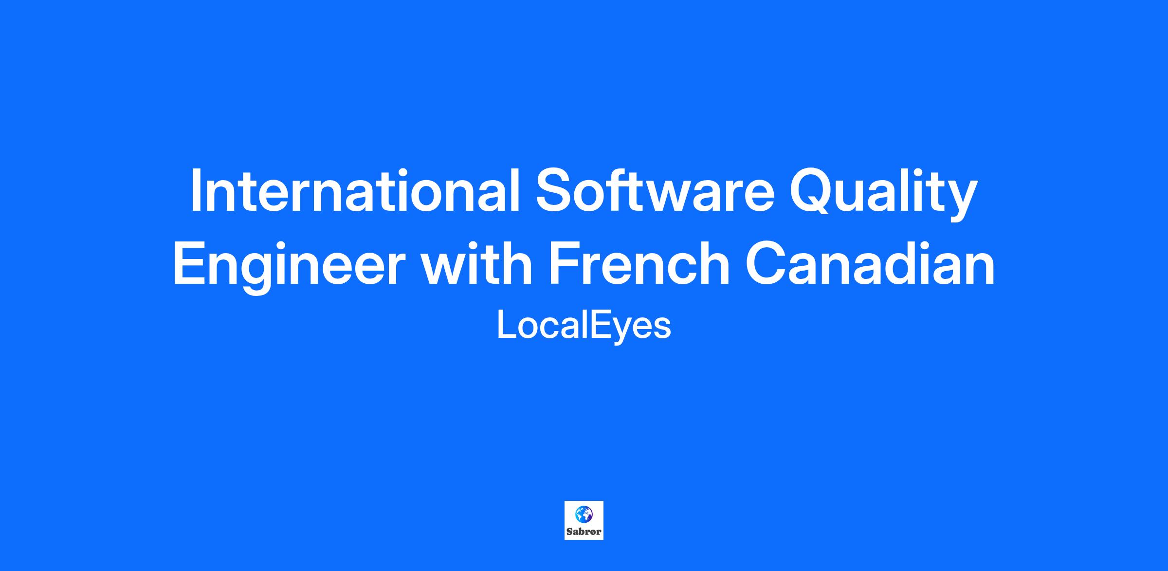 LocalEyes is a leading provider of Localisation Services to the international computer and software sectors. LocalEyes has more than 20 years of experience, European headquarters established in Cork and offices in Europe and US.<\/span><\/span> We are specialized in localization and internationalization.<\/span><\/span> We work with the best and the brightest talents in dynamic and international teams worldwide. We work with the worldâs most innovative companies. We help them to grow and expand in new markets providing experts and cultural awareness. We currently have an exciting opportunity for an International Software Quality Engineer with French Canadian to work with one of the most innovative, multinational and multicultural technology companies.<\/span><\/span> <\/span><\/span><\/span> Job Summary:<\/span><\/b><\/span> <\/span><\/span><\/span>The European Software Localisation Quality Assurance team is responsible for designing, implementing and executing both automated and manual test plans in an effort to assure the quality of our clientâs wide variety of software products. We are looking for highly motivated individuals that meet the description below. Responsibilities:<\/span><\/b><\/span> Depending on experience and skills, duties might also include:<\/span><\/b><\/span> Required skills: <\/span><\/span><\/span><\/b> Preferred:<\/span><\/span><\/span><\/b>