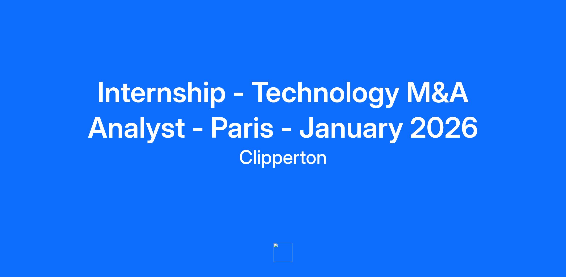 Position: Technology M&A Analyst (Internship) Start Date: January 2026 Contract: Internship Location: Paris Duration: 6 months To join us: Please apply online to our job offer. A cover letter in addition to your application is very much appreciated. Clipperton is an Equal Opportunity Employer. All qualified applicants will receive consideration for employment without regard to race, color, age, religion, sex, sexual orientation, gender identity / expression, national origin, disability. We process this data for recruitment purposes only. Our firm Clipperton is a leading investment bank dedicated to technology and growth companies: we provide strategic and financial advisory to entrepreneurs, corporates and top-tier investors in Europe willing to execute transactions such as strategic M&A, private equity transactions and private placements. Founded in 2003 and with offices in Paris, London, Berlin, Munich, New York and Beijing, Clipperton has completed over 400 M&A and private placement transactions with fast-growing technology start-ups, blue-chip corporates and renowned financial investors. Job description In order to support its strong execution pipeline and marketing efforts, the firm is currently looking to hire an Analyst Intern for a 6-month internship based in Paris. Responsibilities will include: Support existing and upcoming transactions throughout the entire process, from kick-off to closing: Preparation of investment memoranda and presentations (industry study, strategic review, financial analysis) Business plan modelling Due diligence management Support commercial & marketing efforts Preparation of commercial presentations / pitches (screenings, company profiles, positioning, valuation, deal strategy) Identification of new prospects Participation in the preparation of sectoral research papers and other marketing initiatives. You have a strong academical background with a Bachelor or Masters degree and ideally gained first international experience You are an entrepreneurial and independent individual with demonstrated analytical and commercial thinking, excellent communication and intercultural skills and finance proficiency You have prior M&A experience at Investment Banks, Private Equity or Venture Capital funds and you are interested in technology based transactions You can handle pressure and work under tight deadlines, you are curious and analytical, you are a team player and like exposure to senior management Written and spoken proficiency in French and English is a must, German or Spanish a plus Entrepreneurial and open-minded environment Strong deal pipeline and client exposure from the first day Steep learning curve and supportive colleagues Unique company culture and team spirit Offices in Paris, Berlin and Munich Outstanding performance throughout the internship might lead to a permanent position depending on business needs. And many other benefits to read here