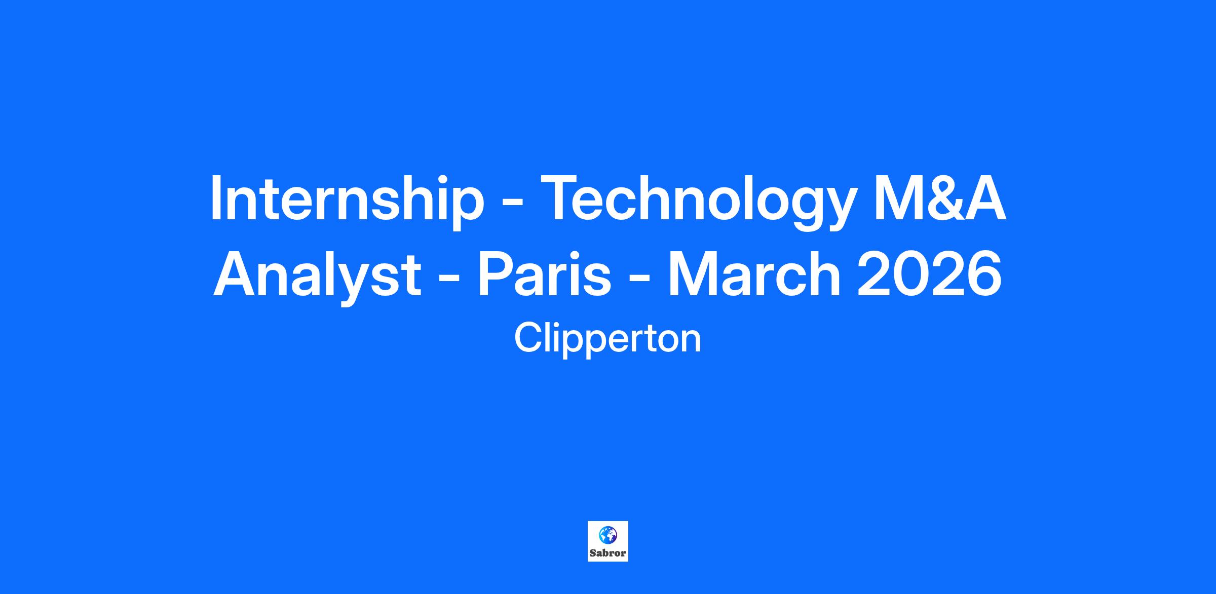 Position: Technology M&A Analyst (Internship) Start Date: March 2026 Contract: Internship Location: Paris Duration: 6 months To join us: Please apply online to our job offer. A cover letter in addition to your application is very much appreciated. Clipperton is an Equal Opportunity Employer. All qualified applicants will receive consideration for employment without regard to race, color, age, religion, sex, sexual orientation, gender identity / expression, national origin, disability. We process this data for recruitment purposes only. Our firm Clipperton is a leading investment bank dedicated to technology and growth companies: we provide strategic and financial advisory to entrepreneurs, corporates and top-tier investors in Europe willing to execute transactions such as strategic M&A, private equity transactions and private placements. Founded in 2003 and with offices in Paris, London, Berlin, Munich, New York and Beijing, Clipperton has completed over 500 M&A and private placement transactions with fast-growing technology start-ups, blue-chip corporates and renowned financial investors. Job description In order to support its strong execution pipeline and marketing efforts, the firm is currently looking to hire an Analyst Intern for a 6-month internship based in Paris. Responsibilities will include: Support existing and upcoming transactions throughout the entire process, from kick-off to closing: Preparation of investment memoranda and presentations (industry study, strategic review, financial analysis) Business plan modelling Due diligence management Support commercial & marketing efforts Preparation of commercial presentations / pitches (screenings, company profiles, positioning, valuation, deal strategy) Identification of new prospects Participation in the preparation of sectoral research papers and other marketing initiatives. You have a strong academical background with a Bachelor or Masters degree and ideally gained first international experience You are an entrepreneurial and independent individual with demonstrated analytical and commercial thinking, excellent communication and intercultural skills and finance proficiency You have prior M&A experience at Investment Banks, Private Equity or Venture Capital funds and you are interested in technology based transactions You can handle pressure and work under tight deadlines, you are curious and analytical, you are a team player and like exposure to senior management Written and spoken proficiency in French and English is a must, German or Spanish a plus Entrepreneurial and open-minded environment Strong deal pipeline and client exposure from the first day Steep learning curve and supportive colleagues Unique company culture and team spirit Offices in Paris, Berlin and Munich Outstanding performance throughout the internship might lead to a permanent position depending on business needs. And many other benefits to read here