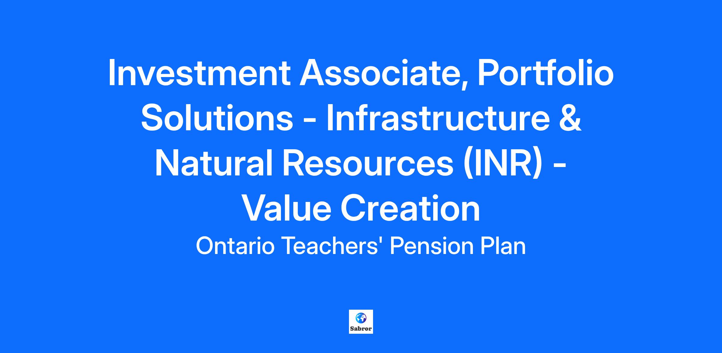 The opportunity Are you curious to learn more about how we create value working with our global portfolio of companies? Do you want to solve real problems by bringing a new point of view? Do you thrive in a fast-paced working environment? If so, join Ontario Teachers’ Portfolio Solutions Group (PSG). We are looking for dedicated self-starters who share our passion for value creation and want to learn how we work with management and asset teams around the world. The VC Team is a highly valued partner to deal teams, management teams, and Ontario Teachers’ global leadership. Value Creation capabilities have recently been centralized across the fund into a newly established group called Portfolio Solutions Group (PSG) to drive greater focus on delivering value creation plans pre- and post-deal during our ownership. This role would be predominantly focused on the Infrastructure and Natural Resources (INR) asset classes but could involve exposure to other asset classes. Our work is project-based and provides exposure to a broad range of sectors including renewable energy, water utilities, and agriculture businesses. If you are an excellent team player who can manage projects in an ambiguous environment and are interested in learning about asset management, then this is the opportunity for you. Who you'll work with You will be part of the Value Creation team (VCT) for INR within PSG, a distinct team within the Investment division at OTPP. The PSG mandate is to work on value creation and value protection initiatives together with our highly-specialized asset teams as well as the management teams of our companies. You will be working in close partnership with the INR team to grow, inflation-linked cash flows over a long-term investment horizon. The overall PSG team consists of over 35 investment professionals with a long track record of working with asset classes to drive returns. What you'll do As an Associate within the VCT (INR) team, you will be working on distinct projects that are meaningful to either an individual company, the INR portfolio or to the PSG functional Centres of Excellence that span across asset classes. In particular, you will: Use your strong relationship management / consulting skills to work with investment professionals on real world problems and have the benefit of seeing your recommendations come to life within our portfolio companies Lead analyses (and potentially projects) on tough questions that drive towards the best outcome for PSG, INR and the Fund which could include initiatives related to growth, operational improvement, talent and governance, for example Identify key value drivers and risks in Infrastructure and Natural Resources companies to help determine priorities for PSG Work in an ambiguous environment where the answer is not always obvious Identify the ‘so what’ and think outside the box Learn about asset management for a diversified, global portfolio Prepare presentations and reports to senior investment professionals Have responsibilities that allow you to gain exposure to both the breadth and depth of our portfolio companies – you will have responsibilities for both key portfolio-wide initiatives, as well as, work on specific portfolio company projects What you'll need Bachelor’s or Master’s degree from a top-tier program 2–5+ years of experience at a leading strategy consulting firm or equivalent Experience and strong interest in investment industry, private equity, value creation, and strategy Excellent analytical and quantitative skills for in-depth analysis Strong written and verbal communication skills Ability to influence teams and stakeholders, challenge the status quo, and drive change Demonstrated ability to work in teams and independently, balancing multiple priorities Intellectual curiosity and adaptability in an ever-changing, ambiguous environment Knowledge of and experience in Infrastructure or Natural Resource companies is an asset Advanced proficiency in Microsoft Office (Excel, PowerPoint, Word) #LI-RM1 #LI-Hybrid What we’re offering Pay-for-performance environment that offers competitive salary and incentive Numerous opportunities for professional growth and development Comprehensive employer paid benefits coverage Retirement income through a defined benefit pension plan The opportunity to invest back into the fund through our Deferred Incentive Program A flexible/hybrid work environment combining in office collaboration and remote working Competitive time off Our Flexible Travel Program gives you the option to work abroad in another region/country for up to a month each year Employee discount programs including Edvantage and Perkopolis At Ontario Teachers', diversity is one of our core strengths. We take pride in ensuring that the people we hire and the culture we create, reflect and embrace diversity of thought, background and experience. Through our Diversity, Equity and Inclusion strategy and our Employee Resource Groups (ERGs), we celebrate diversity and foster inclusion through events for colleagues to connect for professional development, networking & mentoring. We are building an inclusive and equitable workplace where our talent is respected, accepted and empowered to be themselves. To learn more about our commitment to Diversity, Equity and Inclusion, check out Life at Teachers'. How to apply Are you ready to pursue new challenges and take your career to the next level? Apply today! You may be invited to complete a pre-recorded digital interview as part of your application. Accommodations are available upon request (peopleandculture@otpp.com) for candidates with a disability taking part in the recruitment process and once hired. Candidates must be legally entitled to work in the country where this role is located. Ontario Teachers’ may use AI-based tools to assist in screening and assessing applicants for this position. These tools may help us identify candidates whose skills and experience align with O
