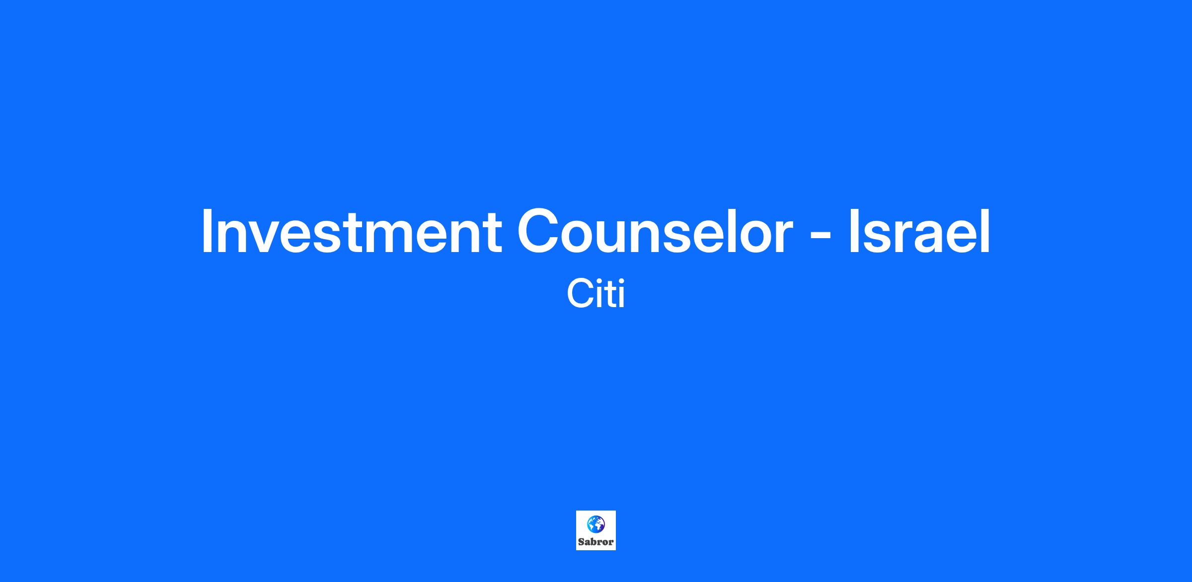 Investment Counselor - Israel