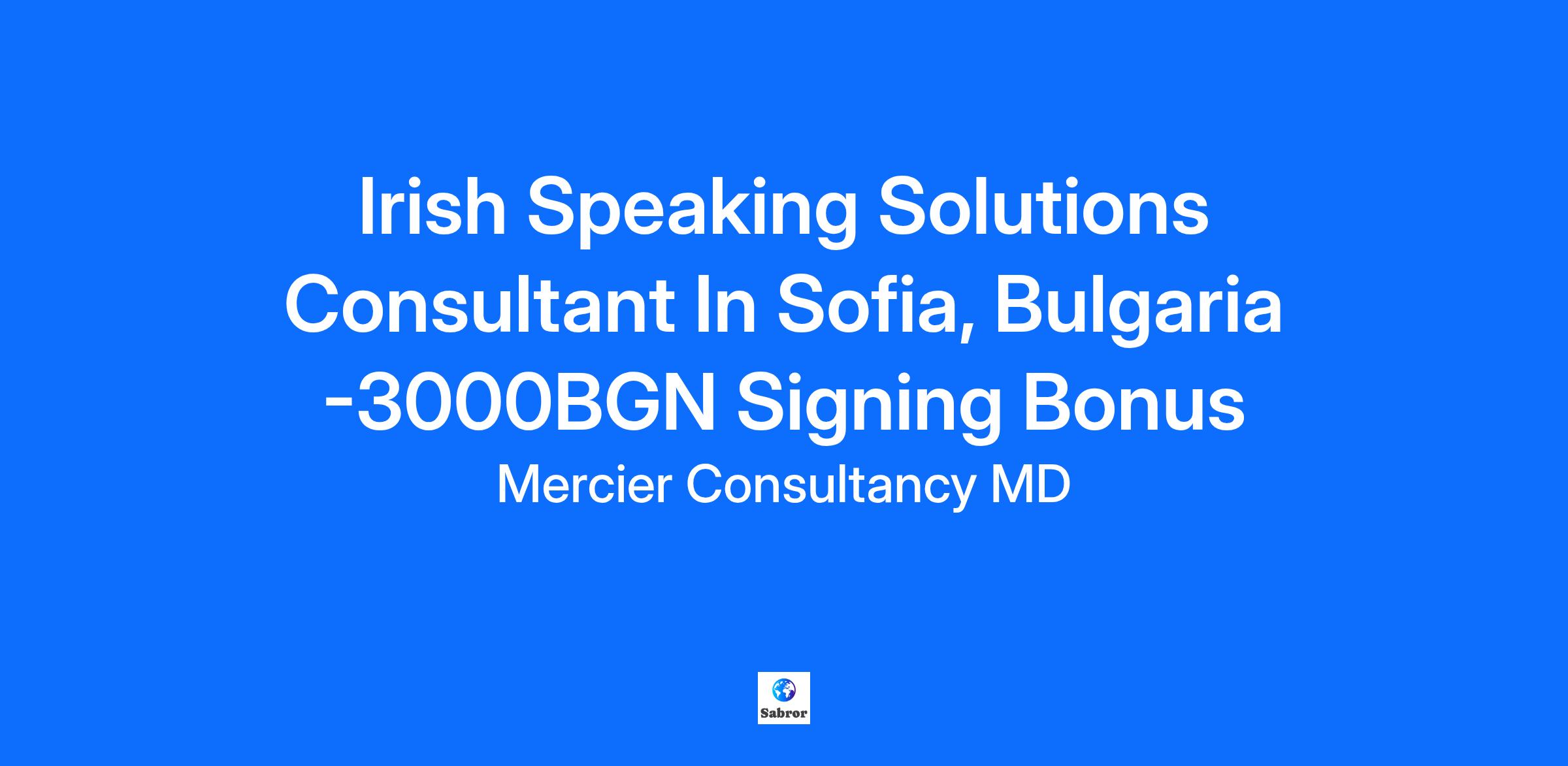 Are you ready to embark on an exciting journey with Mercier Consultancy MD? We’re on the lookout for an enthusiastic Irish Speaking Solutions Consultant to join our amazing team in Sofia, Bulgaria! Not only will you get to work in an inspiring environment, but we’re also offering a 3000 BGN signing bonus to welcome you aboard! In this role, you’ll connect with clients, understand their unique challenges, and provide customized solutions that make a difference. What You’ll Do Engage with clients through meaningful conversations to capture their requirements and understand their business goals. Design and deliver tailored solutions that effectively address client challenges and drive success. Act as a trusted advisor, providing insights and recommendations that exceed client expectations. Work closely with internal teams to ensure smooth implementation and ongoing support of solutions. Conduct interactive training sessions that empower clients to maximize their use of our products. Stay ahead of the game by keeping up with industry trends and new technology developments. Fluency in Irish (spoken and written) is essential; proficiency in English is highly desirable. Experience in solutions consulting, customer service, or a related field is a plus. Strong problem-solving skills with a passion for helping clients succeed. Excellent communication and interpersonal skills to build relationships with clients and colleagues. A tech-savvy mindset with a willingness to learn new tools and platforms quickly. A collaborative spirit and the ability to work both independently and as part of a team. A positive attitude and a genuine desire to deliver exceptional customer experiences. Competitive Salary Monthly Performance Bonus Monthly Accommodation Allowance Fully Paid Relocation Package Fully Paid Training Private Gym And Much More....