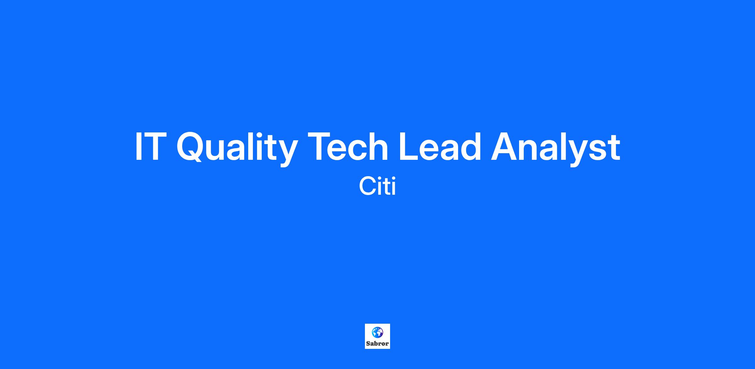 IT Quality Tech Lead Analyst