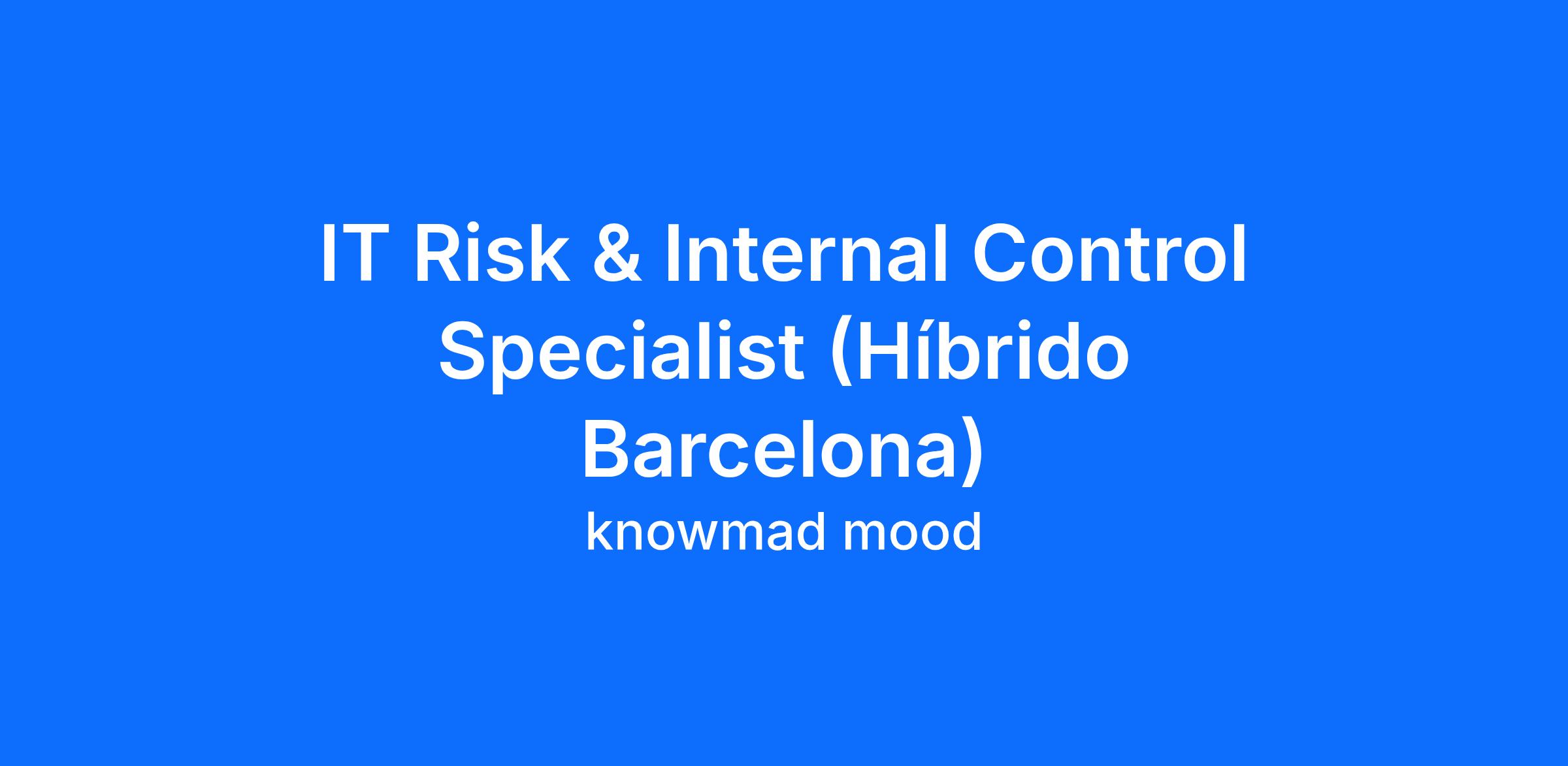 Únete a nuestro equipo como IT Risk & Internal Control Specialist e incorpórate al área de Riesgos y Control Interno de uno de nuestros principales clientes (sector asegurador).