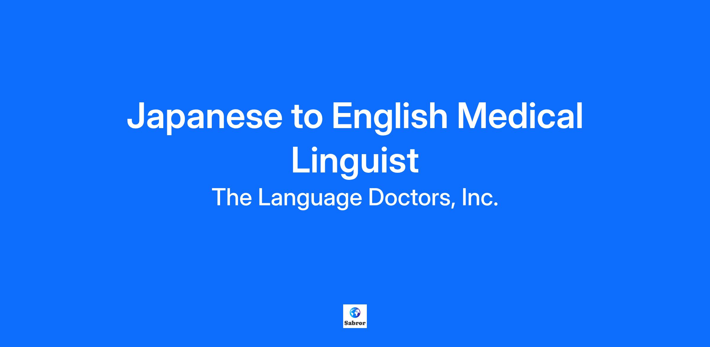 The Language Doctors, Inc., is a linguistic services provider based in Annapolis, MD. We’re currently seeking Japanese into English Medical Translators and Editors to join our growing team. This is a fantastic opportunity for linguists with extensive experience in Health, Medicine, and Life Sciences.