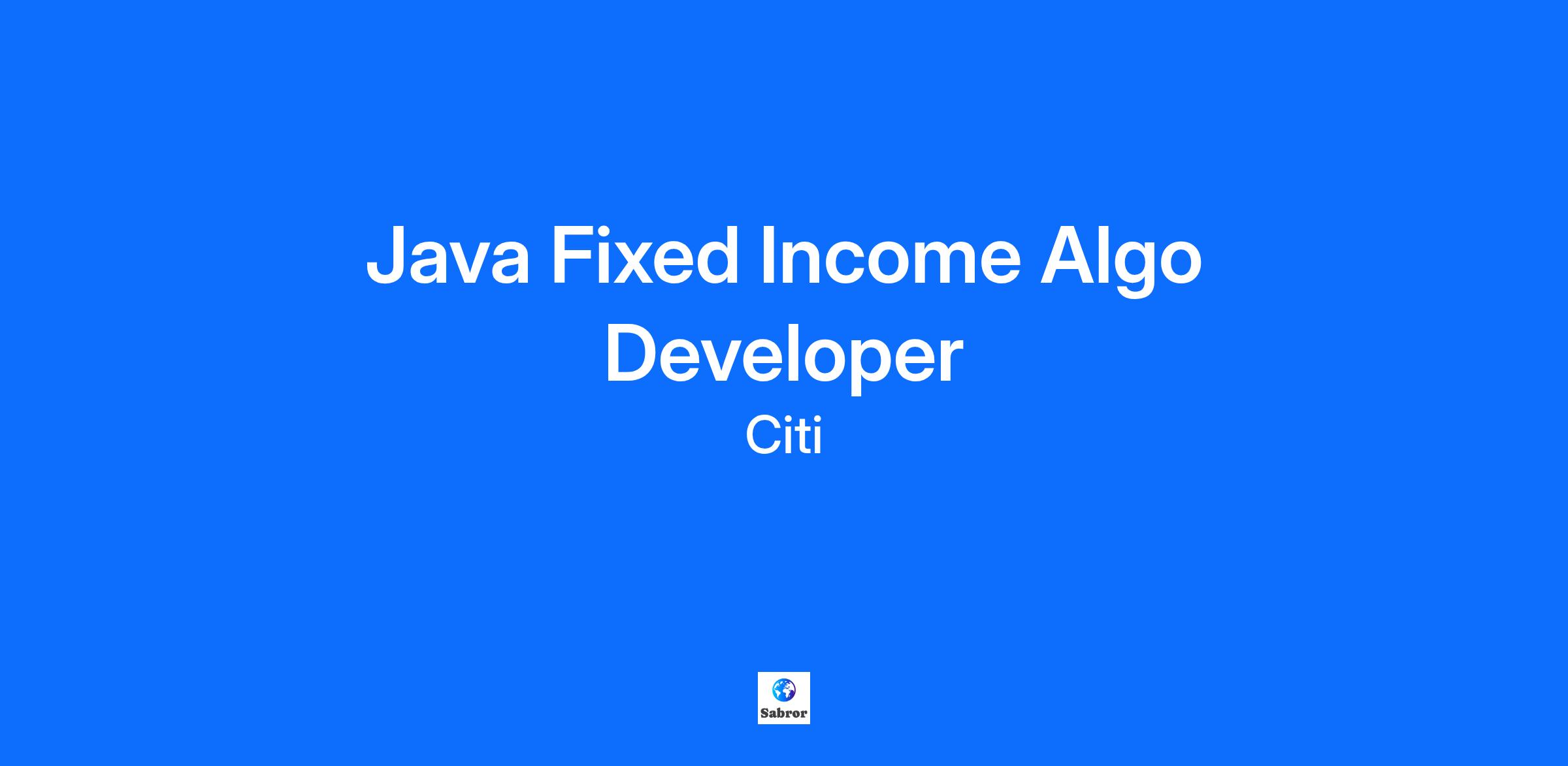 Java Fixed Income Algo Developer