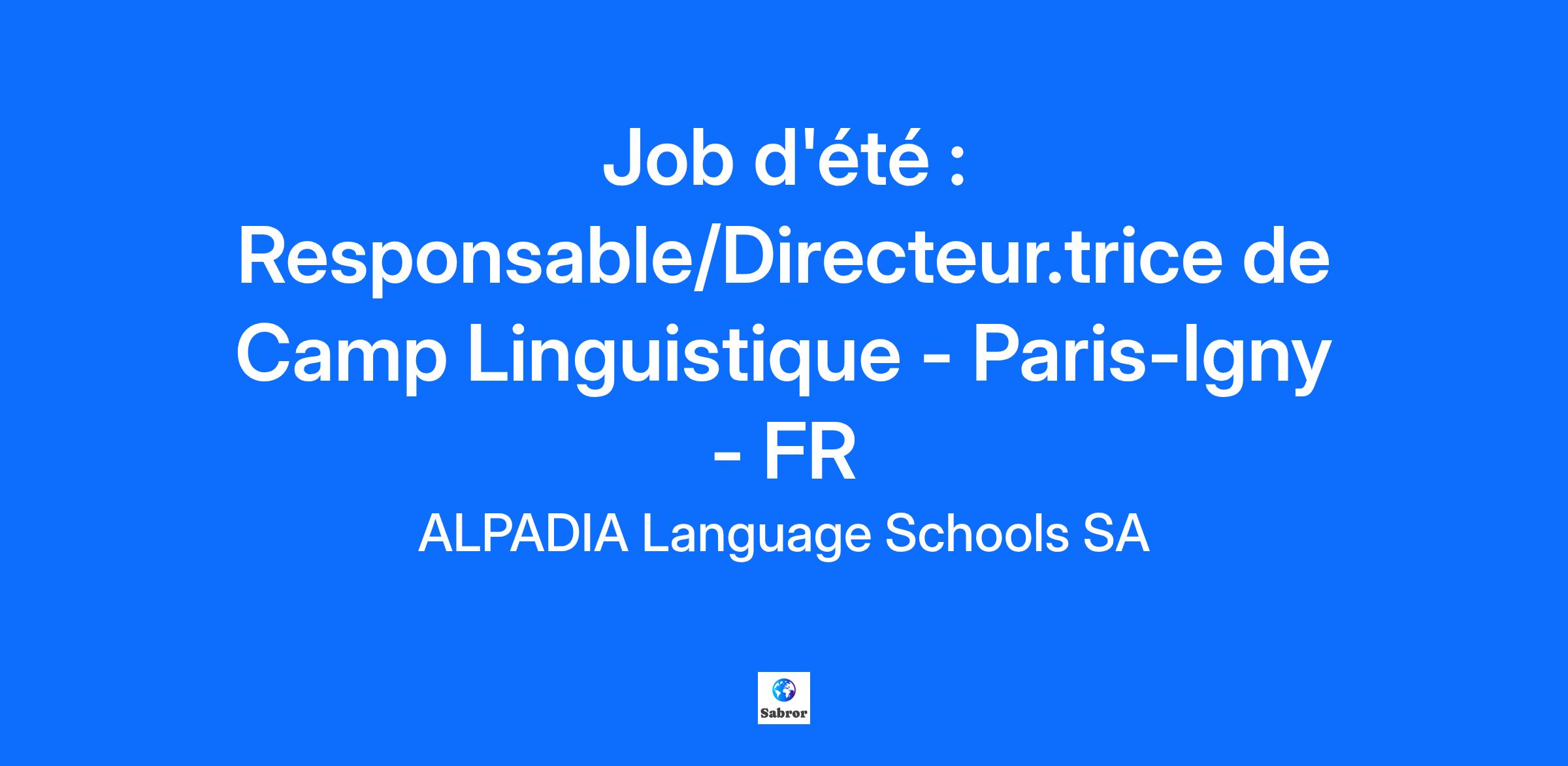 Description de l'entrepriseALPADIA Language Schools, membre du groupe Kaplan International Languages, propose des écoles de langues ouvertes toute l’année à Montreux, Berlin, Fribourg et Lyon, où nous enseignons le français et l’allemand. Nous organisons également des camps d’été en anglais, français et allemand pour enfants et adolescents en Europe et en Amérique du Nord. Chaque destination est soigneusement sélectionnée et chaque programme conçu pour allier sécurité, apprentissage linguistique, loisirs et vacances inoubliables.Créée en 1996 et aujourd’hui plus dynamique que jamais, notre mission est de favoriser l’apprentissage des langues par l’immersion et d’élargir les horizons de nos étudiants pour inspirer leur avenir.Description du posteRejoignez les équipes ALPADIA pour faire de l’été 2026 un été inoubliable !Vous êtes motivé(e), organisé(e) et prêt(e) à inspirer des jeunes venus du monde entier ? Rejoignez nos équipes et vivez une expérience unique au cœur de nos séjours linguistiques !Pour la saison d’été 2026, nous recrutons un/-e Responsable de camp (Camp Manager) pour notre centre de Paris-Igny.Votre mission : Superviser et coordonner le fonctionnement global du centre accueillant jusqu’à 110 étudiants internationauxManager, motiver et accompagner une équipe d’enseignants et d’animateurs pour garantir une expérience de qualitéVeiller à la qualité des prestations pédagogiques et des services proposés par l’équipe ALPADIAAssurer le bon déroulement des activités sportives, culturelles et des excursions, en garantissant sécurité et organisationCommuniquer et collaborer étroitement avec le siège ALPADIA et le service client pour un suivi efficaceGérer les imprévus et prendre des décisions rapides pour maintenir un environnement sûr et positifQualificationsVotre profil :Diplômes et qualifications : BAFD, Master MEEF ou équivalent (obligatoire).Expérience :Expérience confirmée dans la direction ou la coordination de centres de vacances ou structures similaires.Une expérience ou formation dans le domaine de l’enseignement est un atout.Compétences managériales :Capacité à encadrer, motiver et fédérer une équipe d’enseignants et d’animateurs.Excellentes aptitudes en organisation et en gestion opérationnelle.Compétences informatiques :Maîtrise des outils bureautiques (Excel, Word).Aisance avec les applications de gestion, bases de données internes et outils numériques.Capacité à gérer des processus administratifs et opérationnels via ordinateur.Langues :Français : niveau C2.Anglais : bonne maîtrise (écrit et oral).Autres langues : un plus.Qualités personnelles :Sens aigu des responsabilités et esprit d’initiative.Polyvalence, flexibilité et bonne résistance au stress.Autres :Connaissance de la région : un plus.Informations complémentairesNous vous offrons : Une expérience inoubliable dans une ambiance jeune et dynamiqueUn cadre de travail international et stimulantLogement en pension complète inclusL’opportunité de rejoindre ALPADIA, présent dans 4 pays avec 19 centres de cours pour adolescents, et d’enrichir votre CV avec une expérience unique !Dates d’engagement :Du 24 juin 2026 au 9 août 2026Une semaine de formation obligatoire à Lyon précédera la période d’engagement (dates à confirmer).Informations complémentaires: Formation interne : un module en ligne et une réunion d'information en ligne (obligatoires) auront lieu courant juinFormation aux gestes qui sauvent : Une session en présentiel sera organisée avant le début du camp et proposée à tous les candidats retenus. La participation est recommandée mais reste facultative.Poste logé : Logement organisé par Alpadia et obligatoire.Casier judiciaire : Une copie du casier judiciaire 2026 sera obligatoire en cas d'embaucheComment postuler : Vous appréciez le contact avec les adolescents et le travail en équipe ? Vous êtes prêt/-e à vous investir dans une nouvelle expérience enrichissante ?Envoyez-nous votre candidature (CV et lettre de motivation) via Smartrecruiters.Seuls les candidats retenus pour un entretien seront contactés.
