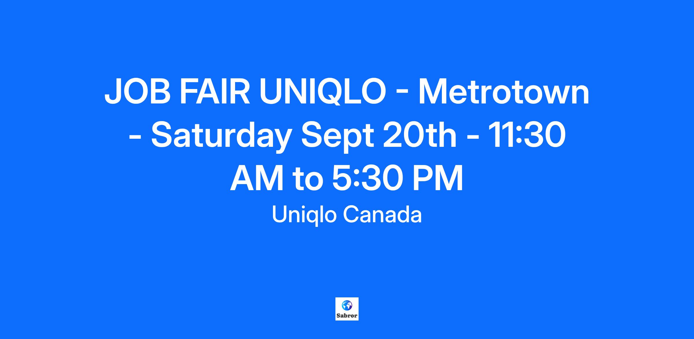 UNIQLO is having a Job Fair on Saturday Sept 20th from 11:30 AM to 5:30 PM at OG Floor COMMUNITY ROOM Area at METROTOWN MALL. Hiring for multiple stores: Metrotown, Guildford Town Centre, Richmond Centre, and Coquitlam Centre. To participate, please register via this link: https://forms.office.com/r/K0tKsbjmdJ [https://forms.office.com/r/K0tKsbjmdJ] Please bring hard copy of Resume to your interview time. We will not be accepting walk-ins, you have to register if you would like to participate. Only registered candidates will receive the exact location information. WHY JOIN UNIQLO AS A SALES ASSOCIATE? * Competitive compensation starting at $19/hour * Guaranteed hours for FT * Minimum 24 hours for PT * Performance-based increases and opportunities for promotion every 3 months * Internal career advancement - performance-based for committed individuals who consistently generate results: Sales Associates have the opportunity to grow with Uniqlo and progress into Assistant Store Manager & Store Manager positions * Employee discount at all Uniqlo Canada retail locations for PT and FT employees from first day of employment * Paid training * Dynamic culture & fast-paced environment - enriching and challenging opportunities to grow personally and professionally! * Comprehensive benefits package (medical & dental) after 3 months for FT employees PLEASE NOTE THE FOLLOWING PRIOR TO SCHEDULING : 1. Please ensure that you have attached a copy of your Resume with your RSVP application. POSITION OVERVIEW: * Position: Sales Associate * Immediate Start Date * Store location: UNIQLO Multiple stores: Metrotown, Guildford Town Centre, Richmond Centre, and Coquitlam Centre. * Reports to: Store Manager * Position Status: Full Time - minimum 40 hours per week * Rate of Pay: $19/hour * Must have availability from Monday - Sunday + ability to work during holiday season