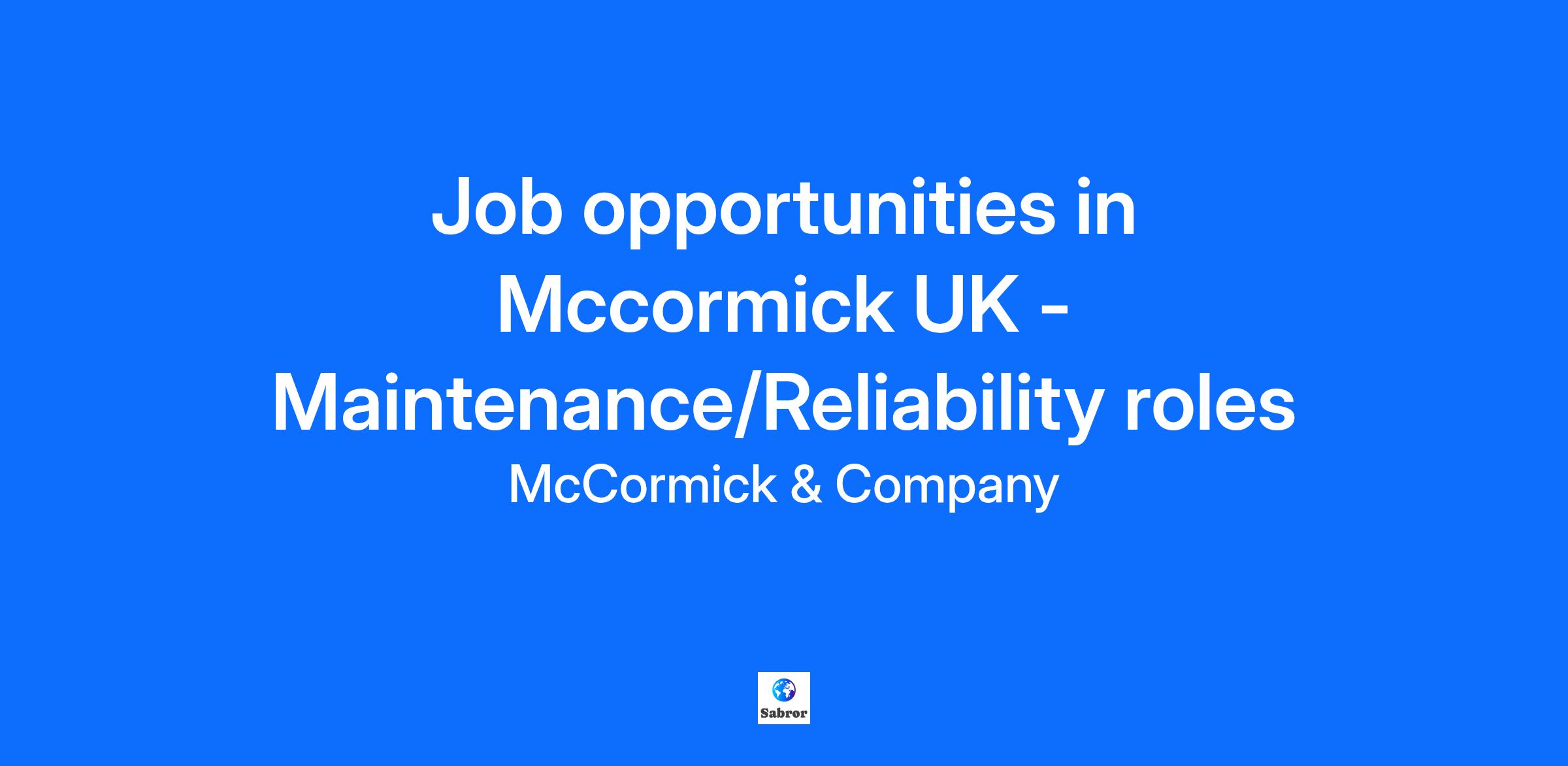 Job opportunities in McCormick UK - Maintenance/Reliability roles Are you passionate about maintenance/reliability and looking for an exciting career opportunity? McCormick, a global leader in flavor, is always on the lookout for talented individuals to join one of our UK locations: Peterborough (Cambridgeshire) or Haddenham (Oxfordshire). If you have a passion for ensuring the smooth operation of equipment and systems, and possess the skills and experience in maintenance and/or reliability, please submit your CV. We’ll keep your information on file and reach out when a suitable position becomes available. #LI-DNI #LI-DNI