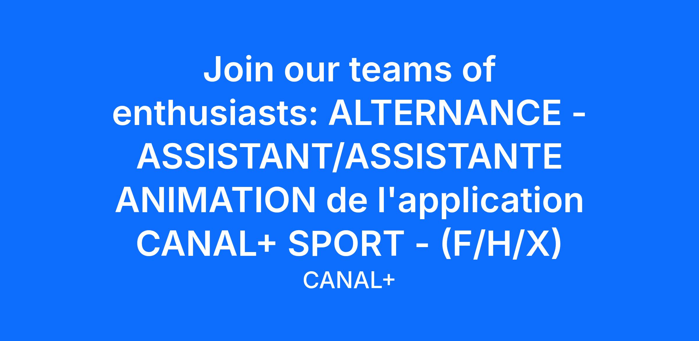 L'assistant(e) Chargé(e) d'Animation Sport a pour mission d'assurer l'attractivité de la thématique Sport sur l'application CANAL+ pour développer l'usage, recruter de nouveaux abonnés et développer l'ARPU. A ce titre, elle/il aura pour mission d'assister le chargé d'animation Sport de l’application et CANAL+ A LA DEMANDE dans les missions suivantes :