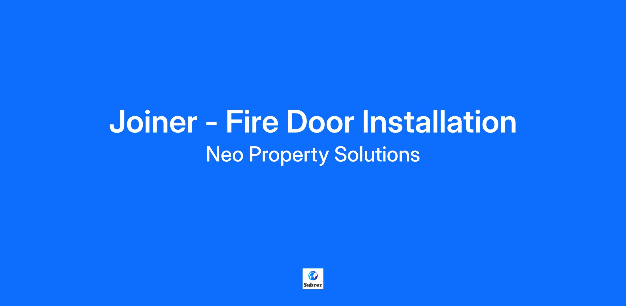 Joiners - Fire Doors (Installation & Remedial Works) January starts Location - North (Yorkshire + travel as required) Salary - Basic to £38600 + travel and overtime (expected 42/45k) + benefits At NEO Property Solutions we specialise in the installation and maintenance of Fire Doors – both timber and composite. Our work ranges from Schools, Hospitals, Sports Arena, Offices, Apartments, Social Housing, Retail Outlets to Care Homes and more. Each day is a little different, you might be doing some remedial work on a double door set and bringing it back to regulations, installing some new intermittent strips, upgrading hinges or installing Iron work. The next a could be complete rip out of an old door and surround and installing a complete new assembled door set. What we need from you: * Reliability – first and foremost we need continuity and our joiners to turn up on site on time ready to roll. * A general capability to use technology - we record all works done on a mobile device, you’ll need to be comfortable using it (full training will be provided) * Minimum NVQ level 2 Carpentry (Or other joinery equivalent) * Full UK Driving licence * Able to pass a DBS check (remember you’re working on occupied property – so all joiners are vetted) * A positive attitude – Not everyday goes to plan in this crazy world, so the ability to look past the challenge and remain focused is a real benefit * Experience of repairing and installing fire door sets (highly advantageous) Working conditions: * Working hours – Mon to Thur 08:00 to 16:30 (15:30 on Fridays) * Generally travel upto 1.5 hours of your home (We try to keep you as local as possible) What you get: * Ongoing support from your manager * Workwear * Basic to £38600 + travel and overtime (expected 42/45k) * Paid travel time after 45 mins (each way) * Company Van (Saving of £5000+ per annum on average) * MediCash Healthcare coverage * Vivup discounts on Gym memberships, Weekly shopping, Electrical goods, Holidays, Insurance, Days out, Cinema tickets and more * 29 Days holiday including bank holidays * To be treated fairly Neo Property Solutions, part of the PTSG Group, deliver specialist passive fire protection services, including Fire Compartmentation Surveys, Fire Door Surveys, Fire Stopping and Fire Compartmentation Works, executed as part of a rolling programme of annual inspection and/or rectification works required across multi-occupancy housing, buildings of public amenity, healthcare facilities, education establishments, student accommodation blocks and security sensitive office buildings and workplaces. Equal Opportunities in Practice We are committed to equality of opportunity for all staff and applications from individuals are encouraged regardless of age, disability, sex, gender reassignment, sexual orientation, pregnancy and maternity, race, religion or belief and marriage and civil partnerships. Ind1