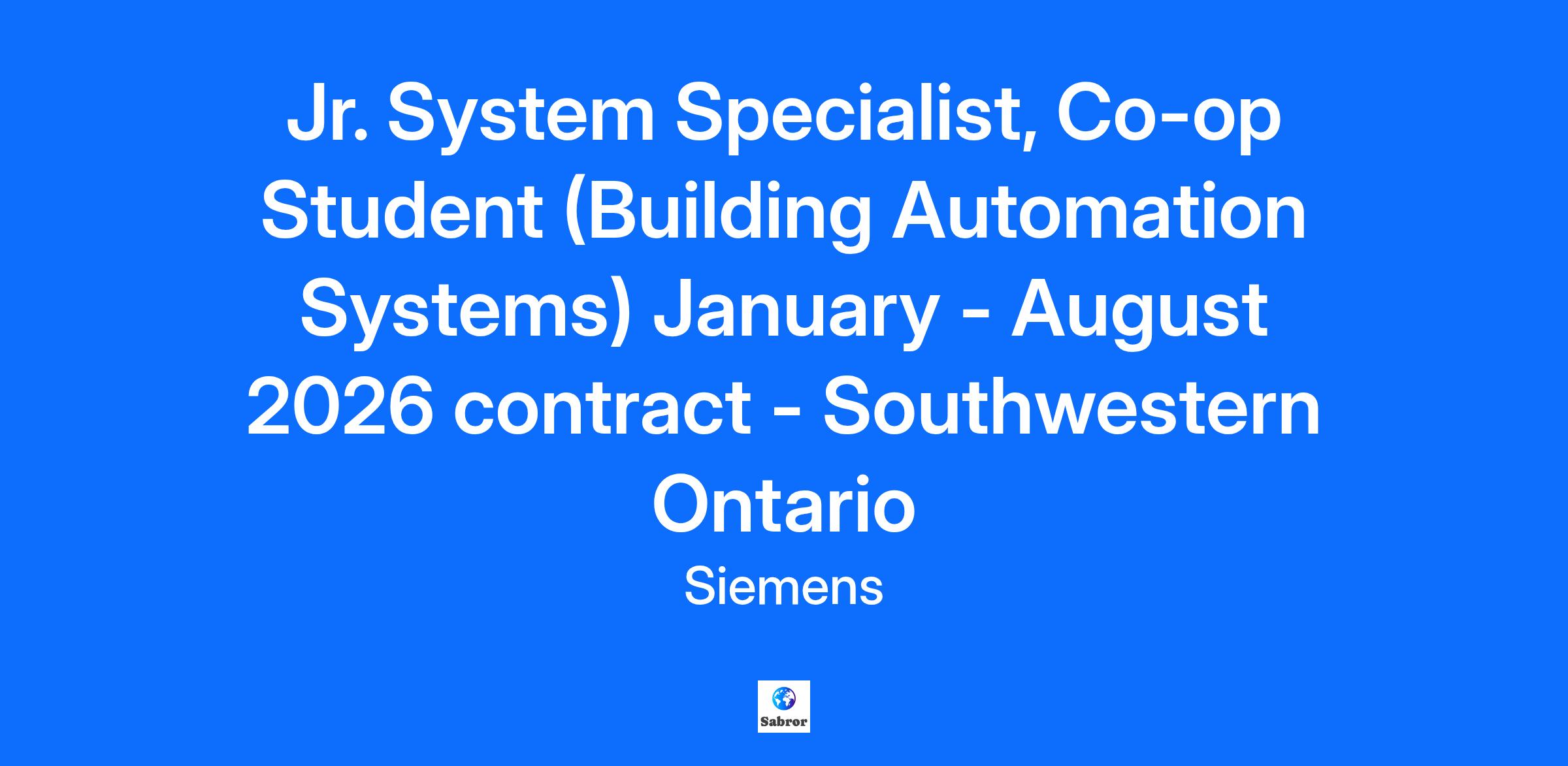 Change the future with us. We are passionate about innovations that mean real progress. We are excited about technologies that still need to be developed. What about you? Do you want to use your curiosity, passion, and creativity to make the lives of millions of people easier and better? Join us as a graduate –either by beginning your career with us or through a co-op placement. Whichever path you take, we’re looking forward to seeing your perspective. Why you’ll love working for Siemens! Freedom and a healthy work- life balance– Embrace our flexible work environment with flex hours, telecommuting and digital workspaces. Solve the world’s most significant problems – Be part of exciting and innovative projects. Engaging, challenging, and fast evolving, cutting edge technological environment. Opportunities to advance your career and mentorship programs on a local and global scale. Competitive total rewards package. Profit sharing available. Rewarding vacation entitlement with the opportunity to buy and sell your vacation depending on your lifestyle. Contribute to our social responsibility initiatives focused on access to education, access to technology and sustaining communities and make a positive impact on the community. Participate in our celebrations, social events and offsite business events. Opportunities to contribute your innovative ideas and get paid for them! Employee perks and discounts. Diversity and inclusivity focused. Siemens is proud to be an eight-time award winner of Canada’s Top 100 Employers, Canada’s Greenest Employers 2025 and Canada’s Top Employers for Young People 2025. What will you do? You will have the opportunity to work alongside, and job shadow a Senior System Specialist Technician when performing the following: Performs wiring checkout, system start-ups programming, utilizing commissioning tools provided Graphics creation database management Works towards the project schedule and work package received from the supervisor and or project manager and maintains regular communication on the status and execution of the projects assigned Present a professional image of Siemens when communicating with customers at all levels; establish a good working relationship with all customers Ensure that all site files/shop drawings/documentation are kept up to date for each contract Ensure all work adheres to the company safety rules/statutory regulations/customers Additional responsibilities will include material tracking, delivering, project documentation support What will you need to succeed? Currently enrolled or recently graduated from a college, university or technical school in electrical, mechanical, control engineering program or a related field. Willingness to attain practical skills and knowledge of building systems and relevant standards Self-motivated and calm under pressure Able to communicate effectively and work though complex problems IT literate and possess proficiency in Windows applications, including MS Office suite Valid driver’s license in good standing is essential Communication Protocols: BACnet, Modbus, TCP/IP, MSTP is an asset Assets: Knowledge of building mechanical systems; training and certification in a related trade; understanding of the Building Code as it pertains to automation; specific technical knowledge of Siemens building automation systems. About us. We share our ideas and champion the people behind them. Siemens Canada is a leading technology company focused on industry, infrastructure, mobility and healthcare. The company’s purpose to is to create technology with purpose, transforming the everyday, for everyone, since 1912. By combining the real and the digital worlds, Siemens empowers its customers to accelerate their digital and sustainability transformations, making factories more efficient, cities more liveable, and transportation more sustainable. Siemens also owns a majority stake in the publicly listed company Siemens Healthineers, a leading global medical technology provider pioneering breakthroughs in healthcare. For everyone. Everywhere. Sustainably. In fiscal 2024, which ended September 30, 2024, Siemens Canada had revenues of approx. $2.2 billion CAD. The company has approximately 4,400 employees from coast-to-coast and 37 office and production facilities across Canada. To learn more about Siemens Canada, visit our website at www.siemens.ca While we appreciate all applications we receive, we advise that only candidates under consideration will be contacted.
