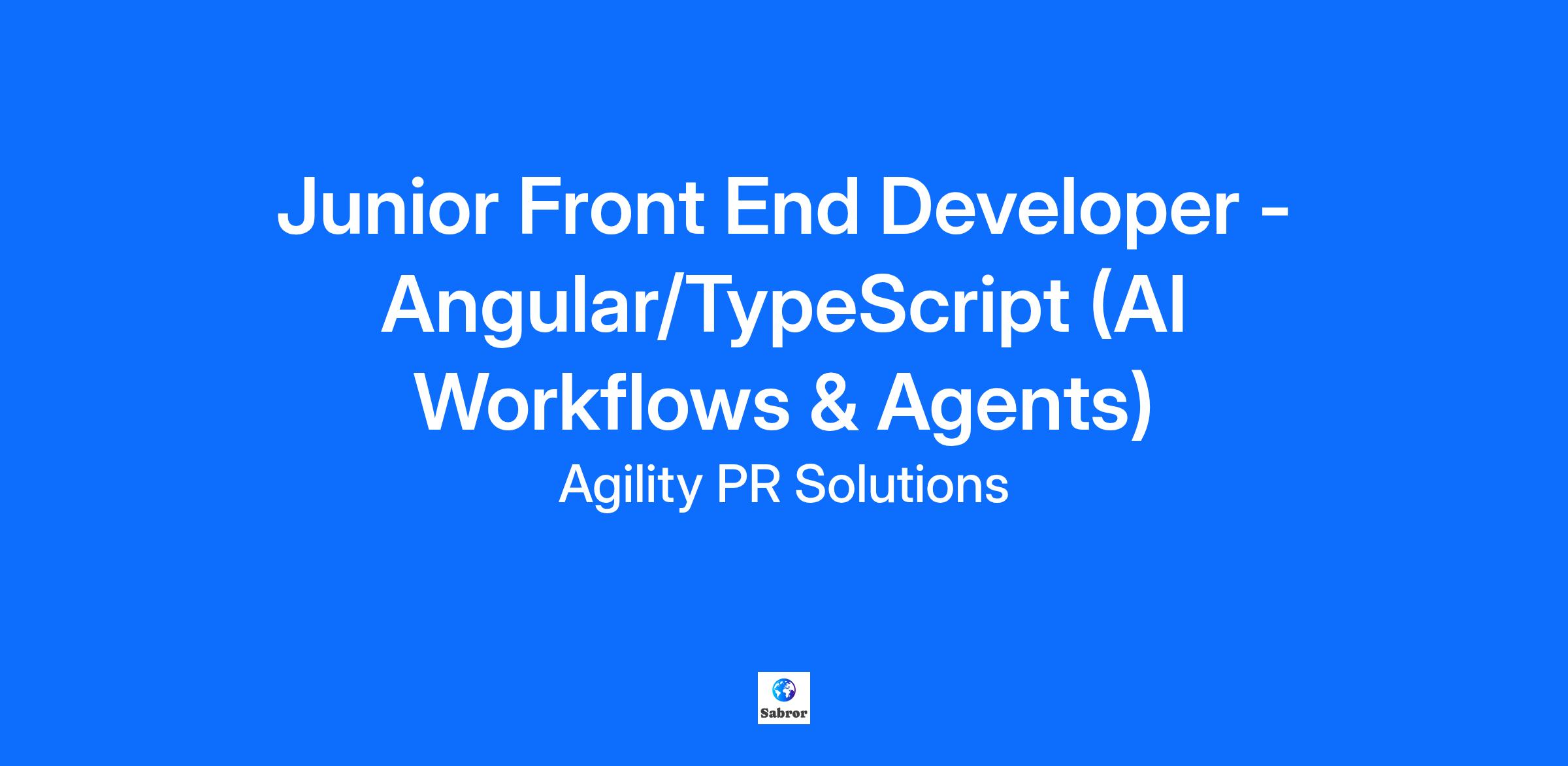 Junior Front End Developer - Angular/TypeScript (AI Workflows & Agents)