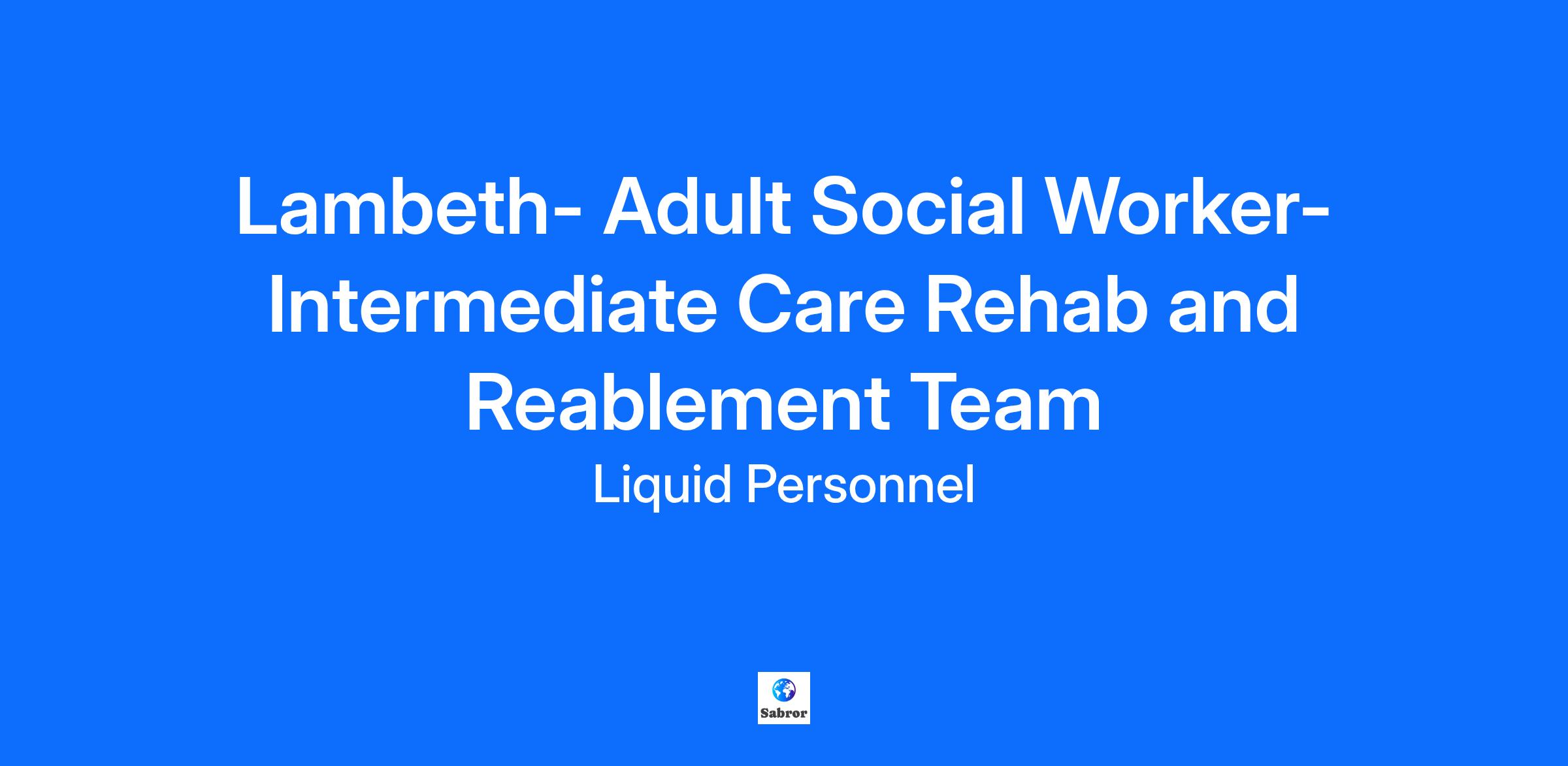 Job Title: Lambeth - Adult Social Worker - Intermediate Care Rehab and Reablement Team Location: Lambeth Pay Rate: £32/hour Liquid Personnel is currently recruiting for a Social Worker to join an Adults Social Worker- Intermediate Care Rehab and Reablement Team based in Lambeth. What will your responsibilities be? You will be integral in providing vital urgent response and rehabilitation services to individuals in the community, ensuring a seamless transition from hospital care and preventing unnecessary admissions back to hospital. The role primarily involves working within the Rehabilitation & Reablement service. Benefits for you: Supportive manager and team Hybrid working Qualifications and Experience: To be successful in this role you must have Social Work England registration, be eligible to work in the UK, hold a qualification in Social Work at degree level, and have post-qualified experience. Why Liquid Personnel? • New ‘Faster Pay’ service getting you paid more quickly • Twice weekly payroll • Free DBS and compliance service • Access to exclusive roles that aren’t available from other agencies • Free access to Liquid’s exclusive social work training and CPD portal • Your own dedicated consultant with extensive social work knowledge • Access to a wide selection of social work positions across the UK • “Refer a Friend” bonus – get £500 for each social worker you refer who we successfully place* • “Find your own job” bonus – get £250 for bringing your own position to us * Reasonable Adjustments: If you consider yourself to have a disability or require any reasonable adjustment during the recruitment process or within the workplace, please highlight this at the earliest opportunity by contacting our team. With this information, we will provide appropriate support to you throughout the process and into your work placement. We are unable to support or accept applications from candidates who are residents within the Red or Amber list of the Code of practice for the international recruitment of health and social care personnel in England, based on the World Health Organisation (WHO) Workforce Support and Safeguard List. BH -188853 GH - 29545