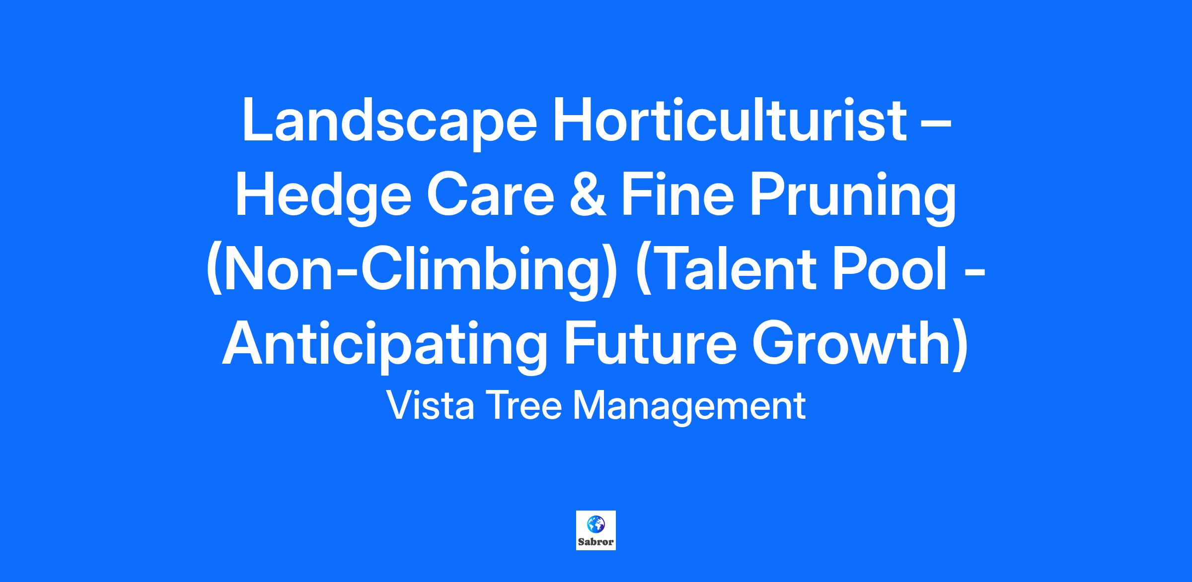 Landscape Horticulturist – Hedge Care & Fine Pruning (Non-Climbing) (Talent Pool - Anticipating Future Growth)