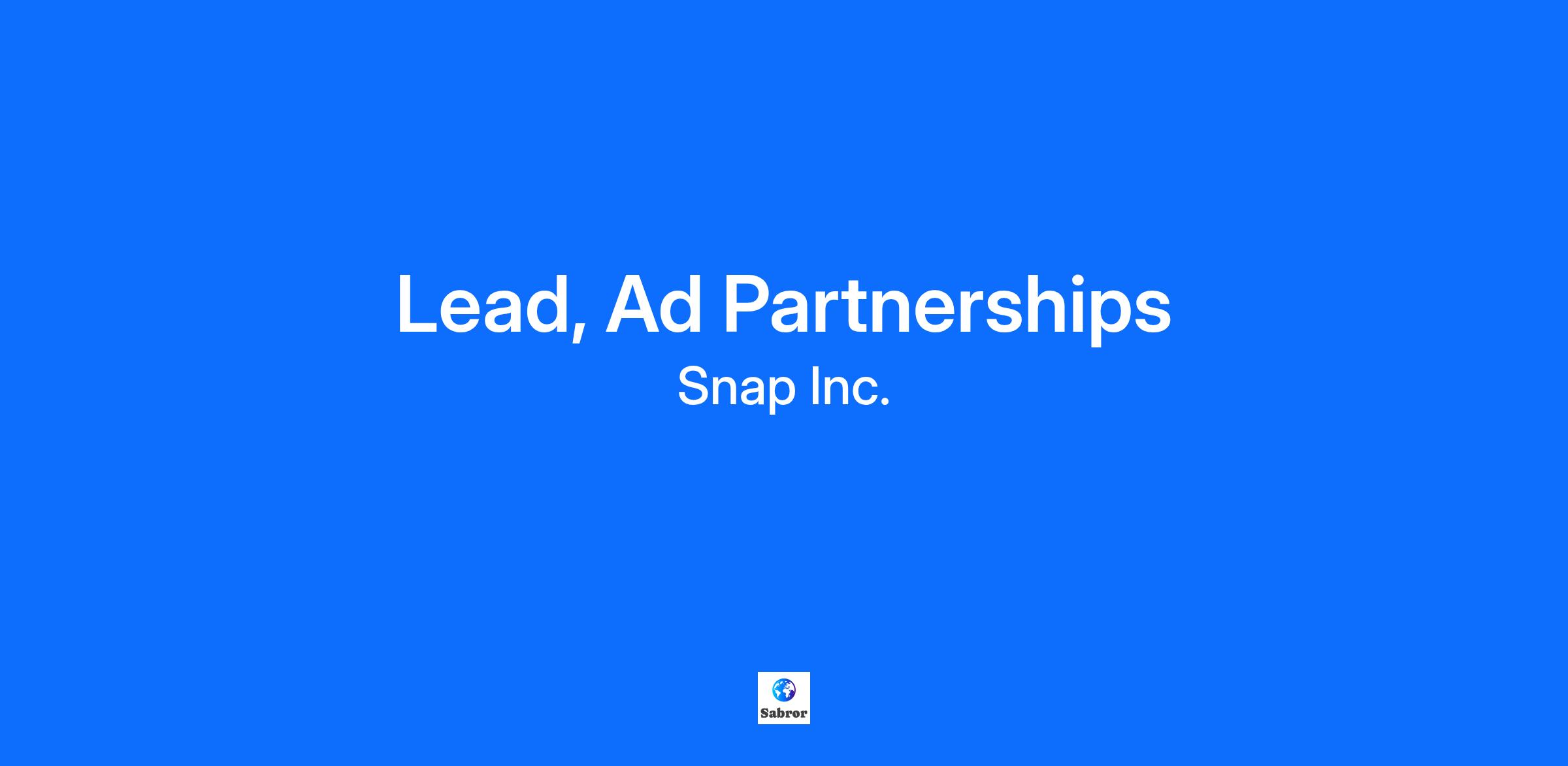 Snap Inc is a technology company. We believe the camera presents the greatest opportunity to improve the way people live and communicate. Snap contributes to human progress by empowering people to express themselves, live in the moment, learn about the world, and have fun together. The Company’s three core products are Snapchat, a visual messaging app that enhances your relationships with friends, family, and the world; Lens Studio, an augmented reality platform that powers AR across Snapchat and other services; and its AR glasses, Spectacles. We’re looking for a Lead, Ad Partnerships to join Team Snapchat! The Ad Partnerships Group is responsible for negotiating and integrating product partnerships that drive accelerated growth to Snap’s Advertising business. Working from our London office, you will own and manage a selection of Snapchat’s ad partners across Campaign Management platforms. You will be working cross-functionally with key stakeholders across our Product, Engineering and Sales teams, to integrate Snap into these platforms and taking feedback from partners' business/product leads and their customers to drive adoption and growth of Snap’s monetisation related products. What you’ll do: Understand Snap’s monetisation-related products and underlying implementations Develop and execute strategic joint business plans for key partners Manage the core operations of these partners from initial outreach into integration and long term partner management, serving as the day-to-day primary point of contact for key partners to drive mutually agreed upon KPI’s Work closely with Product and Solutions Engineering teams to scope new product integrations across Snapchat’s Ads API, document requirements, and ongoing feature improvements Support Go-To-Market strategies, co-marketing and commercial activations with partners inclusive of developing Snap-specific partner materials and new business activation incentive programs Resolve and triage partner challenges quickly Track and analyse key metrics that measure partner success and value Serve as the “voice of the partner” within Snap, disseminating relevant information to internal stakeholders shareholders as needed Knowledge, Skills & Abilities: A personable attitude, who can successfully work cross-functionally with various stakeholder groups within Snap and across partner organisations Experience in negotiating incentive programs and agreements with partners Ability to quickly build rapport and credibility among internal and external stakeholders Excellent communication skills both written and verbal Ability to initiate and drive projects to completion with minimal guidance A proven track record of managing revenue pipelines and delivering against revenue goals Exceptional analytical skills with the ability to communicate results clearly and effectively Minimum Qualifications: Minimum of 5+ years of experience in digital advertising, partnership management, or business development, preferably in the technology or media industries Demonstrated experience working with platforms that drive low funnel campaigns with a focus on eCommerce and Dynamic Product Ads Proven ability in complex third-party integrations, especially in the sectors mentioned If you have a disability or special need that requires accommodation, please don’t be shy and provide us some information. "Default Together" Policy at Snap: At Snap Inc. we believe that being together in person helps us build our culture faster, reinforce our values, and serve our community, customers and partners better through dynamic collaboration. To reflect this, we practice a “default together” approach and expect our team members to work in an office 4+ days per week. At Snap, we believe that having a team of diverse backgrounds and voices working together will enable us to create innovative products that improve the way people live and communicate. Snap is proud to be an equal opportunity employer, and committed to providing employment opportunities regardless of race, religious creed, color, national origin, ancestry, physical disability, mental disability, medical condition, genetic information, marital status, sex, gender, gender identity, gender expression, pregnancy, childbirth and breastfeeding, age, sexual orientation, military or veteran status, or any other protected classification, in accordance with applicable federal, state, and local laws. EOE, including disability/vets. Our Benefits: Snap Inc. is its own community, so we’ve got your back! We do our best to make sure you and your loved ones have everything you need to be happy and healthy, on your own terms. Our benefits are built around your needs and include paid parental leave, comprehensive medical coverage, emotional and mental health support programs, and compensation packages that let you share in Snap’s long-term success! A Decade of Snap: Learn about our origin story, values, mission, culture of innovation, and more. CitizenSnap: In our third annual CitizenSnap Report, we demonstrate progress towards our environmental, social, and governance (ESG) goals, and we lay out our plans looking forward. The DEI Innovation Summit: Watch highlights from the 2nd annual DEI Innovation Summit, which brings together thought leaders and DEI experts for a day of courageous conversations to enable bold action. Snap News: Stay up to date on the latest and greatest product and innovation news at Snap Applicant and Candidate Privacy Policy
