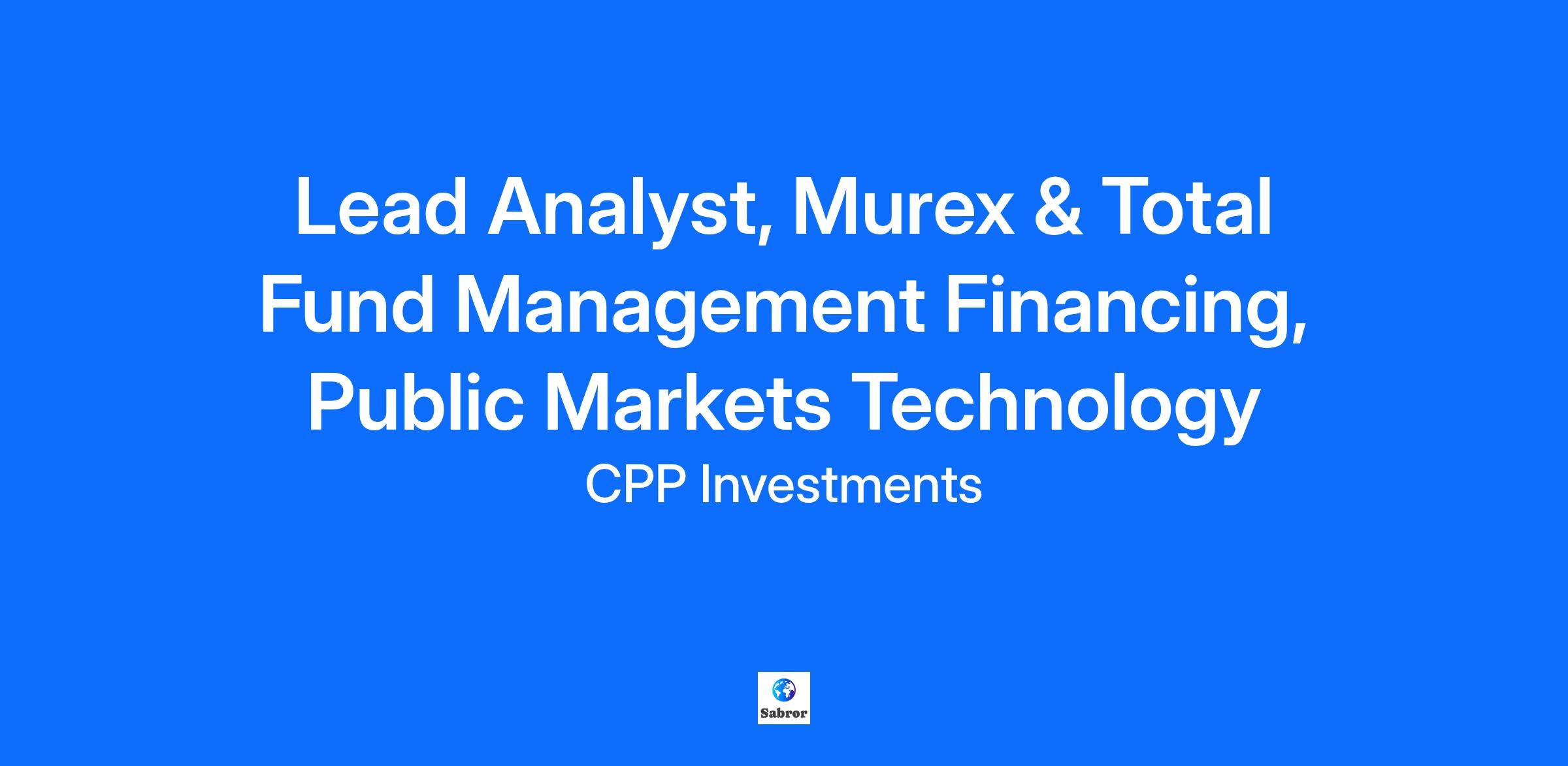 Company Description Make an impact at a global and dynamic investment organization When you join CPP Investments, you are joining one of the world’s most admired and respected institutional investors. As a professional investment management organization, CPP Investments invests the funds of the Canada Pension Plan (CPP) to help ensure its financial sustainability for generations of working and retired Canadians. CPP Investments invests across regions and asset classes to build a globally diversified portfolio. It holds assets in public equity, private equity, real estate, infrastructure, and fixed income, and the CPP Fund is projected to reach $3.6 trillion in assets by 2050. The organization is headquartered in Toronto with offices in Hong Kong, London, Mumbai, New York City, San Francisco, São Paulo, and Sydney. CPP Investments successfully attracts, selects, and retains talented individuals from top-tier institutions worldwide. Join our team for access to: Stimulating work in a fast-paced and intellectually challenging environment Accelerated exposure and responsibility Global career development opportunities Diverse and inspiring colleagues and approachable leaders A hybrid-flexible work environment with an emphasis on in-person collaboration A culture rooted in principles of integrity, partnership, and high performance An organization with an important social purpose that positively impacts lives If you have a passion for performance, value a collegial and collaborative culture, and approach work with the highest integrity, invest your career here. Job Description As a Lead Analyst, you will be pivotal in driving innovative technology solutions that enhance the company’s trading and risk management capabilities. Leveraging your deep expertise in Murex and financial products, you will mentor and guide other team members while collaborating with business and technology stakeholders to ensure alignment with strategic objectives. This role requires a blend of hands-on delivery, technical depth, problem-solving skills, and strong communication to ensure that technology solutions drive measurable business impact. Team Summary We are a business-facing technology team that partners with back, middle and front office, risk, operations, and infrastructure groups to deliver end-to-end solutions for position lifecycle. Our work spans project delivery, production support, and process automation. Joining us means being at the heart of trading and risk technology, working in a fast-paced environment where you will have direct impact on business outcomes while continuously developing your technical expertise. Accountabilities: Act as a subject matter expert on Murex, with hands-on involvement in trade lifecycle management, booking, processing, and valuation. Lead and actively participate in project delivery, from requirements gathering and design through configuration, testing, and deployment. Provide hands-on functional production support for Murex, investigating and resolving issues in partnership with business users across asset classes. Conduct deep data analysis and dependency checks to identify root causes, propose fixes, and improve system stability. Partner with business stakeholders to understand requirements and priorities, translating them into practical technology solutions. Proactively identify opportunities for automation and process optimization, driving initiatives to reduce manual effort and improve efficiency. Mentor and support the rest of the team by sharing knowledge, reviewing work, and encouraging best practices. Ensure all deliverables consider long-term maintainability, scalability, and operational resilience. Communicate effectively with technical and non-technical audiences, adapting your style to different stakeholders. Qualifications Undergraduate degree in Information Technology, Computer Science, Finance, or a related field. 5+ years of hands-on experience with and strong understanding of the Murex trade lifecycle, including booking, processing, and valuation across multiple asset classes. Practical experience leading testing activities and ensuring deliverables meet business requirements. Ability to perform complex data analysis and work through dependencies Experience with Agile Scrum methodologies and tools such as JIRA, Confluence, and ServiceNow. Strong communication and relationship-building skills with both business and technical teams. Ability to balance strategic thinking with hands-on delivery and problem-solving. Additional Information Visit our LinkedIn Career Page or Follow us on LinkedIn. #LI-AM1 #LI-Onsite At CPP Investments, we are committed to diversity and equitable access to employment opportunities based on ability. We thank all applicants for their interest but will only contact candidates selected to advance in the hiring process. Our Commitment to Inclusion and Diversity: In addition to being dedicated to building a workforce that reflects diverse talent, we are committed to fostering an inclusive and accessible experience. If you require an accommodation for any part of the recruitment process (including alternate formats of materials, accessible meeting rooms, etc.), please let us know and we will work with you to meet your needs. Disclaimer: CPP Investments does not accept resumes from employment placement agencies, head-hunters or recruitment suppliers that are not in a formal contractual arrangement with us. Our recruitment supplier arrangements are restricted to specific hiring needs and do not include this or other web-site job postings. Any resume or other information received from a supplier not approved by CPP Investments to provide resumes to this posting or web-site will be considered unsolicited and will not be considered. CPP Investments will not pay any referral, placement or other fee for the supply of such unsolicited resumes or information.