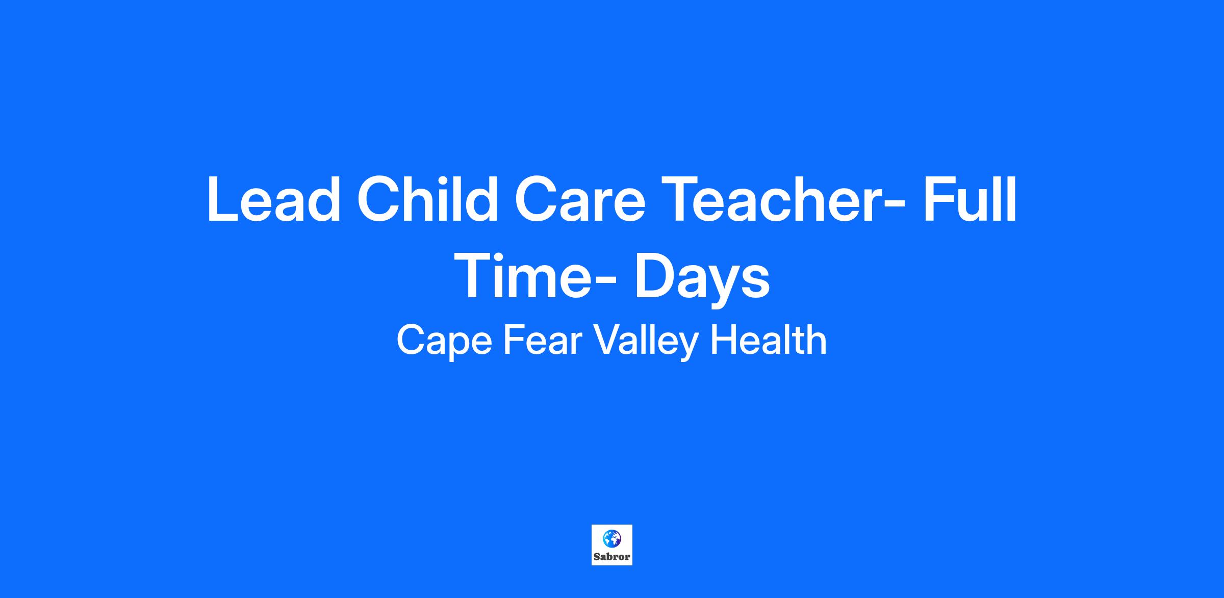 $7,500 Sign-On Bonus! Facility Cape Fear Valley Medical Center Location Fayetteville, North Carolina Department Child Care Services Job Family Professional Work Shift Days (United States of America) Summary Demonstrates positive teaching practices, maintain professionalism, leadership skills, in an effective learning and safe environment Major Job Functions The following is a summary of the major essential functions of this job. The incumbent may perform other duties, both major and minor, that are not mentioned below. In addition, specific functions may change from time to time: Maintains a positive parent-teacher relationship Interacts appropriately with children Maintains Learning Centers Maintains a warm, inviting child friendly classroom environment Plans and implements Educational programs and daily activities Establishes a weekly schedule and lesson plan Promotes each child's social, emotional, intellectual and physical development Provides a clean, safe and healthy work environment Maintains accurate records Documents children's progress and completes all State required documents Provides instruction for Teachers Manages children's behavior Comply with the provisions of the Child Maltreatment Reporting Act by bringing any suspected cases of child maltreatment to Director or Co-Director for possible reporting to the designated reporting agency Other duties as assigned Minimum Qualifications The following qualifications, or equivalents, are the minimum requirements necessary to perform the essential functions of this job: Education and Formal Training: Associateās degree in Early Childhood Education or related field required CPR and First Aid certifications required Infant Toddler Safe Sleep (ITS-SIDS) certification required Work Experience: 1 year of responsible classroom experience in a professional large Child Care Center required Knowledge, Skills, and Abilities Required: Knowledge of physical, intellectual, emotional, and social characteristics of children ages birth-five years old and up to 12 years old for Weekend Care Knowledge of State Child Care regulations Physical Requirements: Work involves a variety of activities to include walking, standing and lifting of children and various objects Ability to stand for 30 minutes Ability to communicate clearly, effectively, and age appropriately Required Licenses and Certifications Cape Fear Valley Health System is an Equal Opportunity Employer M/F/Disability/Veteran/Sexual Orientation/Gender Identity For exceptional healthcare come to Cape Fear Valley Health where caring employees are committed to integrity, patient-centeredness and excellence throughout the entire healthcare process. At Cape Fear Valley Health, our goal is to improve the quality of every life we touch. Our diverse team of doctors, nurses and staff work together to create a better experience for every patient, every time. Cape Fear Valley is a 950-bed, 8-hospital regional health system, the 8th largest in North Carolina, with more than 1 million inpatient and outpatients annually. A private not-for-profit organization with over 7,000 employees and 850 physicians. Our employees and physicians proudly serve a seven-county region of southeastern North Carolina, including Fayetteville, Fort Bragg, Hope Mills, Raeford, Lumberton, Elizabethtown, Clinton, Lillington, Dunn and beyond. Our medical facilities include Cape Fear Valley Medical Center, Highsmith-Rainey Specialty Hospital, Cape Fear Valley Rehabilitation Center, Behavioral Health Care, Bladen County Hospital, Hoke Hospital, Central Harnett Hospital, Betsy Johnson Hospital, as well as more than 60 medical offices and specialty care clinics spread throughout the Cape Fear region.