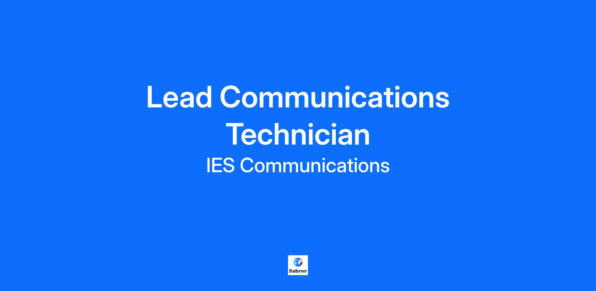 Job Description Job Title: Lead Communications Technician Reports To: Project Manager Job Summary: The Lead Communications Technician will act as the on-site coordinator and crew supervisor for voice and data installation projects. The Lead Comm Tech’s task will be to ensure job completion according to company and customer quality and safety requirements while maintaining the efficiency of the staff assigned to the project. Job Duties and Responsibilities: The Lead Communications Technician will consistently run major project crews; assume responsibility for effective performance and provide necessary training; assume responsibility for adherence to Company and customer safety and quality guidelines and hold weekly safety meetings; initiate performance related communications and escalate to Project Manager if necessary. The Lead Communications Technician coordinates with Project Manager to ensure productivity, job completion and compliance with project budget. The Lead Communications Technician fully completes all IES COMMERCIAL and project paperwork accurately and on time (specifically timesheets, material transfers, work orders, change orders, tool transfers and others as required). The Lead Communications Technician will perform quality checks; coordinate moves and cut sheets for voice and data cross connects; prepare red-lined as-built drawings. The Lead Communications Technician serves as main on-site customer contact for questions and/or concerns; attend facility and constructions meetings when required. The Lead Communications Technician performs work consistently demonstrating a detailed level of technical knowledge; troubleshoot and resolve technical issues as they arise. The Lead Communications Technician will complete other responsibilities as assigned. Min USD $29.00/Hr. Max USD $37.00/Hr. Qualifications Physical and Mental Requirements: The Communications Technician II must be self-motivated, positive in approach, professional and help create, develop and implement project process improvement(s). The Communications Technician II must promote the Company culture and mission to all employees, vendors, clients and business partners. The Communications Technician II must be able to act as the Company liaison for interface with customer representative(s). The Communications Technician II must possess proven problem-solving skills, critical thinking skills and the ability to effectively read, write and give oral presentation(s). The Communications Technician II must be able to work at heights, off a ladder and in confined spaces, lift up to 50 pounds and move up to 75 pounds. The Communications Technician II must be able to see and distinguish different colors, read small print and hear and recognize audible signals such as dial tones. The Communications Technician II must be able to travel within the branch territory and/or regional territory as needed. Regular attendance is mandatory. Tools: Screwdriver (regular and Phillips), drywall saw, torpedo level, tape measure, snips (with belt sheath), pliers (needle nose and channel locks), hammer, wrench set, cable stripper, flashlight and gloves.Punch tool with 110 block and 66 block blade, tone set, 6/8 position combo crimp tool. Education, Certification, License, and Skill Requirements: Must possess at least a High School diploma or GED equivalency. Must possess a minimum of two (2) years of experience in telecommunications or related technical field and demonstrate the ability to supervise others. Must possess and be proficient with the listed tools. Must have proven skill level to interpret blueprints and other project documents, including but not limited to, specifications, reporting and quality requirements. Must know the universal communications color codes. Must meet Company minimum driving standards. Career Path: Lead Communications Technician Minimum Years of Experience 0-2 License Required No Minimum Education High School Overview IES is a national provider of industrial products and infrastructure services to a variety of end markets, including electrical, mechanical and communications contracting solutions for the commercial, industrial, residential and renewable energy markets. IES is publicly traded on NASDAQ under the symbol IESC. As of the end of IES’s 2023 fiscal year ending September 30, 2023, IES produced over $2.3 billion in revenue and employed over 8,400 employees at over 129 domestic locations across the United States. IES is an Equal Employment Opportunity Employer: Minorities, Females, Gender Identity, Sexual Orientation, Individuals with Disabilities, Protected Veterans Encouraged to Apply. EEO Statement PLEASE NO AGENCY CALLS. NOTE TO ALL AGENCIES: Any unsolicited agency resumes or agency represented candidates that are presented to any IES employee without first having a signed contract between that agency and the IES Talent Acquisition organization will become the property of IES and no fees will be paid. EEO & Affirmative Action The IES policy on equal employment opportunity prohibits discrimination based on race, color, religion, national origin, sex, age, gender identity, sexual orientation, individuals with disabilities, protected veterans, or any other protected status or characteristic. This policy applies to recruiting, hiring, transfers, promotions, terminations, compensation, benefits, and all other terms and conditions of employment, and also states that retaliation against any employee who files a complaint regarding possible violations of this policy will not be tolerated. IES is also committed to taking affirmative steps to promote the employment of minorities, women, individuals with disabilities, and protected veterans. IES develops affirmative action programs to support its commitment to equal employment opportunity, consistent with company policy and the company’s obligations as a contractor to the United States government. View Your Equal Employment Opportunity rights under the law