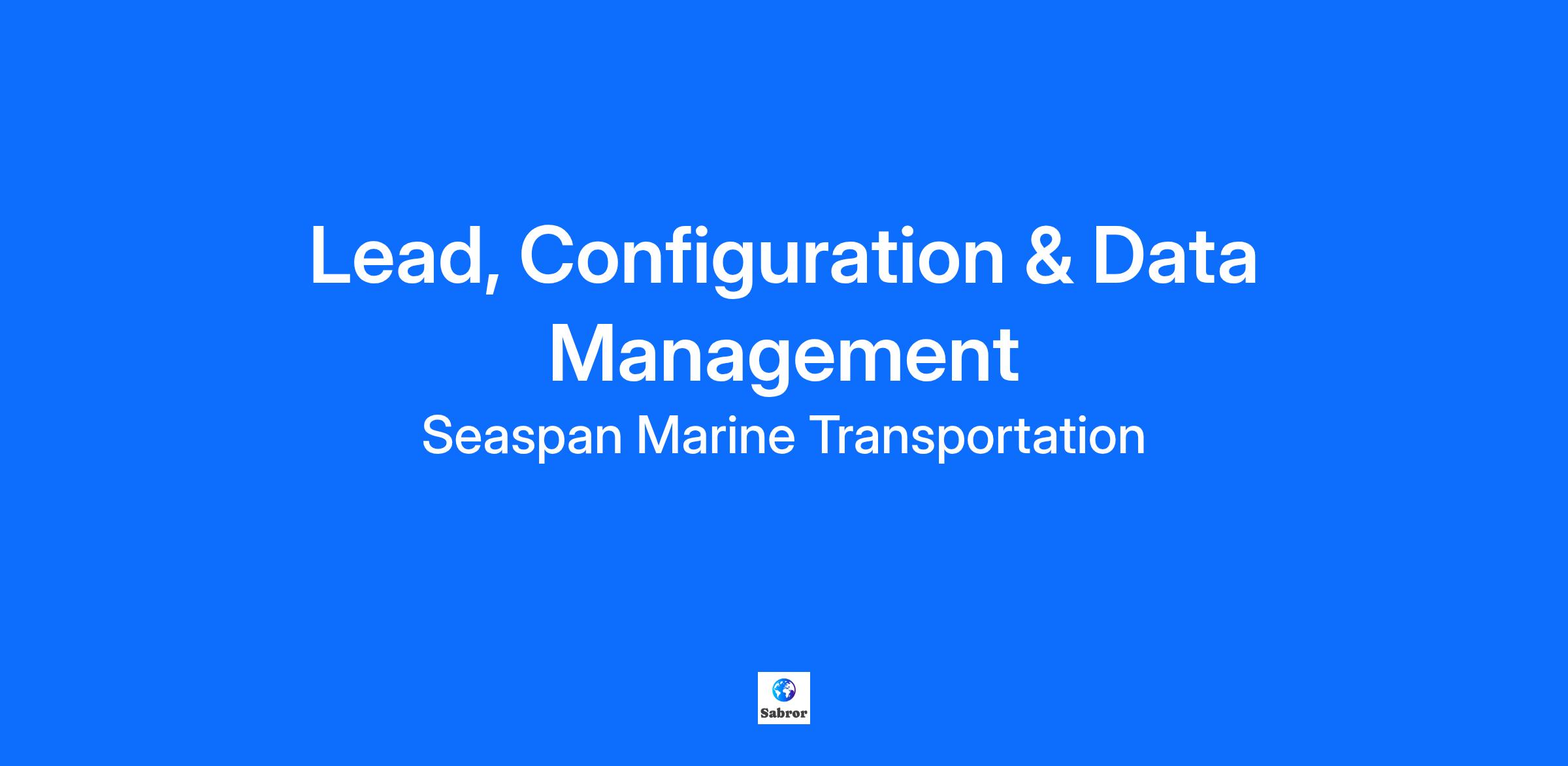 DescriptionThe Configuration & Data Management Lead, Engineering is responsible for the leadership and development of a team within Engineering Services to support the ongoing projects under the matrix organization structure for new vessels constructed by Seaspan Shipyards.
